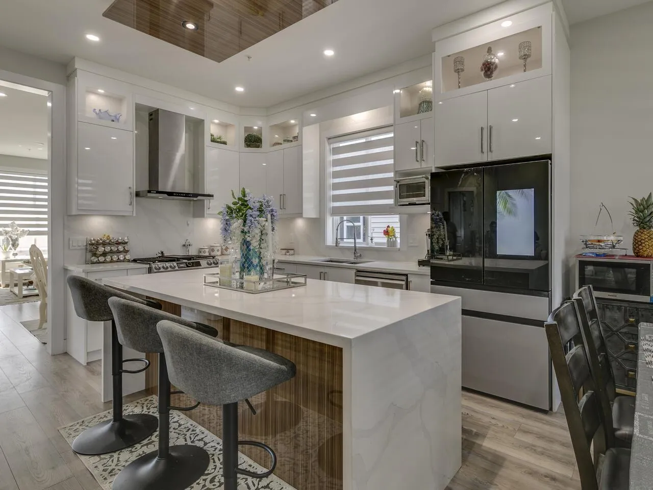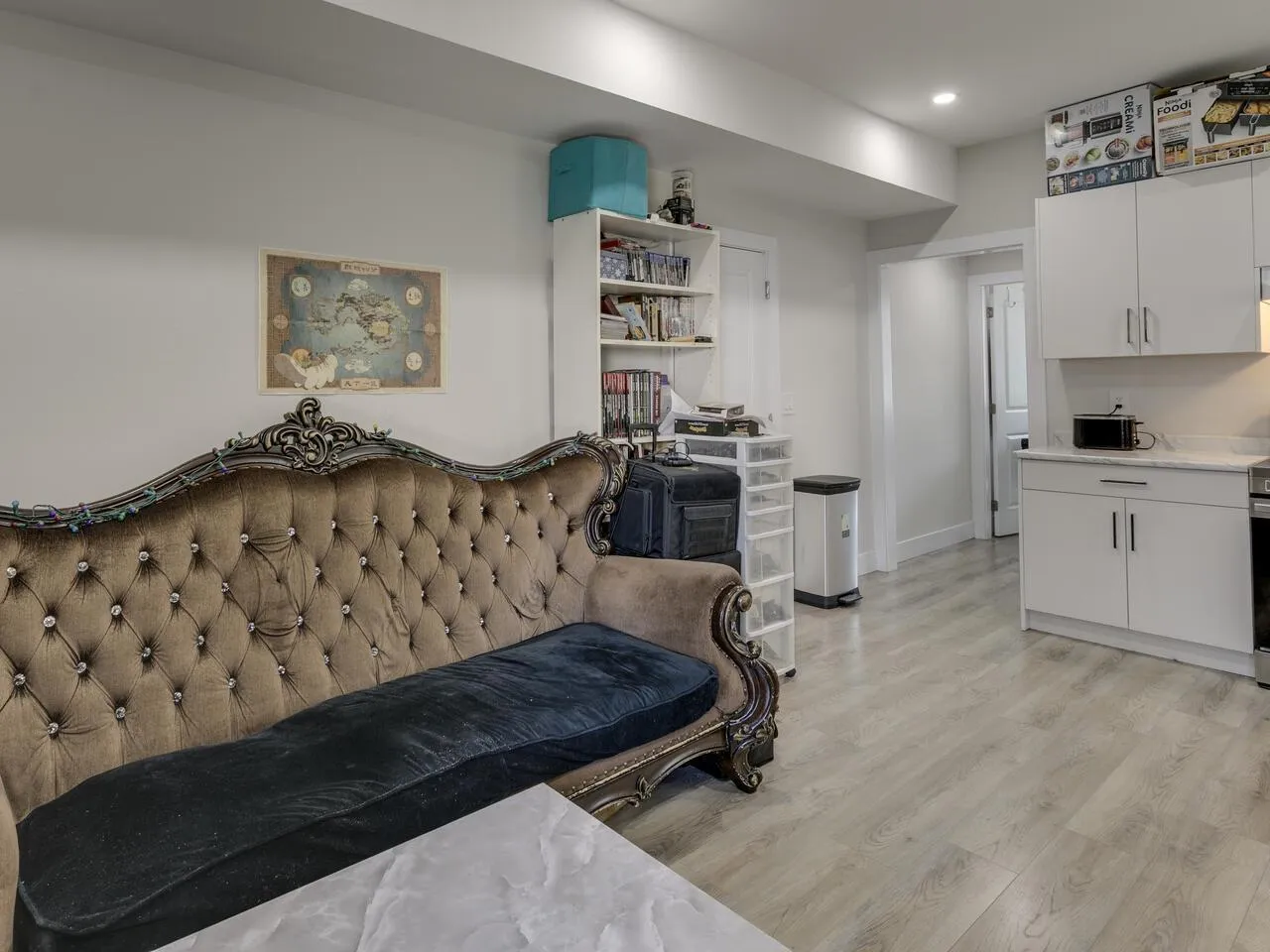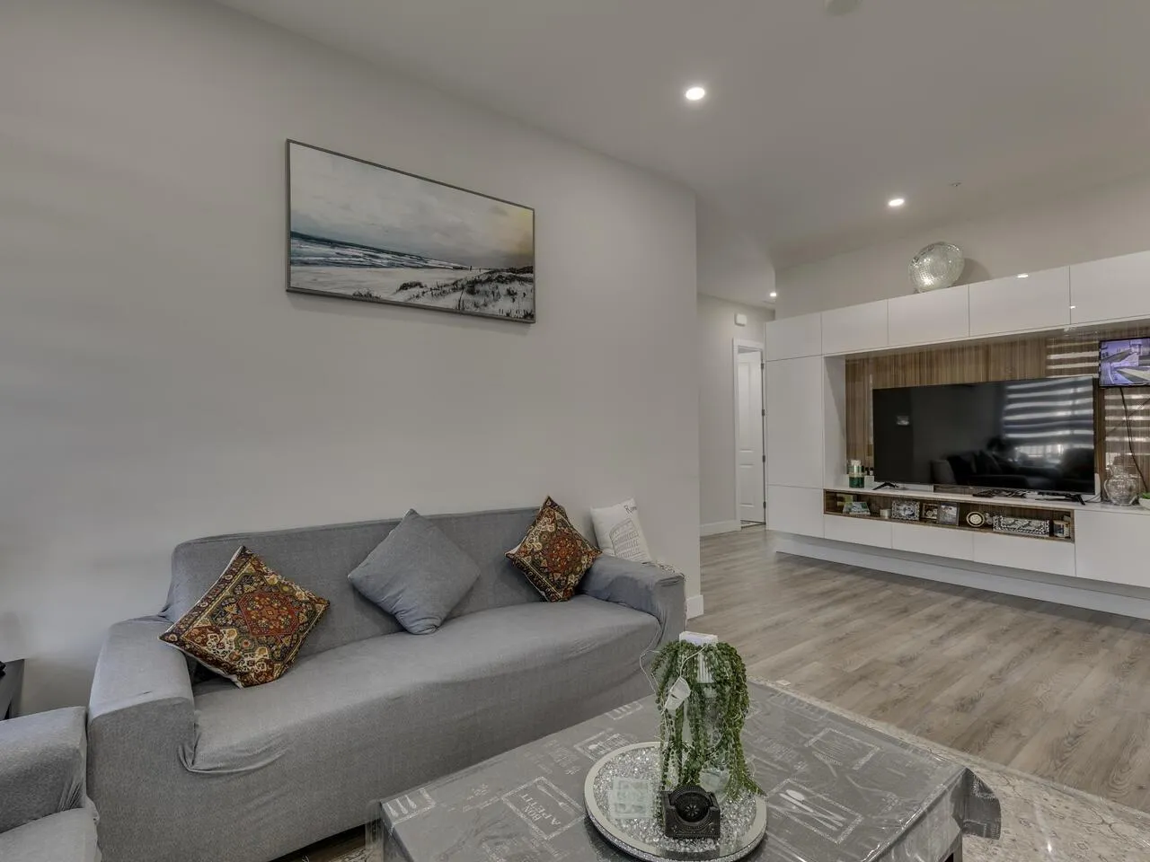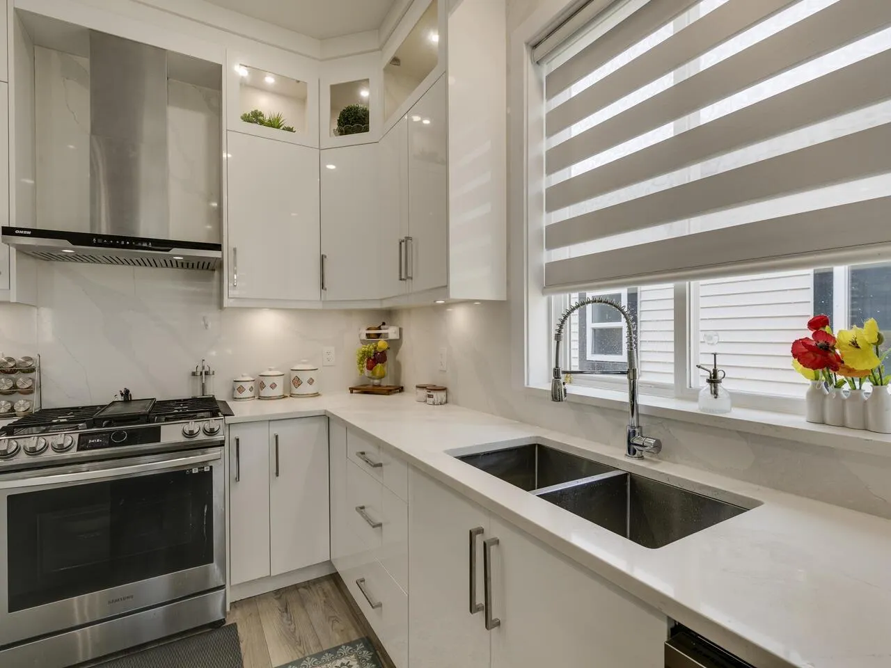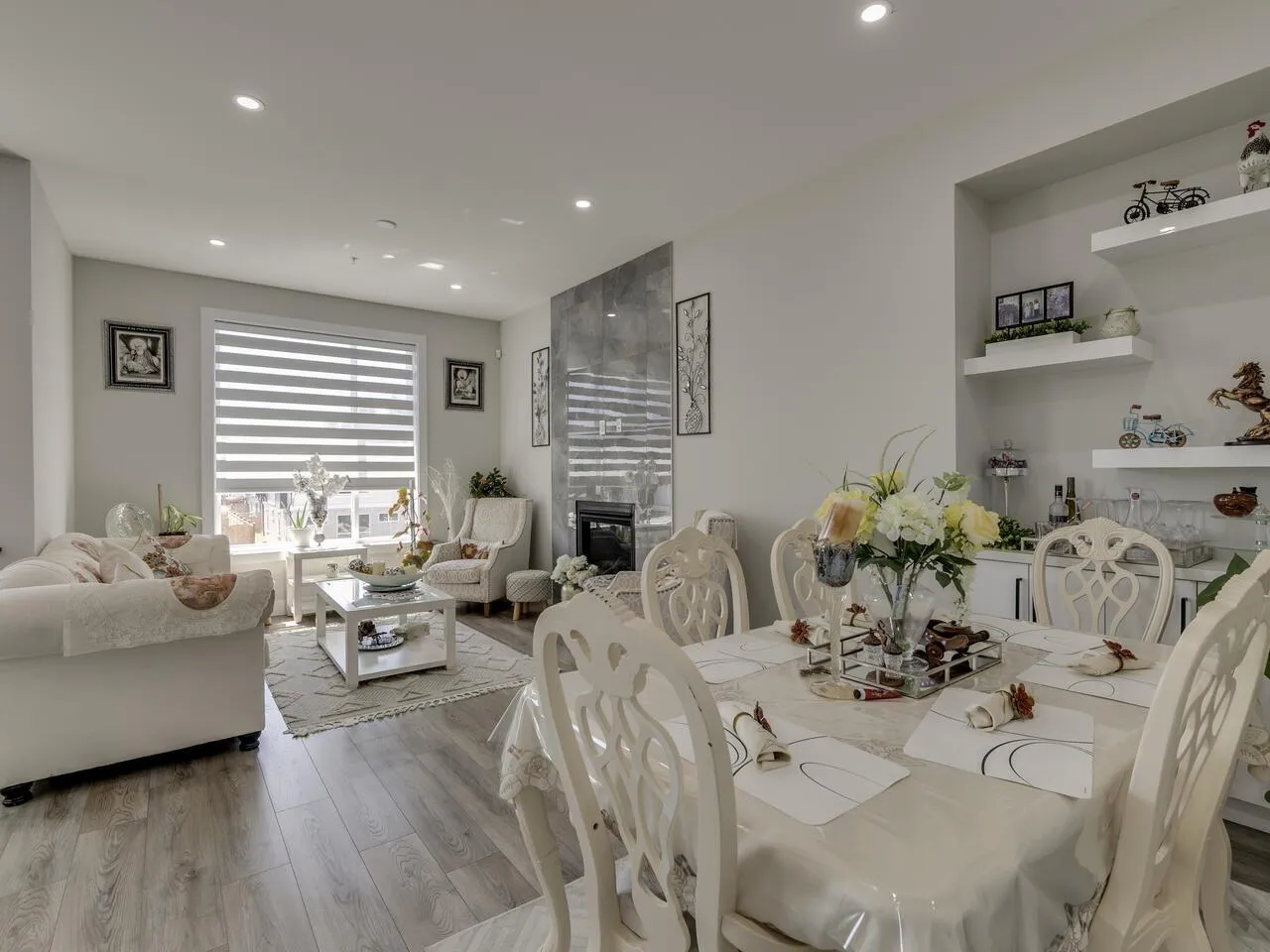 Experience modern living in this beautifully built 2022 home with 6 bedrooms and 4 bathrooms, offering 3400 sq ft of stylish space. Situated on a 5,328 sq ft lot, the home features a designer kitchen with quartz countertops, high-end stainless steel appliances, and sleek acrylic cabinets. The open layout showcases glass banisters, wide-plank laminate flooring, a cozy gas fireplace, and a striking double-door entry. Step onto the large deck off the family room, perfect for entertaining or relaxing while overlooking the private, fenced yard. Includes a legal 2-bedroom suite and an unauthorized 1-bedroom suite, ideal for rental income or extended family. A modern glass-panel 2-car garage adds curb appeal. Located in a family neighborhood close to schools, shopping, and recreation. Must see! (id:27476)