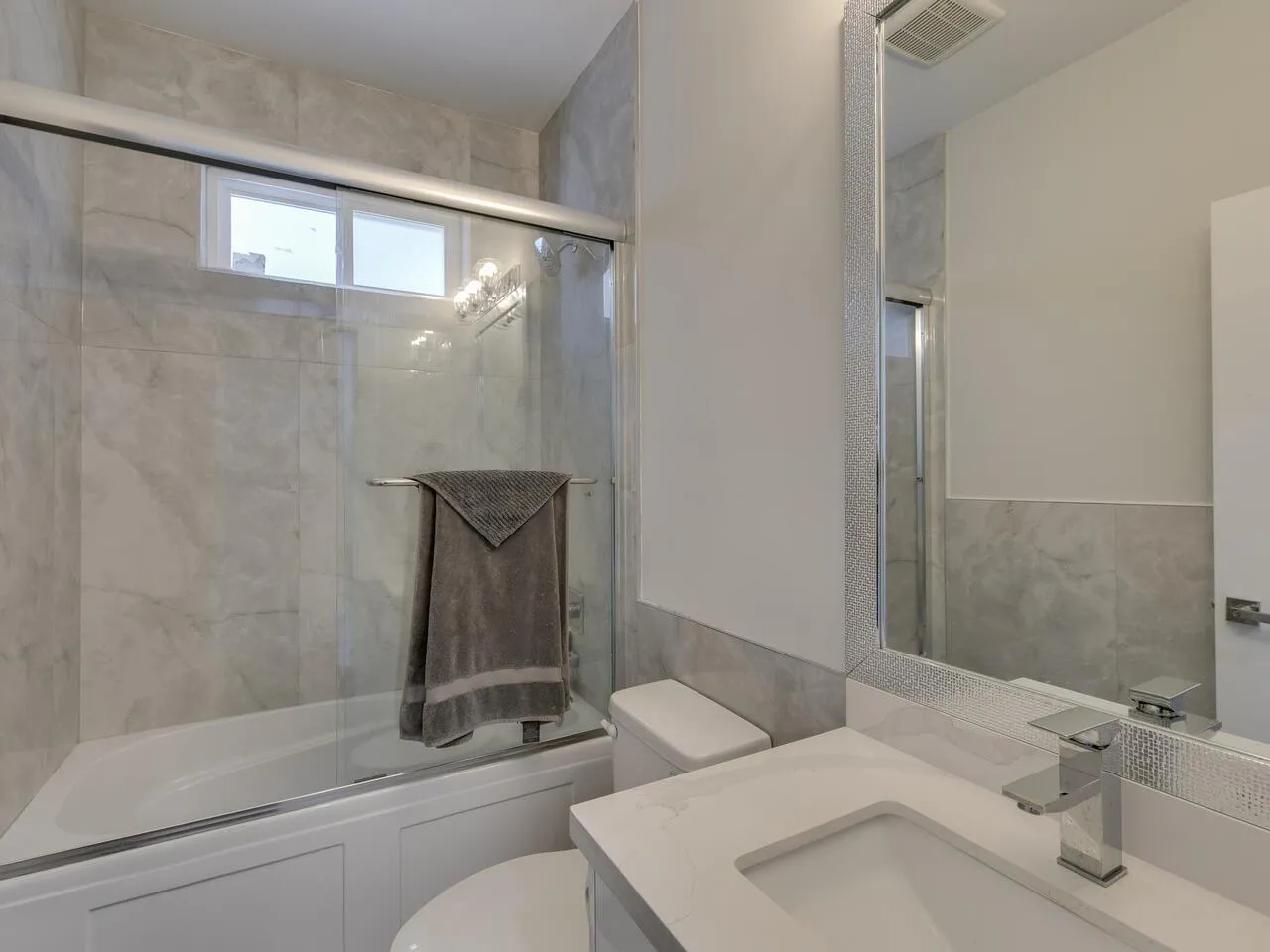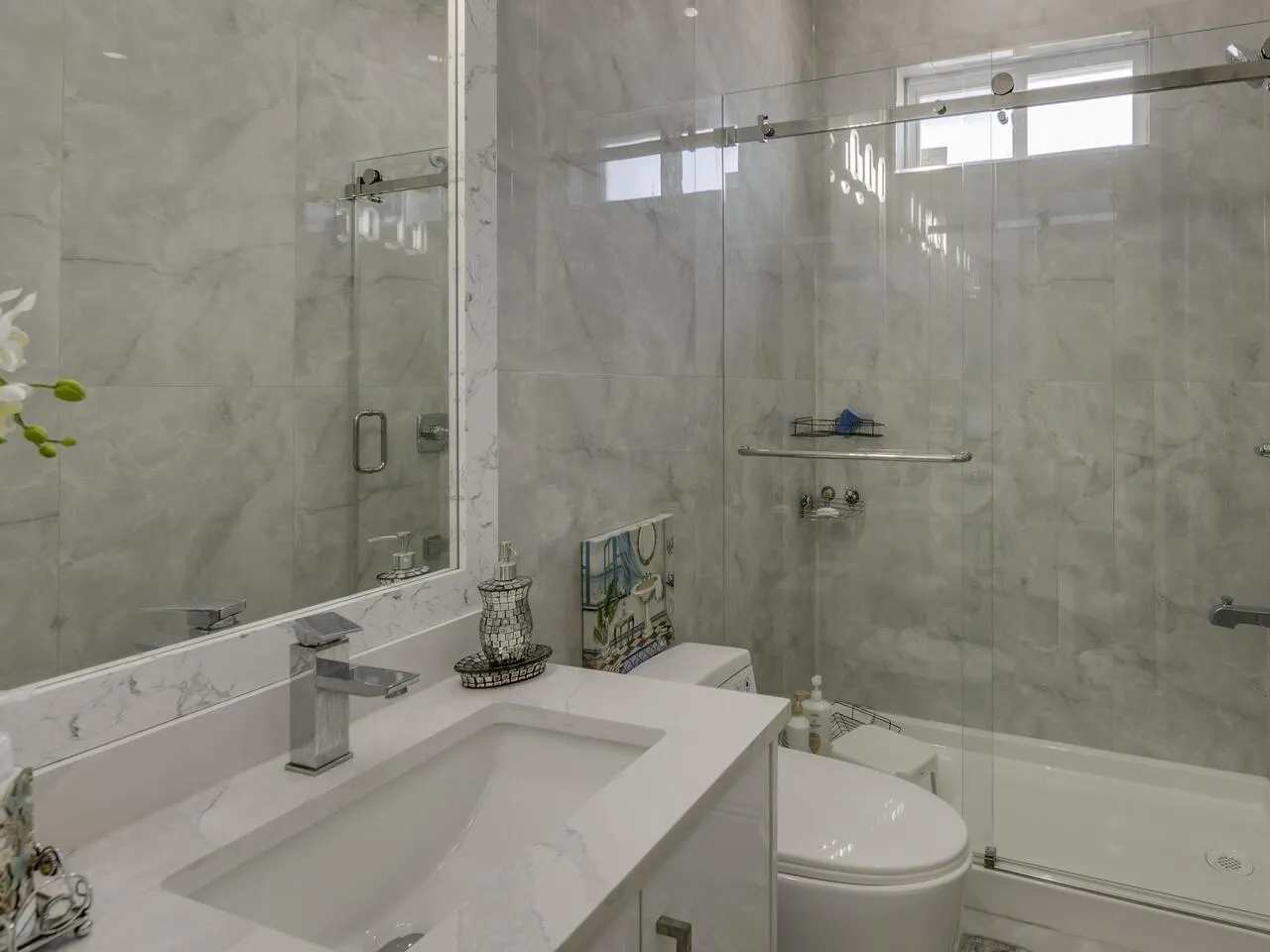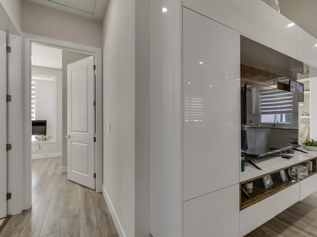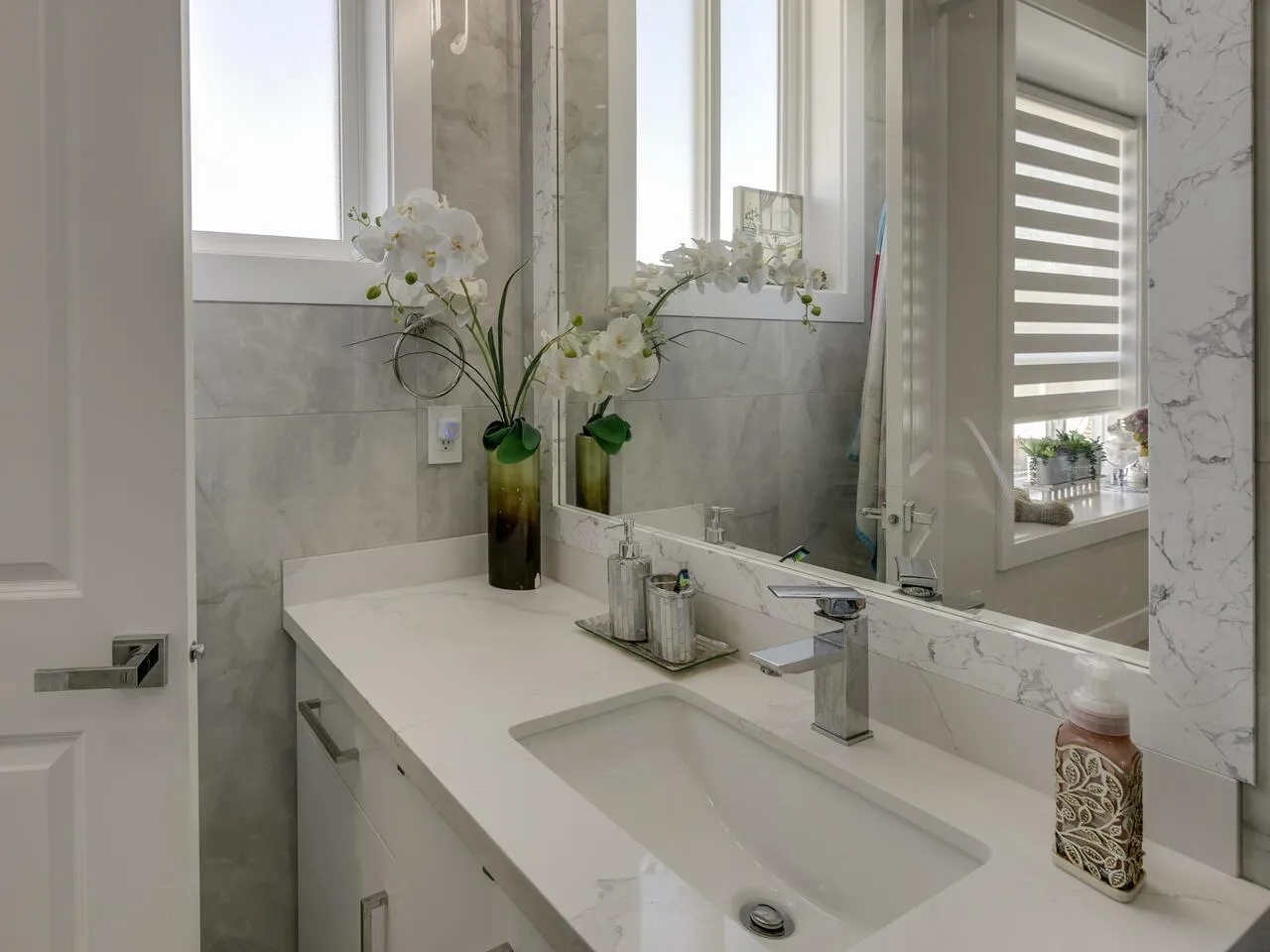 Experience modern living in this beautifully built 2022 home with 6 bedrooms and 4 bathrooms, offering 3400 sq ft of stylish space. Situated on a 5,328 sq ft lot, the home features a designer kitchen with quartz countertops, high-end stainless steel appliances, and sleek acrylic cabinets. The open layout showcases glass banisters, wide-plank laminate flooring, a cozy gas fireplace, and a striking double-door entry. Step onto the large deck off the family room, perfect for entertaining or relaxing while overlooking the private, fenced yard. Includes a legal 2-bedroom suite and an unauthorized 1-bedroom suite, ideal for rental income or extended family. A modern glass-panel 2-car garage adds curb appeal. Located in a family neighborhood close to schools, shopping, and recreation. Must see! (id:27476)
