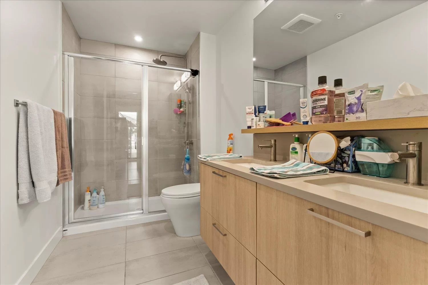 New 2-bedroom plus den, 2.5-bath ground-level suite in Mission. Features open-concept layout, modern kitchen with stainless steel appliances, quartz countertops, and in-suite laundry. Primary bedroom includes walk-in closet and ensuite. Den ideal for office or guest room. Enjoy a private patio with fenced yard. Includes 2 underground parking stalls and storage locker. Amenities: gym, dog wash station, and bike room. Convenient location close to transit, shops, and services. Ideal for professionals or small families. (id:27476)