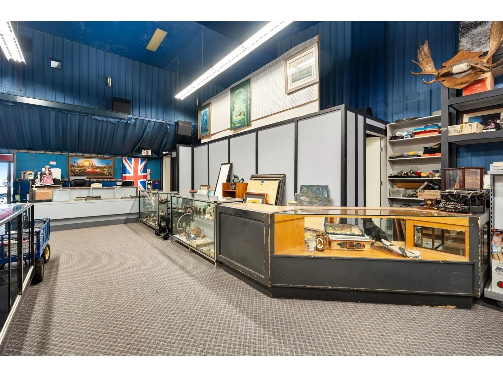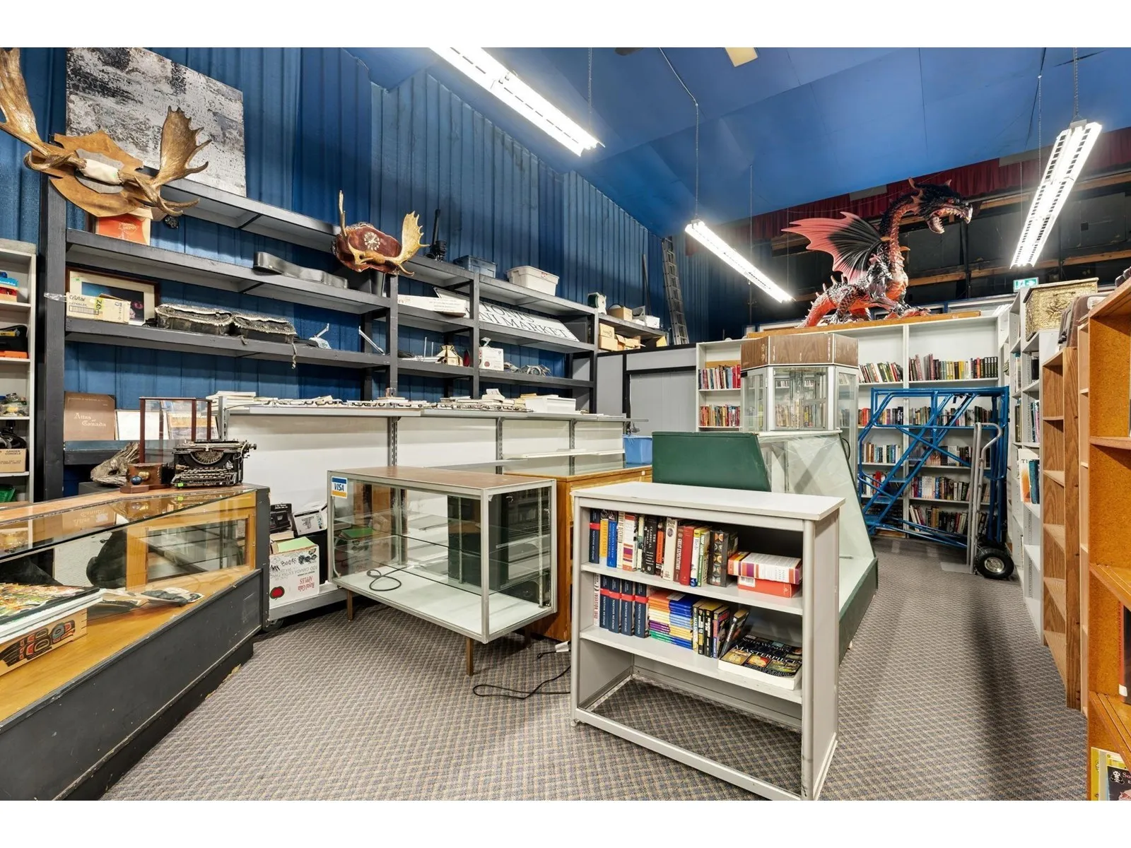 Land and commercial building for sale in Downtown Mission! Great long term potential and growth located near the end of the DT strip. Massive 5,318 Sq Ft building with 17 ft ceilings currently operating as a book store. Fully equipped with front desk/reception area, men and female bathrooms, laundry, and a completely open back half of the building ready for your ideas. Limitless options here - envision your business here. Screening room up at the top with another bathroom could be used a storage space, office room or converted to another bachelor unit. Above is also a 2 Bedroom + 1 Bath suite with sweeping views of the valley, Mission Bridge and Mountains. Separate access to the suite & business. Back laneway access & exits as well. Mixed use DT1 zoning: bowling alley/pool hall, restaurant, office, hair salon, gym, recreational facility and much more. Residential development potential for a high-rise project with up to 4.5 - 5 FSR! Within 400 M of the West Coast Express. (id:27476)