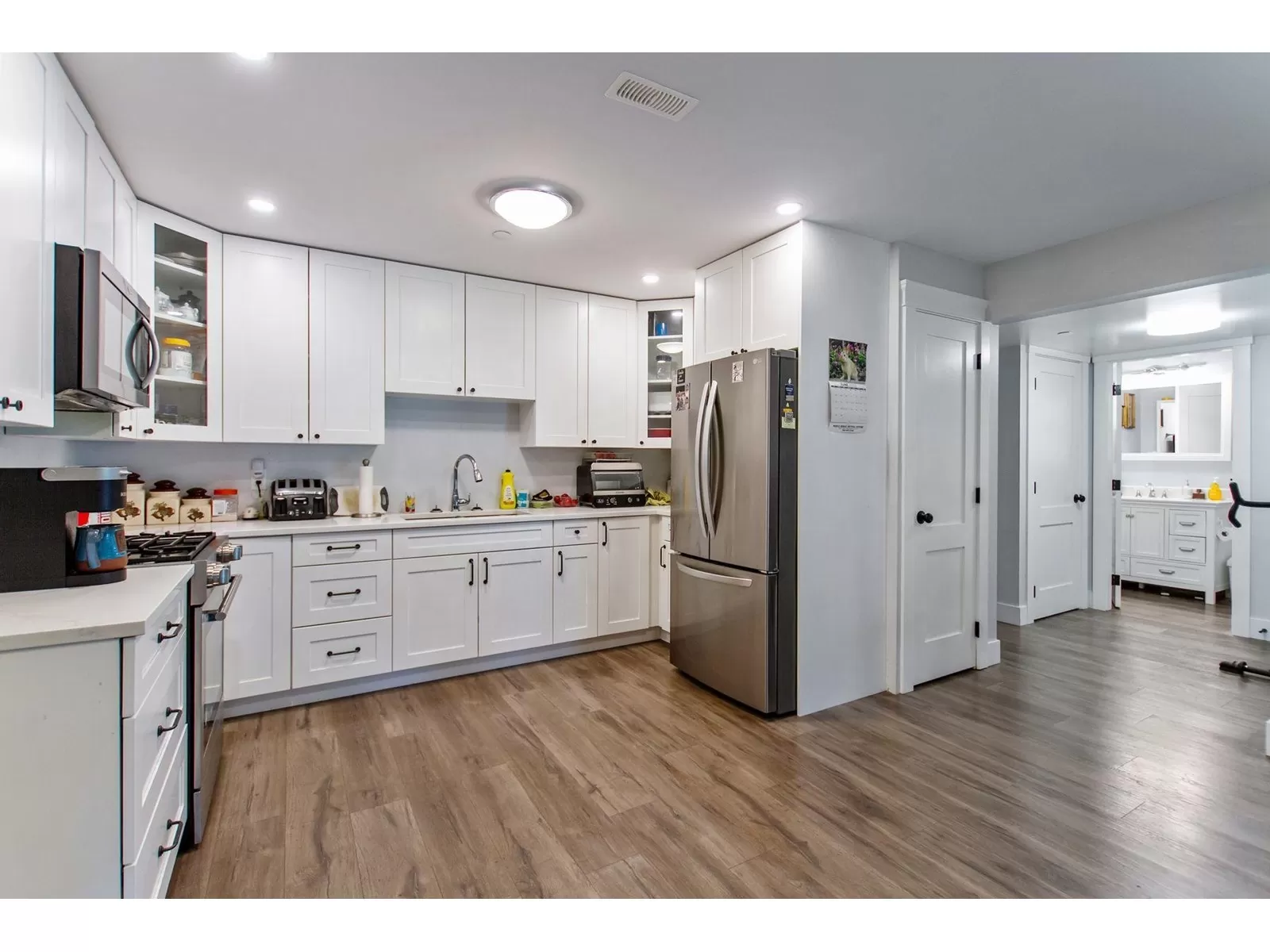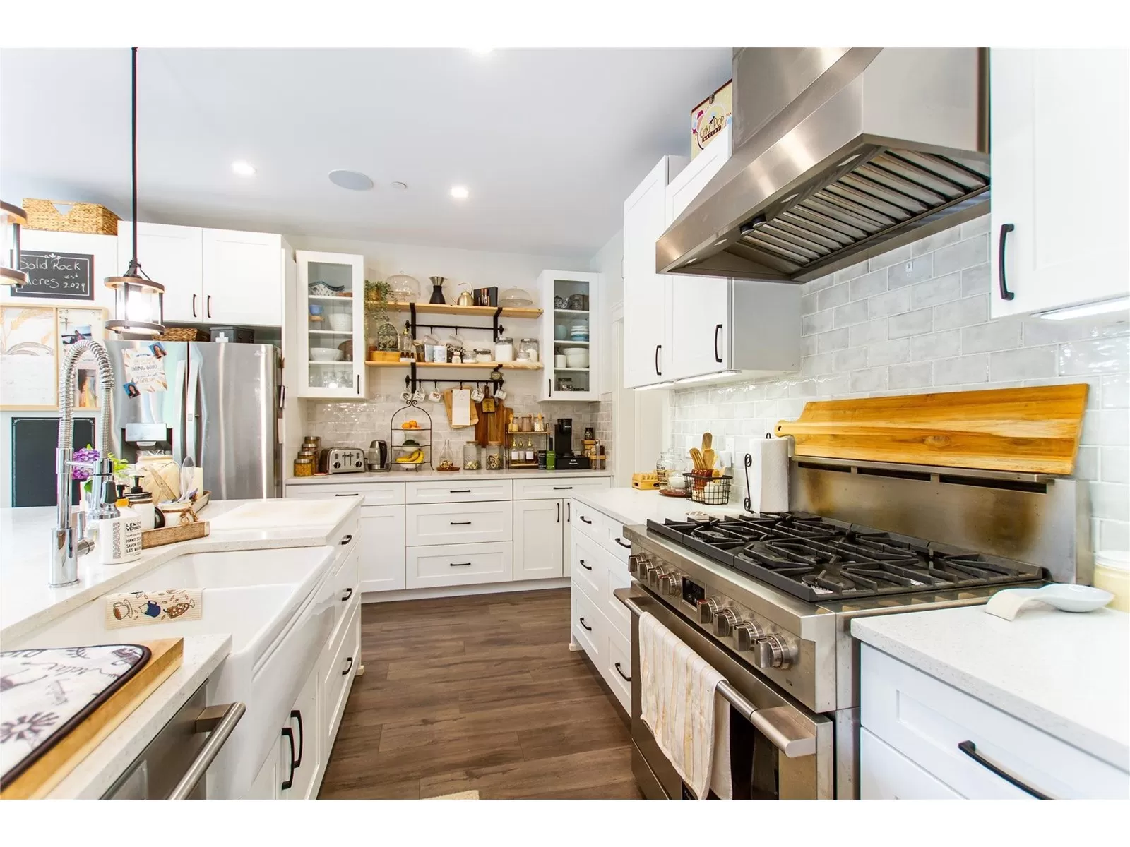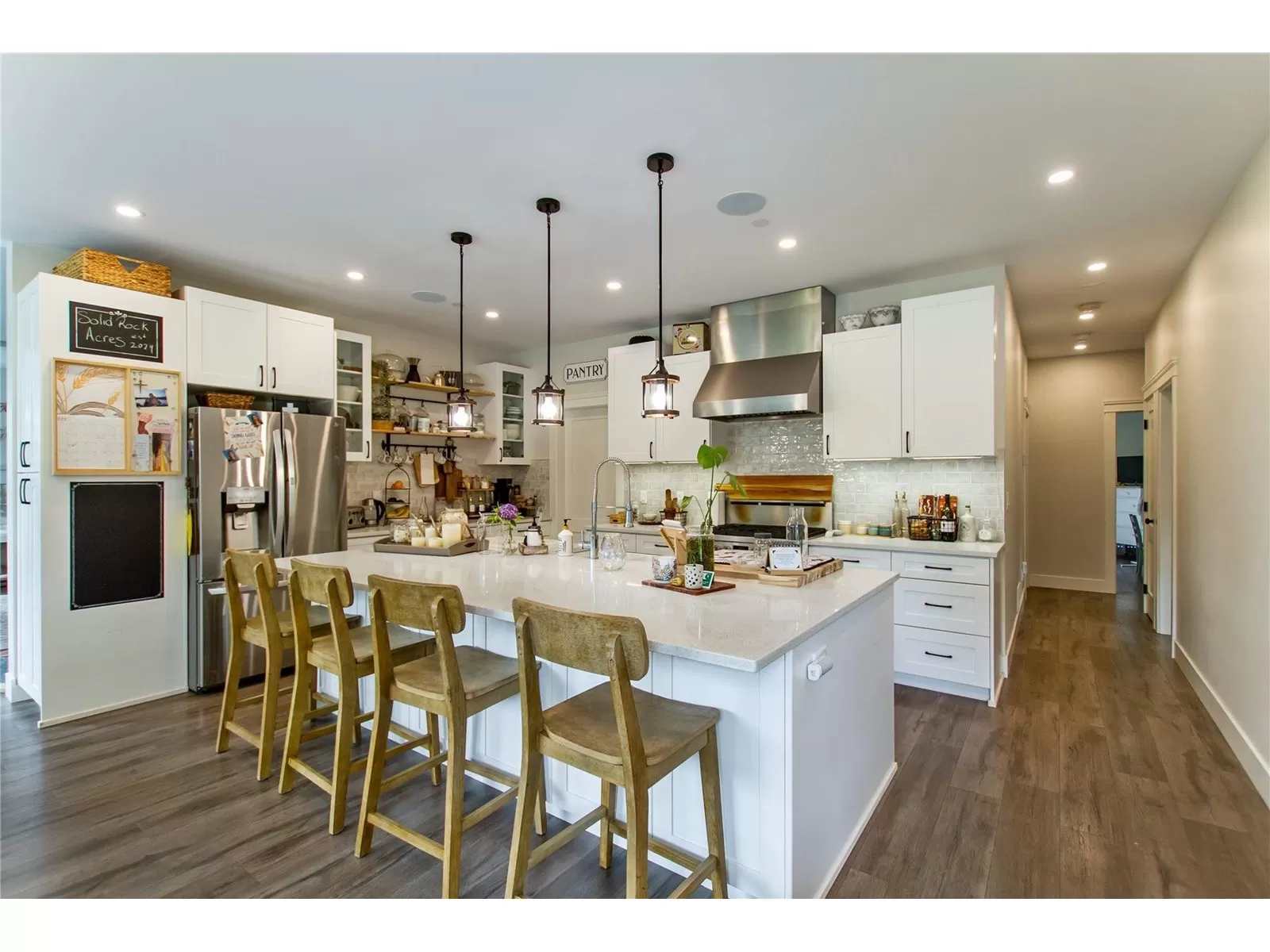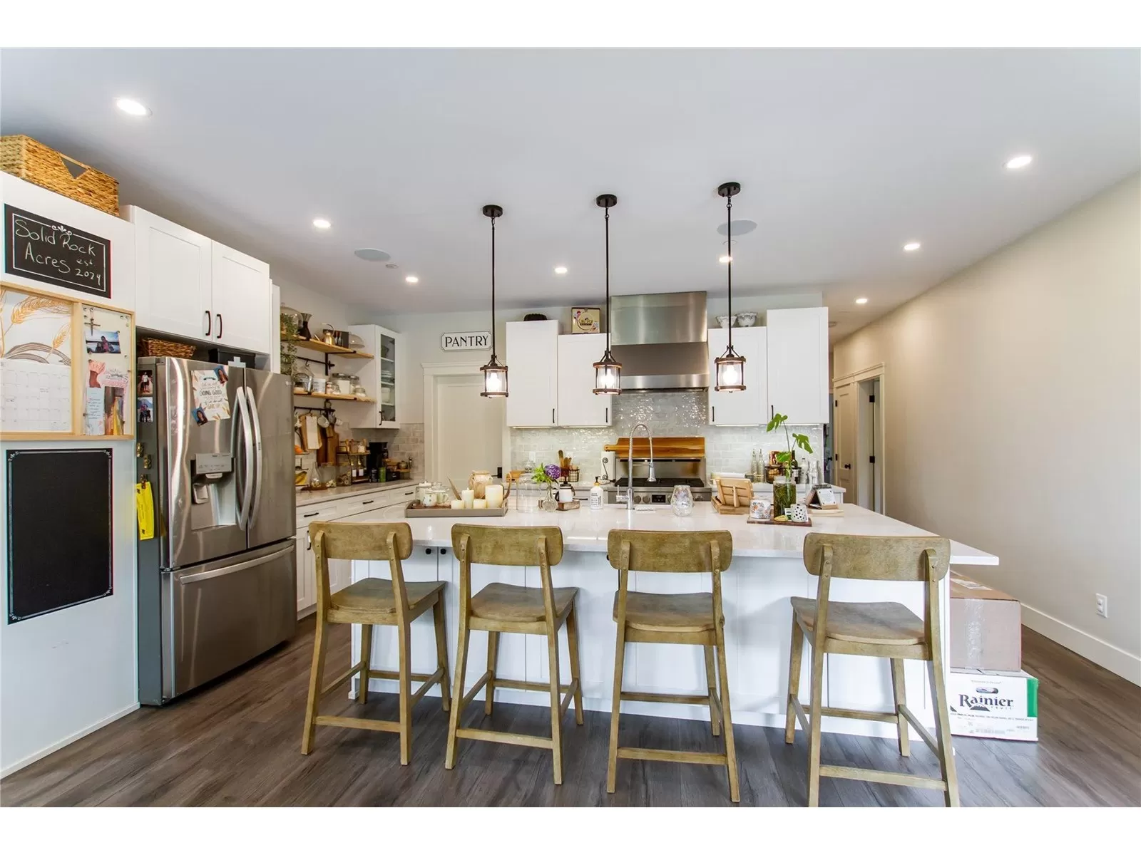MULTI-GENERATIONAL living at its finest. Short 10 min. drive to town, school bus services. 8 bdrms, 5 bath home has everything. Two separate walk out entry in-law suites each one bedroom, separate kitchens and living rooms and a shared laundry, suites are spacious ground level. The main house boasts a beautiful kitchen that would be any chef's dream, connected to the dining room which is spacious enough for the whole family. The main level has the primary bedroom with a double walk-in closet en-suite you will want to soak away the cares of the day. Three good size bedrooms and the main bathroom down a separate hall to keep the kids and their toys in their own area.The top level has two large bedrooms for the teenagers or young adults in the home to be able to have their own quiet area. Full bathroom upstairs, a large office and a fantastic family room. All of this offered on a private 4.95 acre lot with ample parking, lots of trees, mature garden and great fields to enjoy your little piece of heaven on earth! (id:27476)