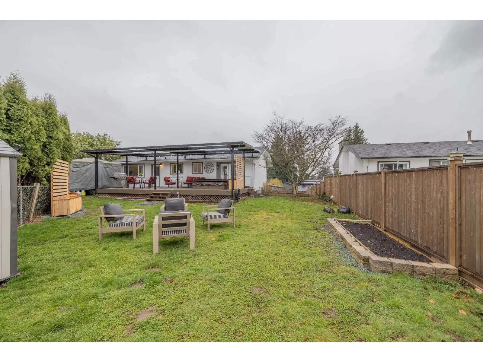 Live in luxury in this stunningly updated and Air-Conditioned 6-bed 3-bath home sitting on an expansive 8,400 sqft lot, w/ 2 gated driveways, RV pkg, & fully fenced yard - perfect for families, pets & gardeners alike. Inside, the bright, open-concept living area features a sleek linear fireplace w/ stone surround & solarium for year-round relaxation. High-end fixtures & finishes envelop the kitchen which includes a large island for added luxury. Primary suite provides a 3 pc ensuite & french doors that lead to a covered deck w/ hot tub, extending your bedroom space outdoors! Downstairs, a 3-bed in-law suite offers flexibility for extended family or rental income. Ideally located close to everything + easy hwy access, this home is both a retreat & and exceptional home base. (id:27476)