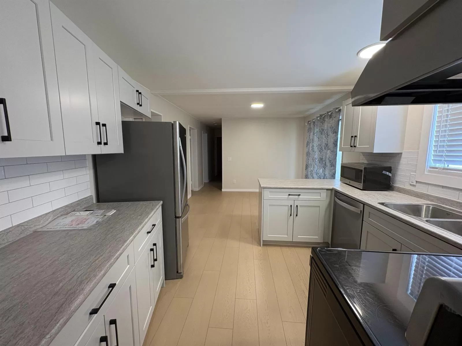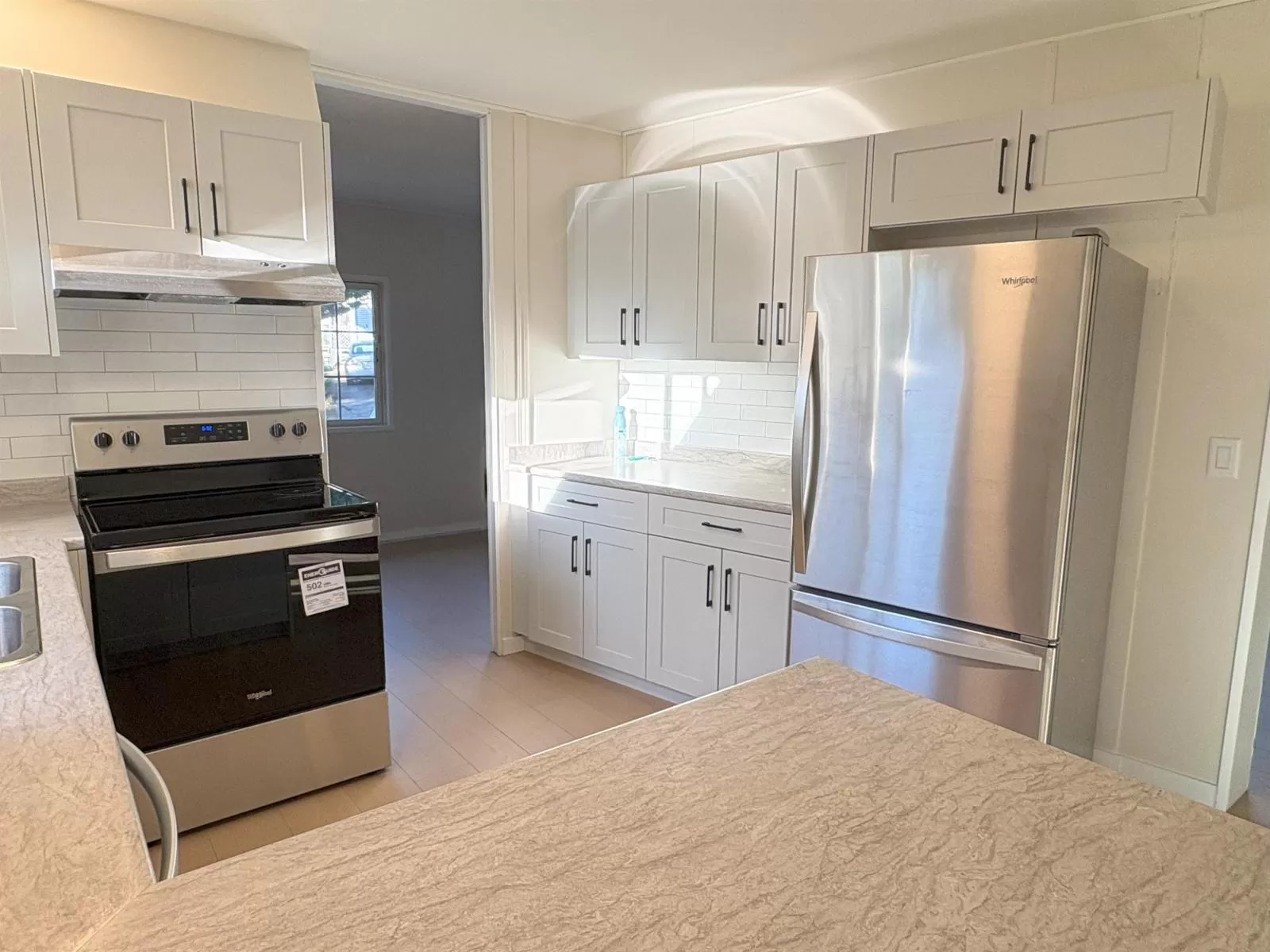 Discover the perfect blend of comfort and functionality in this 3-bed 2-bath corner lot home. Highlights include a spacious sunroom, double garage, workshop, and lovely deck for outdoor enjoyment. Recent updates bring peace of mind with a new torch-on roof, plumbing upgraded to pex pipes, new crawl space insulation, new furnace & hot water tank, a cozy gas fireplace and stylish new flooring throughout. The kitchen shines with all new cabinetry and appliances, making this home move-in ready! Enjoy the added benefit of low monthly pad rental and the flexibility of accommodating up to two pets. This home has it all ~ don't miss out! (id:27476)