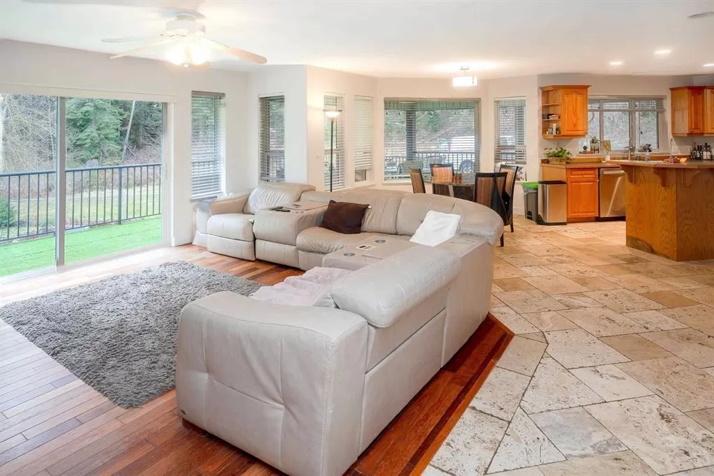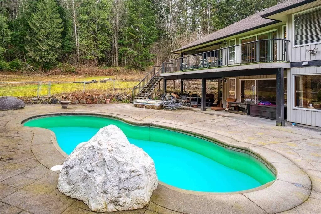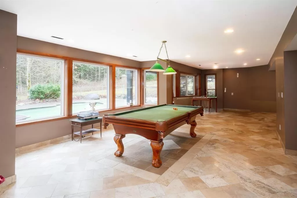 Private and gated Acreage Set just right with an Amazing 2800sf 5 bedroom Rancher with a 3 car garage and a FULL BRIGHT WALKOUT basement (5600sf total!) that you gives you level access to your inground pool! 2x6 construction and Crown mouldings throughout with coffered ceilings. The basement has 2 bdrms, roughed in for a full bath, media room, bar area, cold room, workshop and a huge open rec room! All this on a very private cul-de-sac in an exclusive neighbourhood! Maple Ridge/Mission border in Stave Falls. (id:27476)