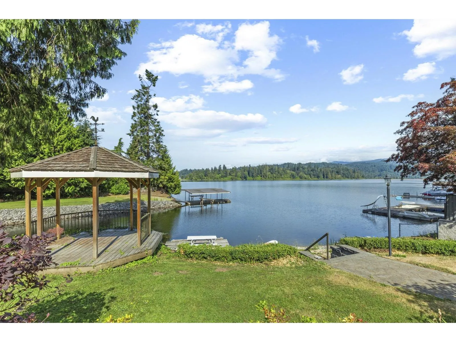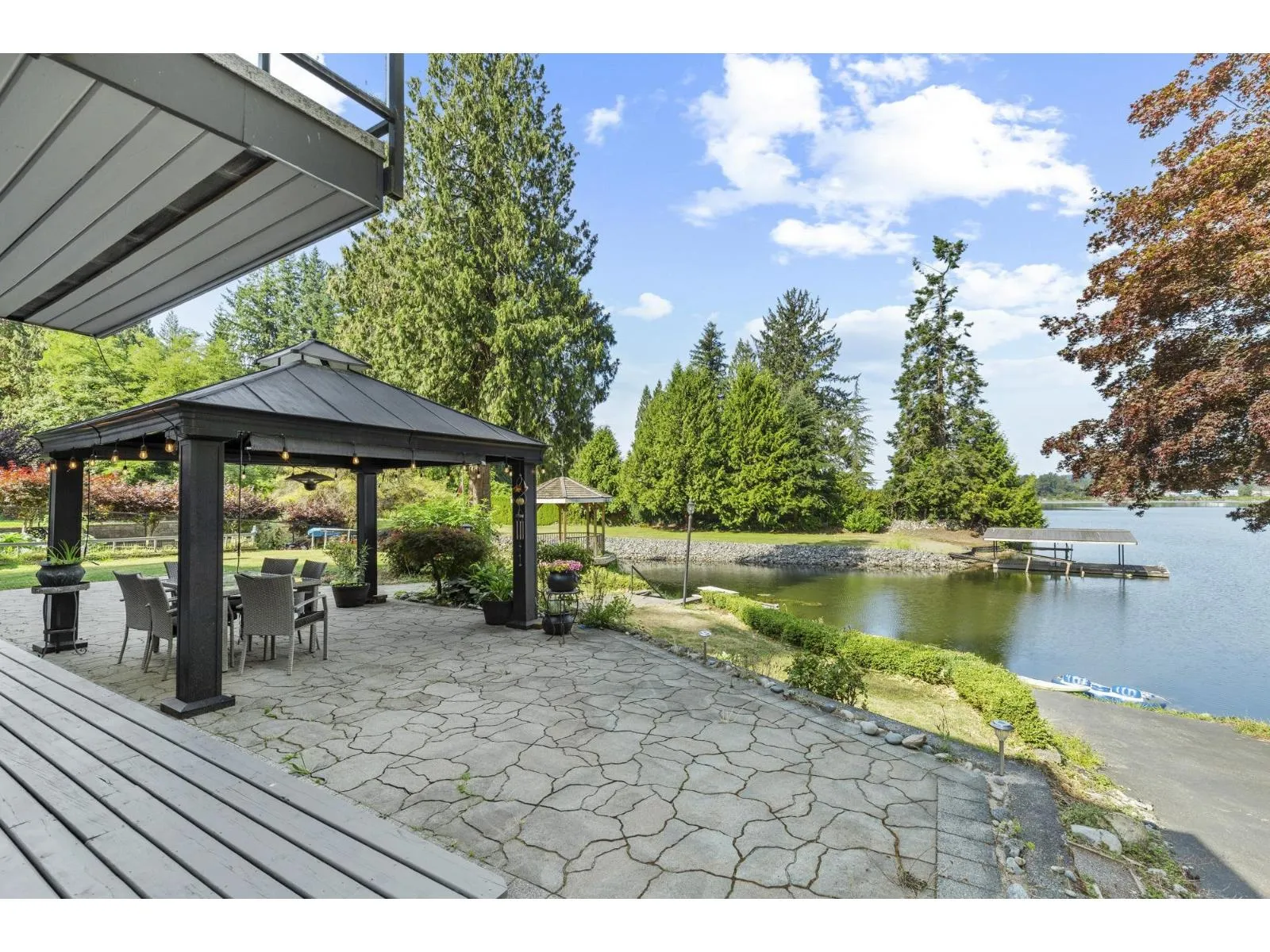 Stunning lakefront retreat at 9233 Hayward! Spacious custom-built family home on a large, beautifully landscaped lot with towering mature trees and tranquil lake views. Large kitchen overlooking the lake, opening to a sprawling patio perfect for entertaining against a backdrop of serene water and mountain vistas. Expansive primary suite features a cozy gas fireplace, generous walk-in closet, and private deck overlooking the lake. Enjoy outdoor living with a manicured lawn, charming gazebo, and inviting fire pit. Includes a fully insulated and heated triple car garage with 220 power for EVs, plus an additional single garage for ample storage and convenience. Embrace a luxurious lakefront lifestyle and create lasting memories in this extraordinary home! (id:27476)