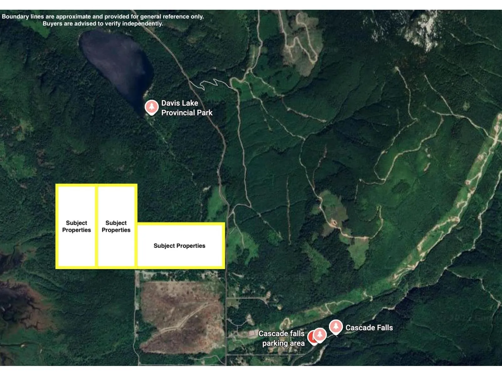 Just 1km from Cascade Falls and minutes from Davis Lake, this remarkable 241.98 acre offering spans 3 separate titles: 81.5 acres, 81.5 acres, and 79.98 acres. A rare combination of R-3, R-4, and AG-4 zoning (partially in ALR) provides exceptional flexibility for both rural residential and agricultural uses. Approx. 50 acres could be cleared, opening the door to farming, building, or more. Enjoy the privacy of a true end-of-the-road location, surrounded by natural beauty, yet within easy reach of Mission and the Fraser Valley. Whether you're looking for a long-term holding, a multi-parcel homestead, or an agricultural enterprise, this is a rare opportunity to secure a large, versatile land in a stunning setting. (id:27476)