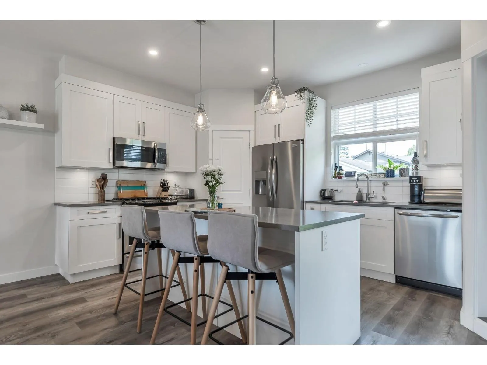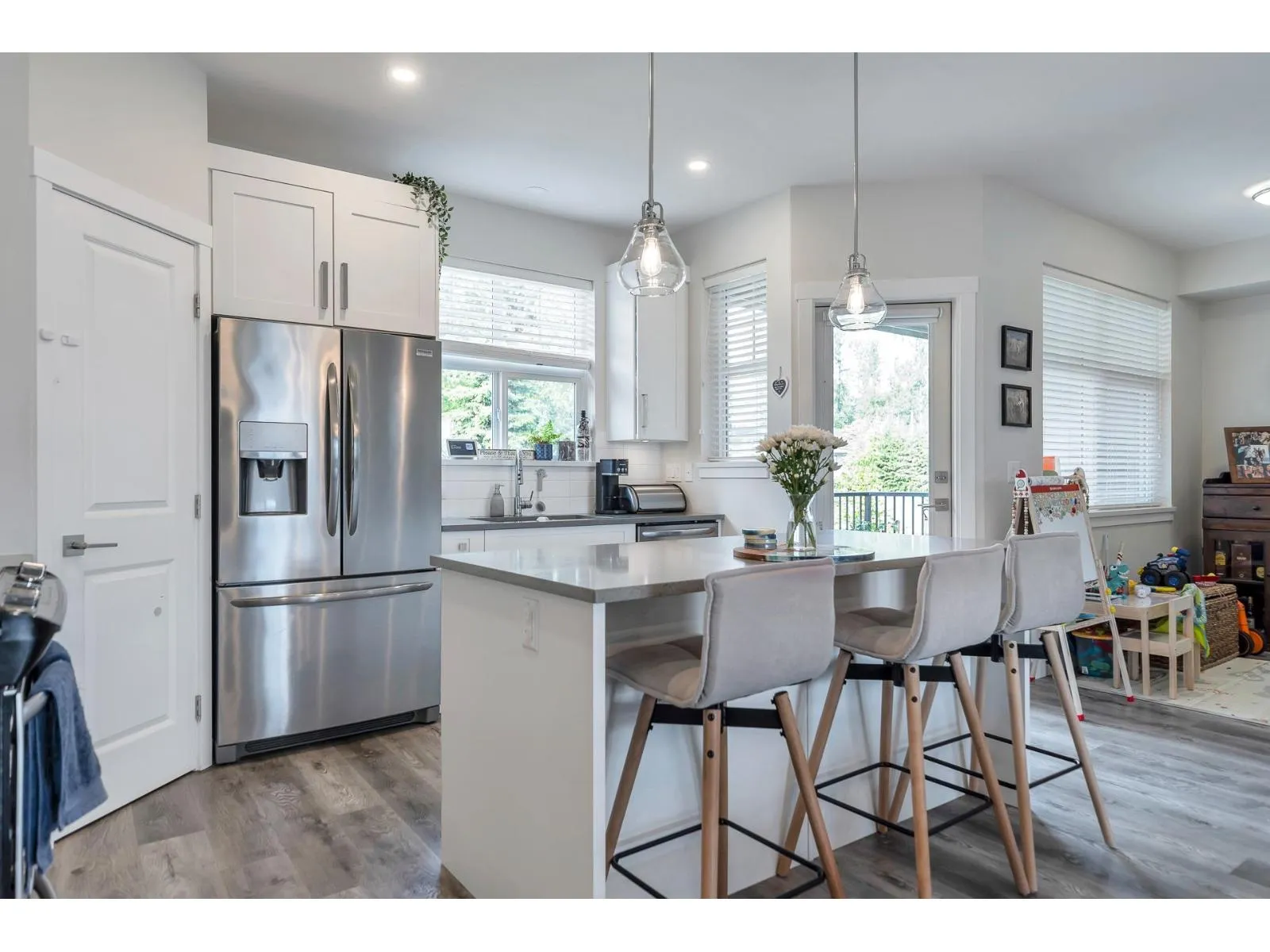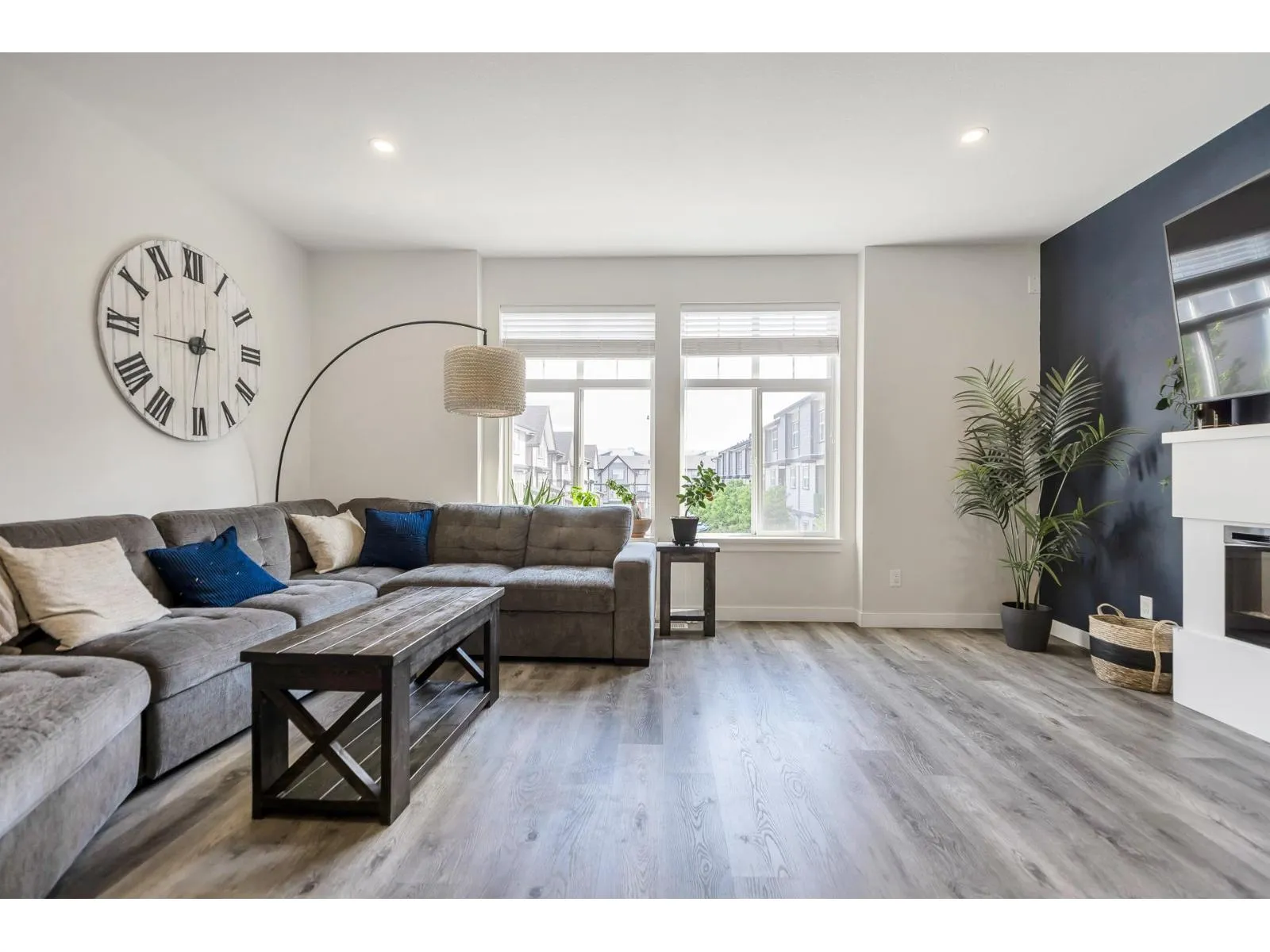 This 2020-built townhome offers 2,201 sq.ft. of smart, functional space with 3bedrooms and 4 bathrooms. The open-concept main floor is perfect for entertaining, with quartz counters, bright living and dining areas, and a bonus nook ideal for a kids' space or home office. Upstairs has 3 spacious bedrooms, including a primary with a custom California Closet and ensuite. Downstairs features a large rec room with its own separate entrance, full bath, and access to a private fenced yard. Includes A/C, side-by-side garage, and a central location with easy access to transit, Hwy , schools, and parks. (id:27476)