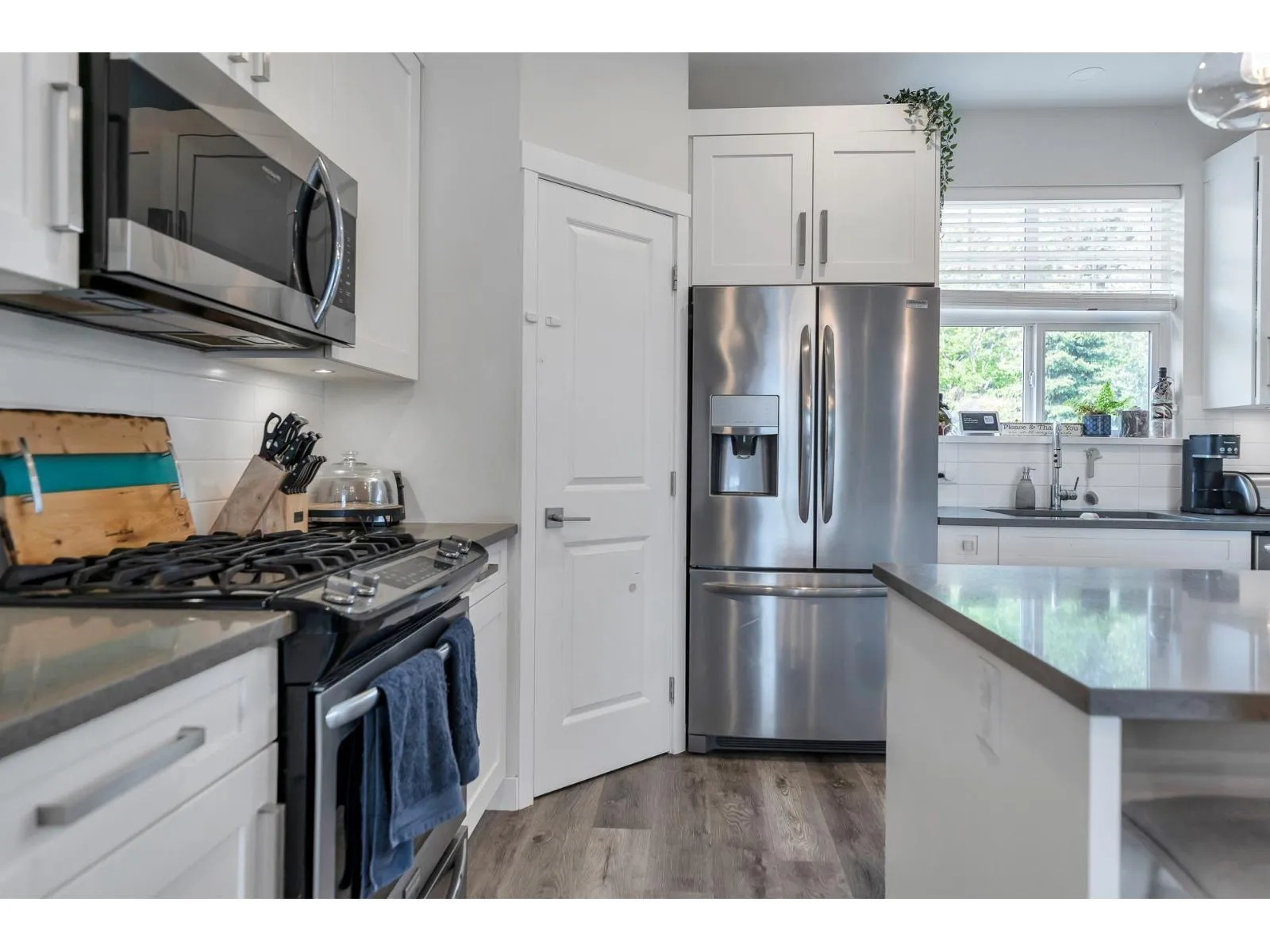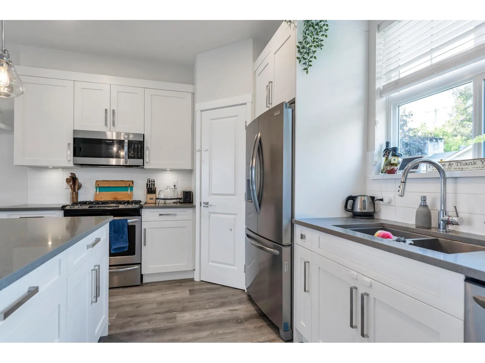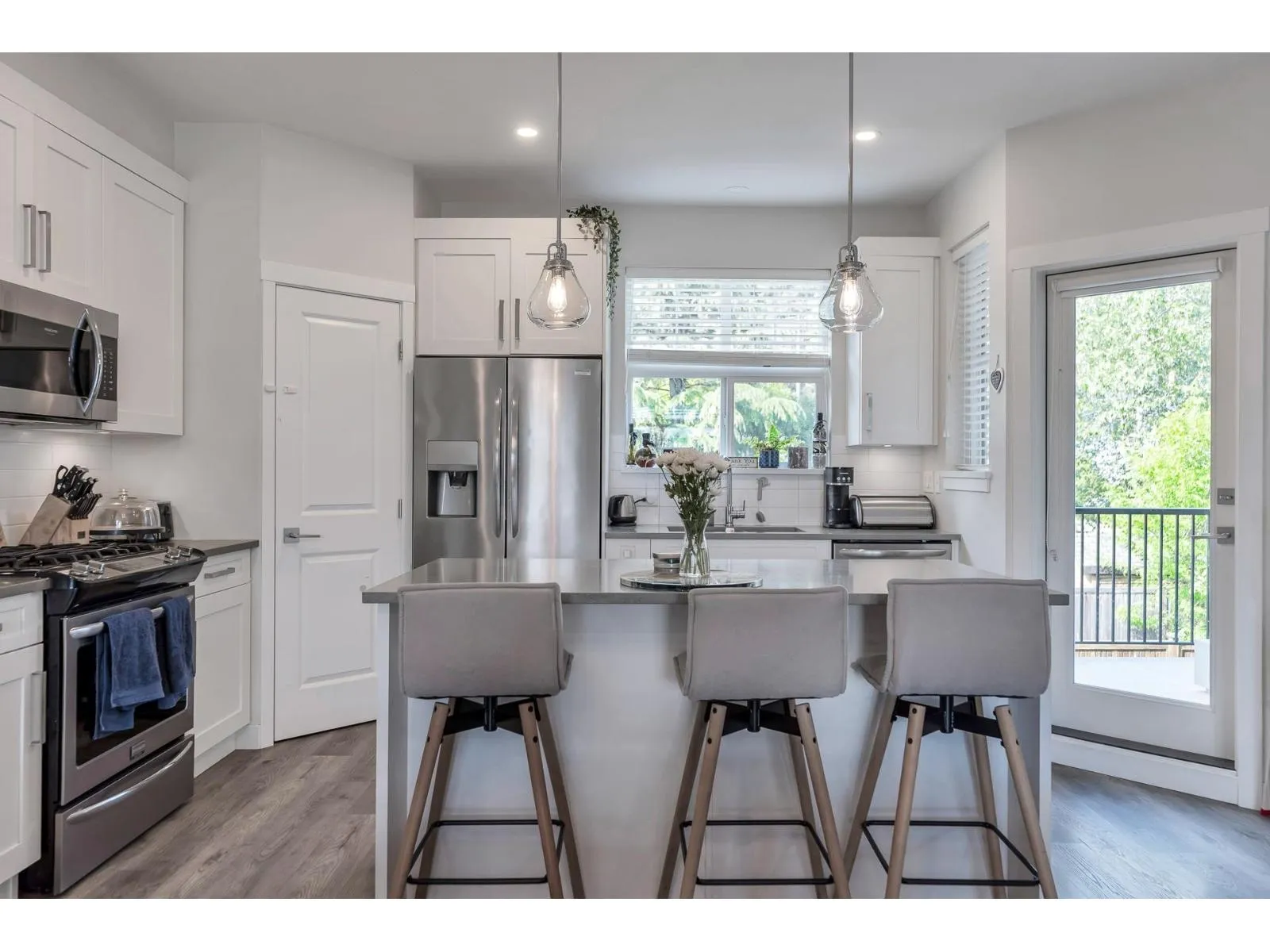 This 2020-built townhome offers 2,201 sq.ft. of smart, functional space with 3bedrooms and 4 bathrooms. The open-concept main floor is perfect for entertaining, with quartz counters, bright living and dining areas, and a bonus nook ideal for a kids' space or home office. Upstairs has 3 spacious bedrooms, including a primary with a custom California Closet and ensuite. Downstairs features a large rec room with its own separate entrance, full bath, and access to a private fenced yard. Includes A/C, side-by-side garage, and a central location with easy access to transit, Hwy , schools, and parks. (id:27476)
