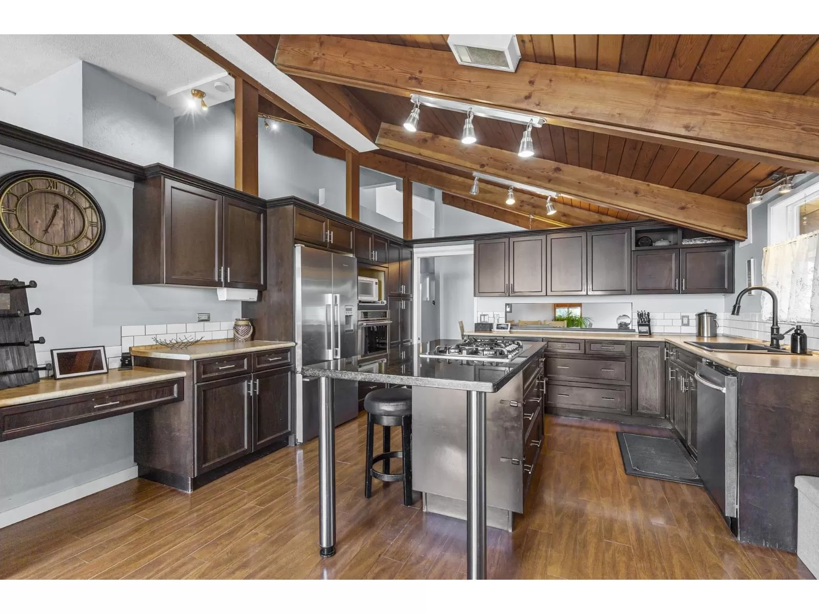 "Discover this truly UNIQUE AND SPACIOUS HOME with over 4000 sqft of living space! You'll be captivated by the breathtaking views of the Valley & Mount Baker. Inside, the main floor boasts gorgeous vaulted exposed-beam wood ceilings and an open-concept layout. The chef's-style kitchen & living area feature oversized sliders that lead to a south-facing covered deck, perfect for entertaining. The upper level offers a separate living area, a 3-piece bath, and two spacious bedrooms. A massive bonus is the fully self-contained, 3-bedroom suite on the lower level, ideal for multi-generational living or a fantastic mortgage helper. This suite includes its own semi-private patio area. Additional features include a NEW tankless hot water system, NEW WINDOWS, beautiful gardens, and an OVERSIZED GARAGE & driveway with room for an RV. Located in a prime spot, you can easily walk to Centennial Park and the Leisure Centre. This home is a must-see! Call your Realtor today! (id:27476)