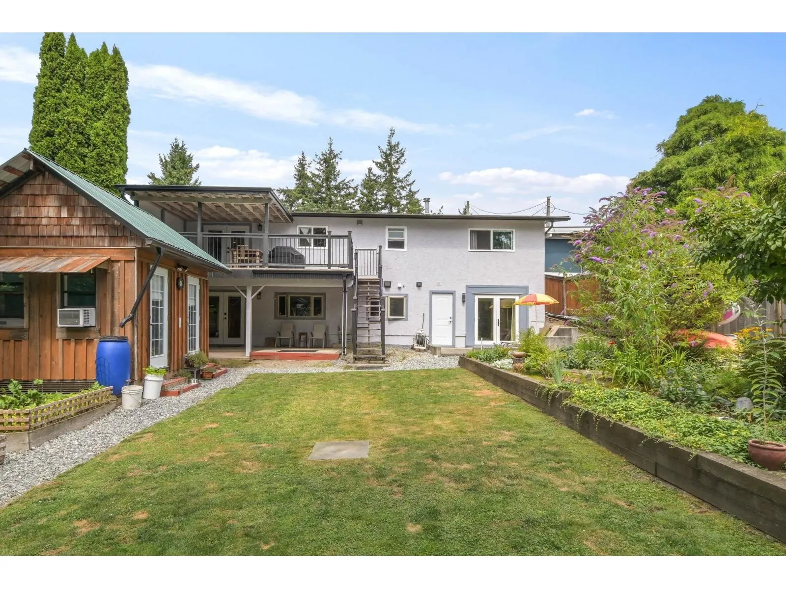 Rancher/bungalow with mortgage helper, city registered self-contained basement suite on a large 8280 sq ft lot. Gardeners delight with private backyard, greenhouse, raised beds, fruit trees and easy maintenance perennial garden. Bright, open floor plan upstairs with hardwood floors and gas fireplace. Three bedrooms on the main floor, one bedroom and flex room in the suite, each with its own bathroom and laundry facilities. Enjoy the views of your private garden from the large partially covered sundeck. A picturesque, detached garden room with a serene view of the backyard, perfect for a quiet retreat or home office/guest house. Recent upgrades include new roof and windows There is a secure tool shed and parking for a small trailer. Located across from Cherry Hill Elementary school. (id:27476)