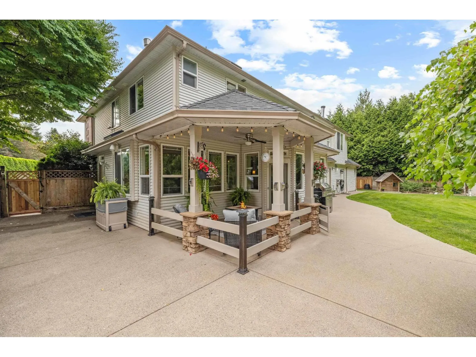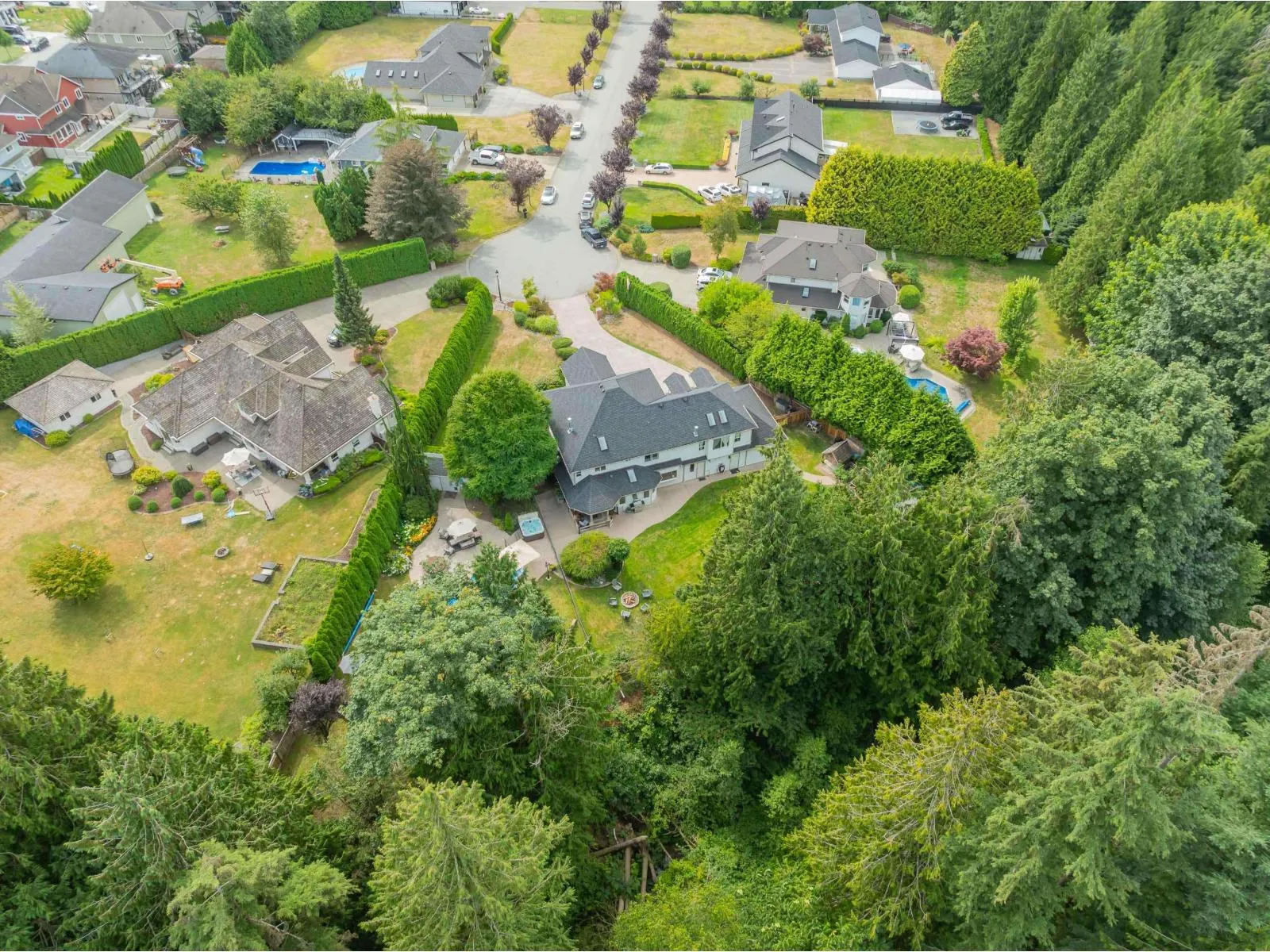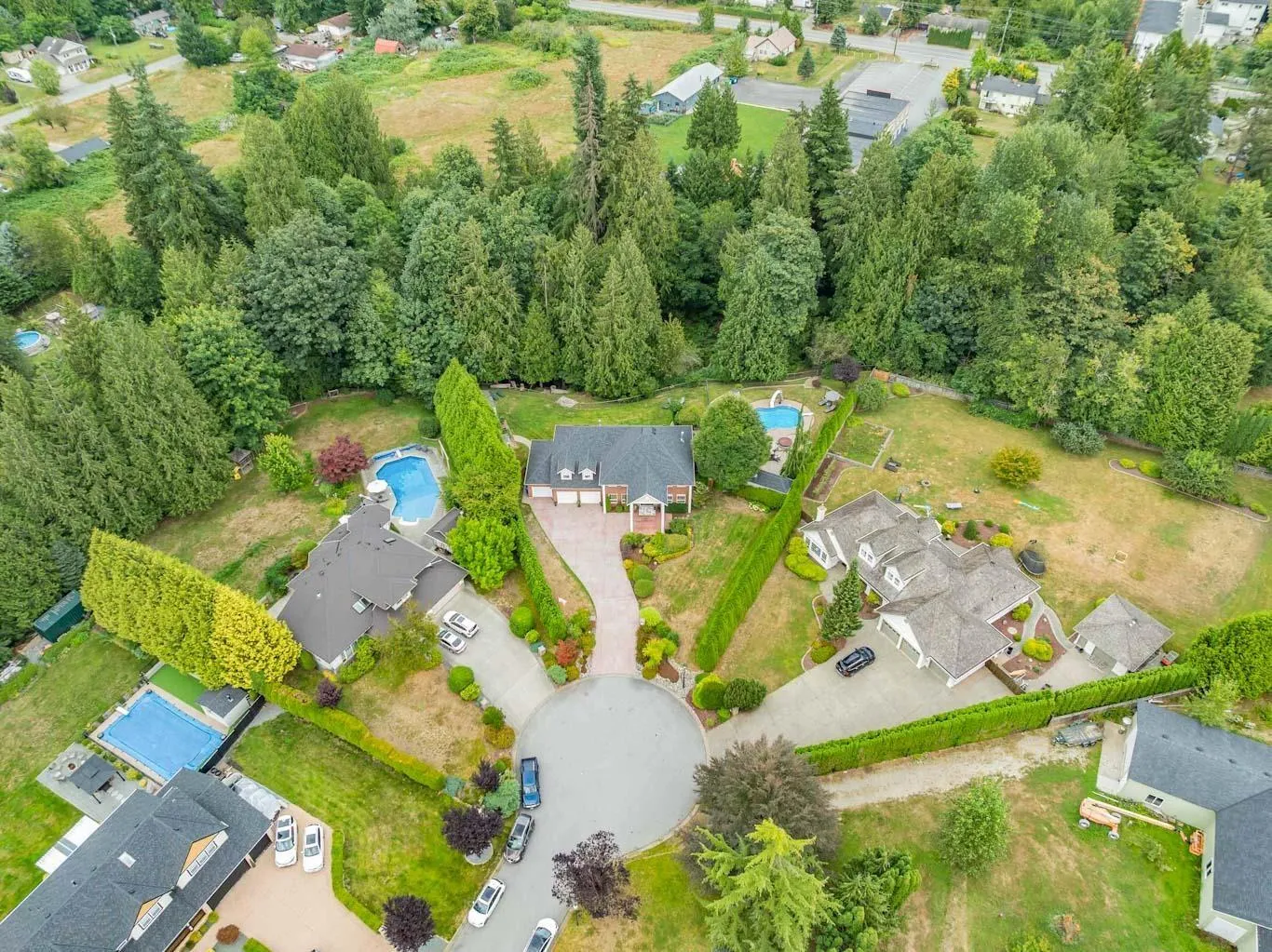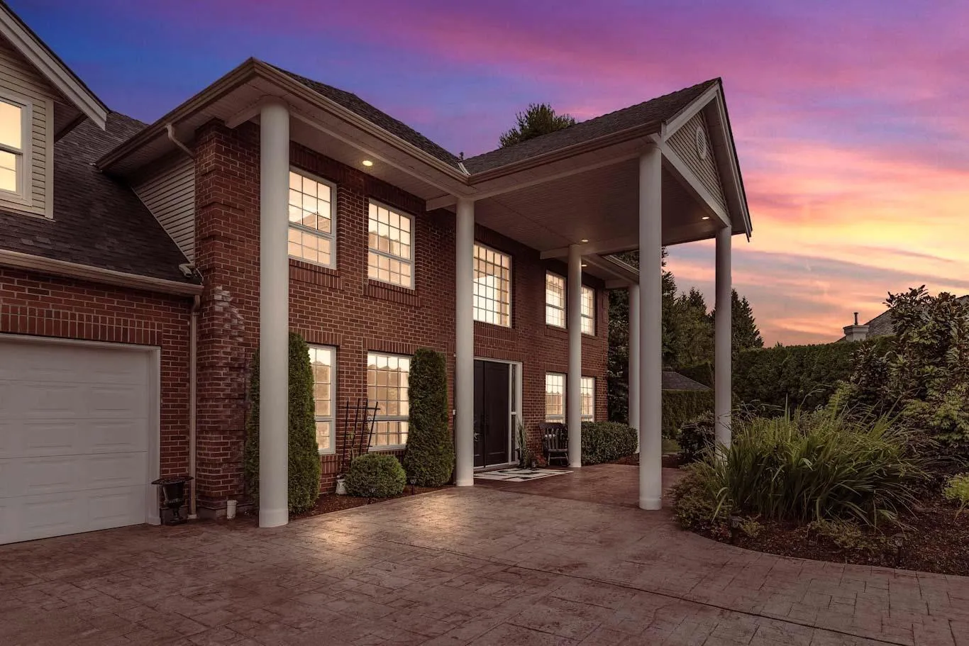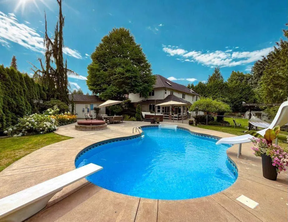Estate living awaits in this distinguished colonial-style mansion on nearly one acre, backing onto a private greenspace with a creek. A sweeping 80-ft stamped concrete driveway offers space for cars, RVs or boats. The backyard is a private resort with saltwater pool, hot tub and elegant patio. Inside, a striking spiral staircase leads to 4 spacious bedrooms, with the primary suite featuring a two-sided fireplace and spa-like jetted tub. A versatile 5th room can serve as a family room or extra-large bedroom. The garage's 3rd bay is converted to a gym with potential as a studio suite & has 200 amp service. Downstairs a larger foyer, formal living room & dining room plus chef's kitchen awaits. A rare blend of classic design, luxury and comfort. (id:27476)