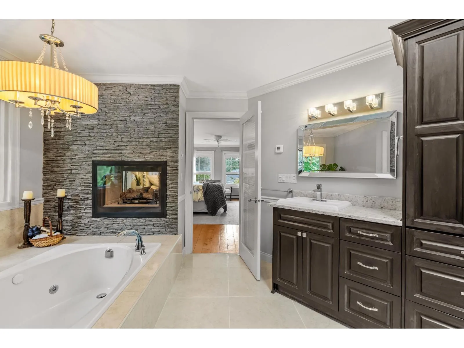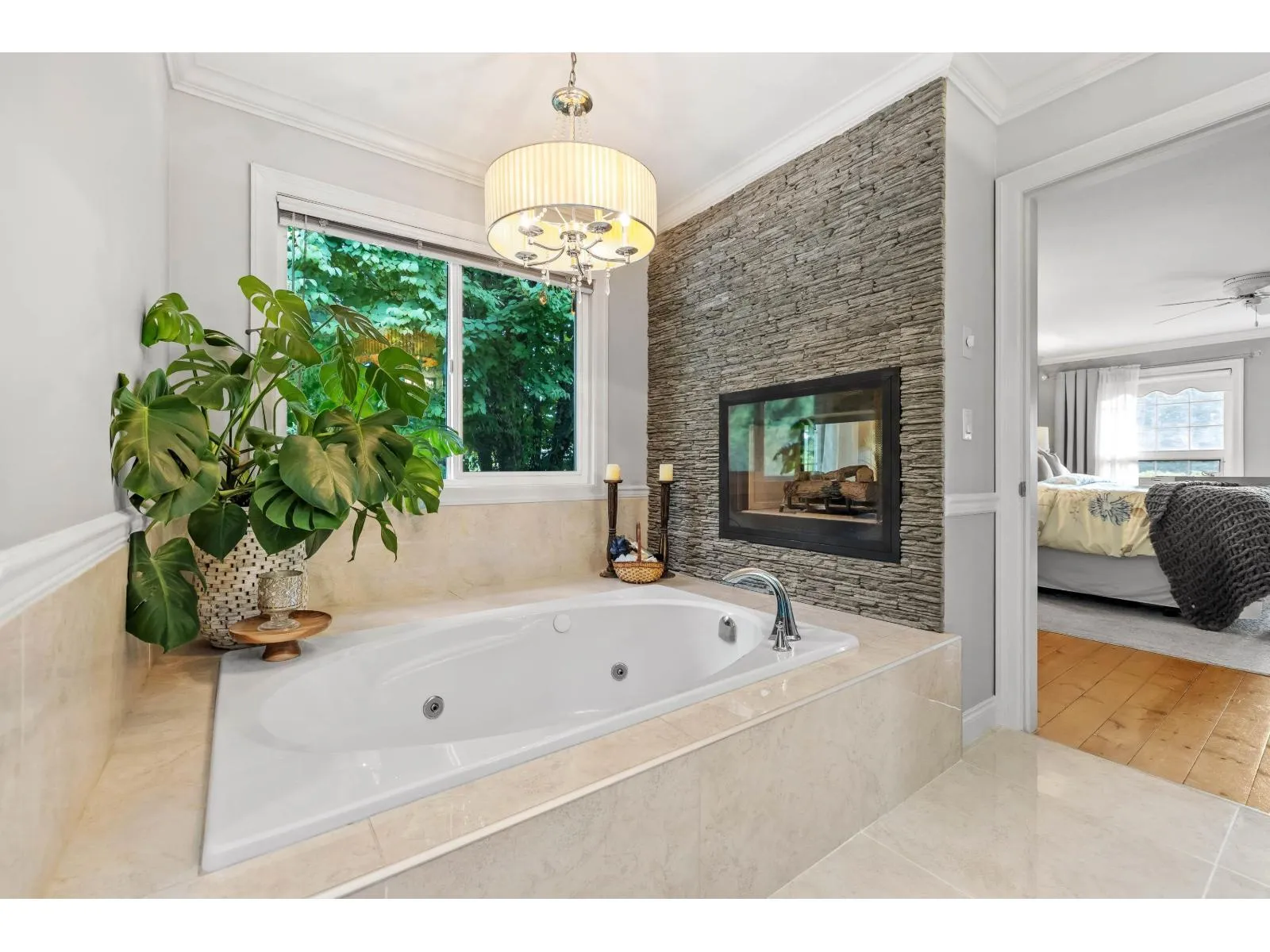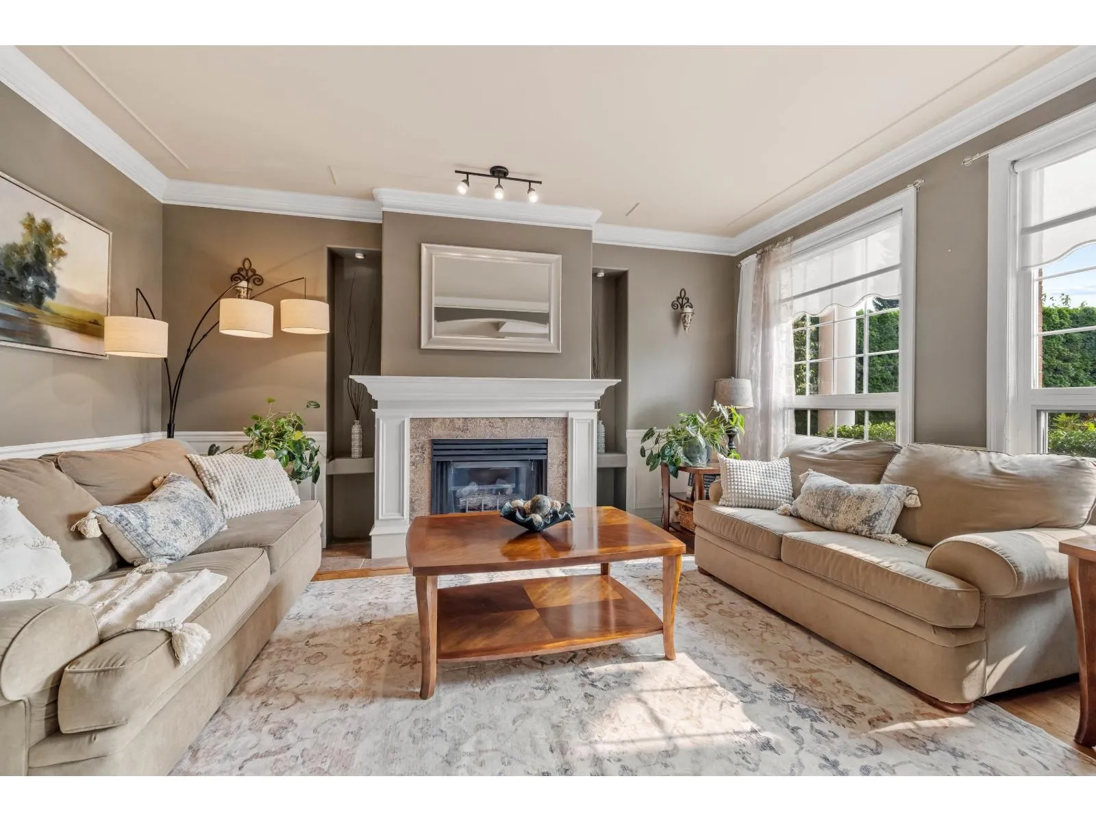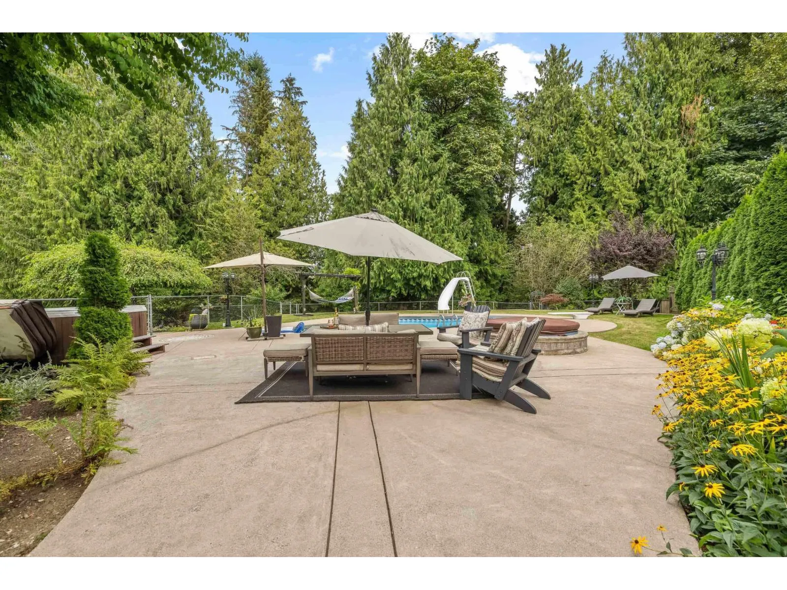 Estate living awaits in this distinguished colonial-style mansion on nearly one acre, backing onto a private greenspace with a creek. A sweeping 80-ft stamped concrete driveway offers space for cars, RVs or boats. The backyard is a private resort with saltwater pool, hot tub and elegant patio. Inside, a striking spiral staircase leads to 4 spacious bedrooms, with the primary suite featuring a two-sided fireplace and spa-like jetted tub. A versatile 5th room can serve as a family room or extra-large bedroom. The garage's 3rd bay is converted to a gym with potential as a studio suite & has 200 amp service. Downstairs a larger foyer, formal living room & dining room plus chef's kitchen awaits. A rare blend of classic design, luxury and comfort. (id:27476)