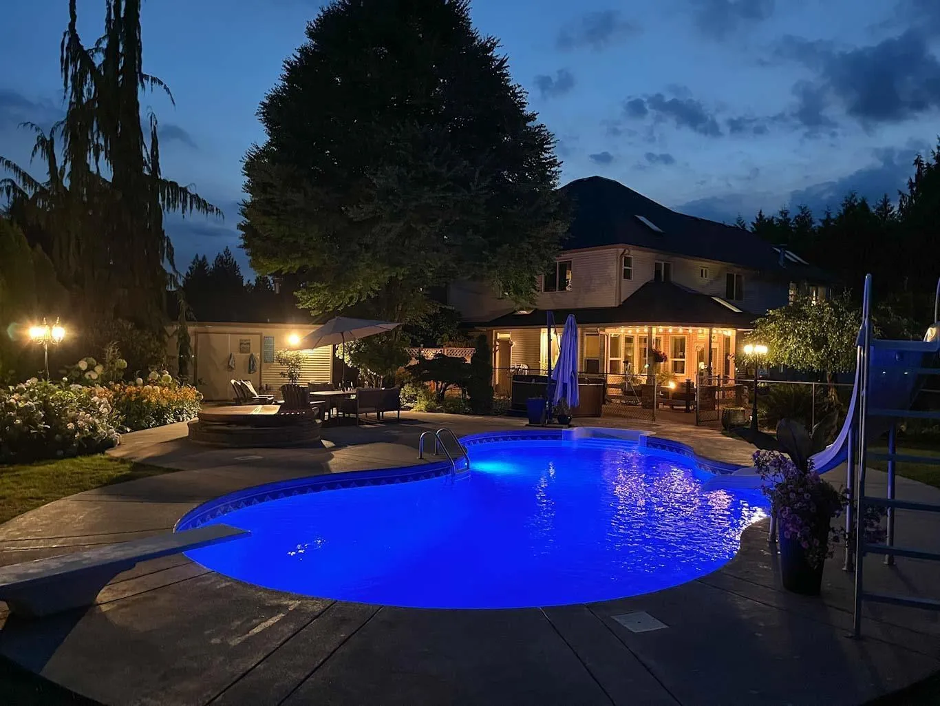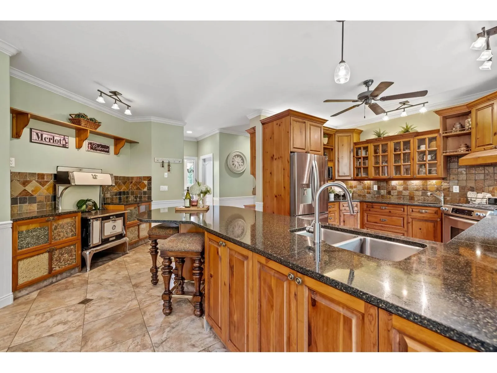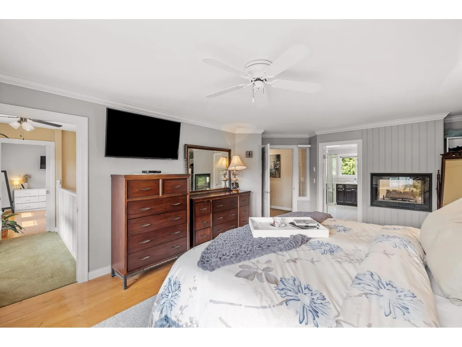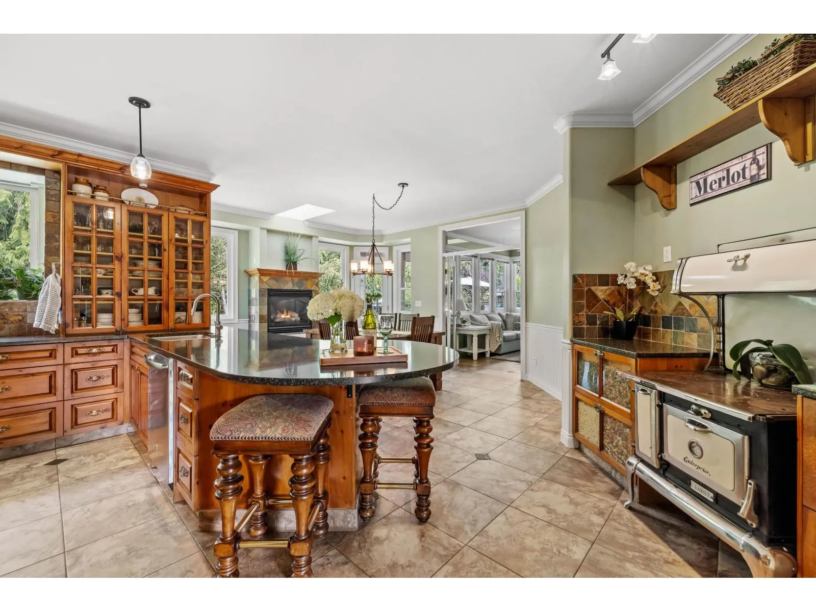 Estate living awaits in this distinguished colonial-style mansion on nearly one acre, backing onto a private greenspace with a creek. A sweeping 80-ft stamped concrete driveway offers space for cars, RVs or boats. The backyard is a private resort with saltwater pool, hot tub and elegant patio. Inside, a striking spiral staircase leads to 4 spacious bedrooms, with the primary suite featuring a two-sided fireplace and spa-like jetted tub. A versatile 5th room can serve as a family room or extra-large bedroom. The garage's 3rd bay is converted to a gym with potential as a studio suite & has 200 amp service. Downstairs a larger foyer, formal living room & dining room plus chef's kitchen awaits. A rare blend of classic design, luxury and comfort. (id:27476)