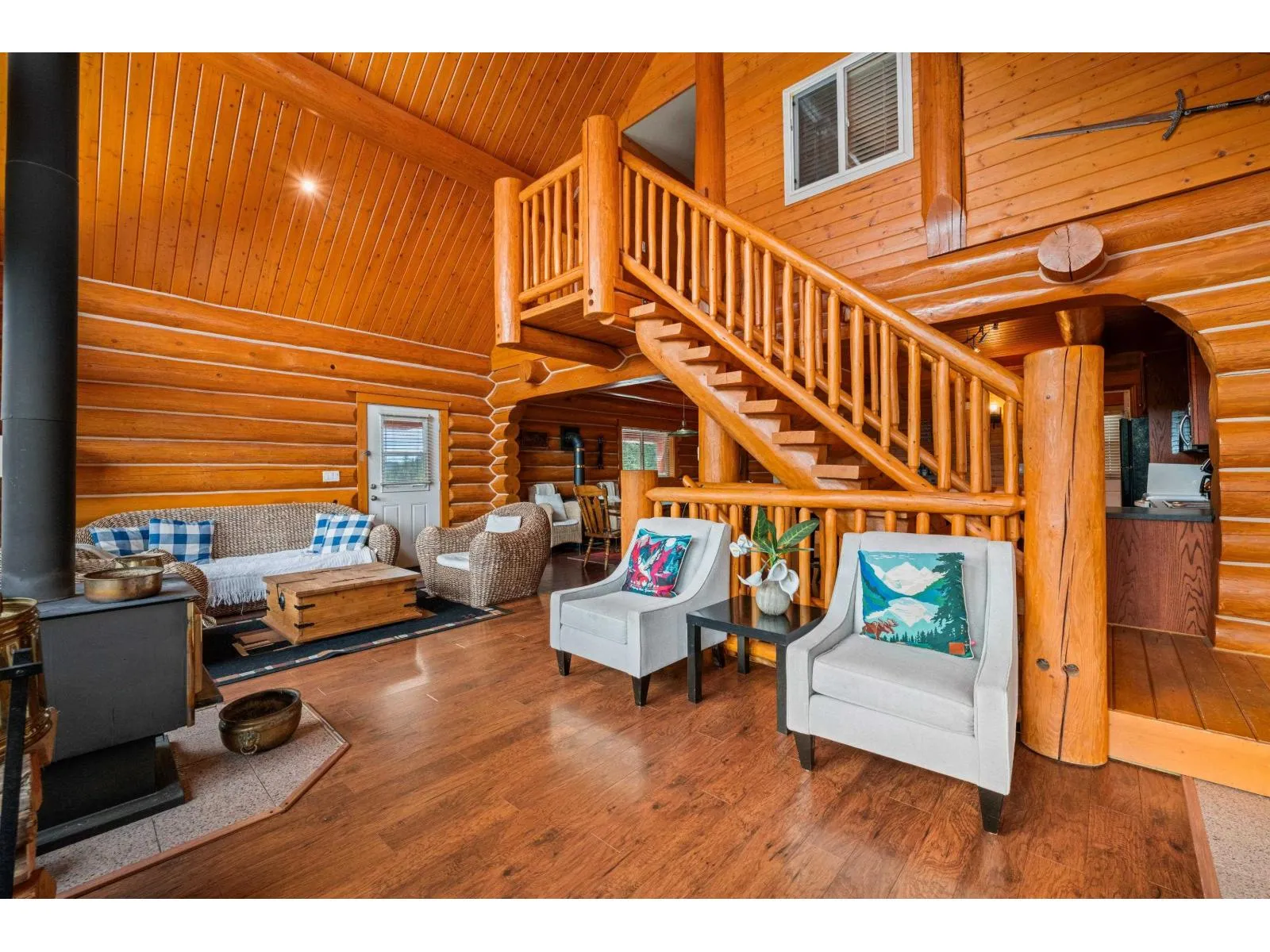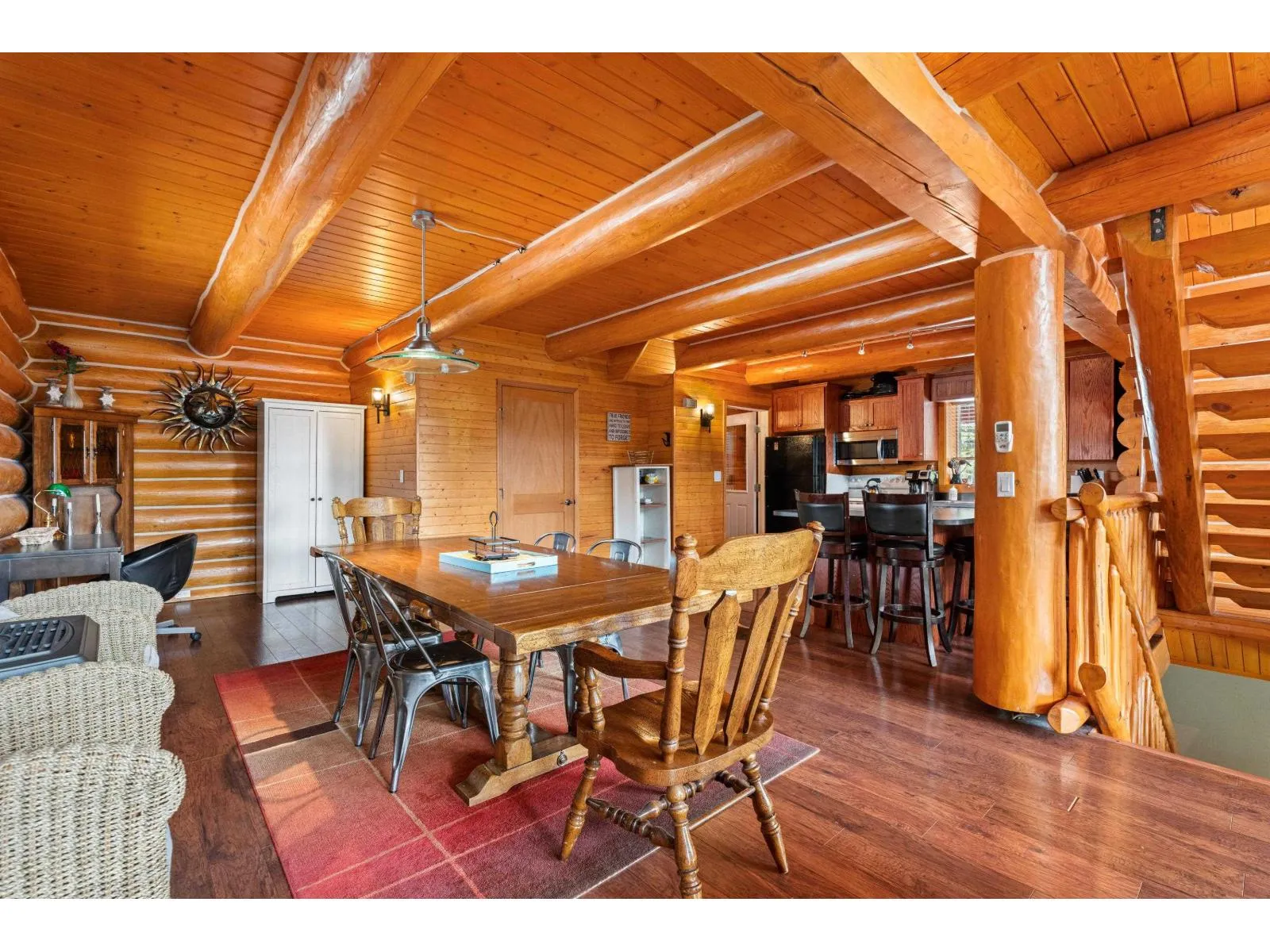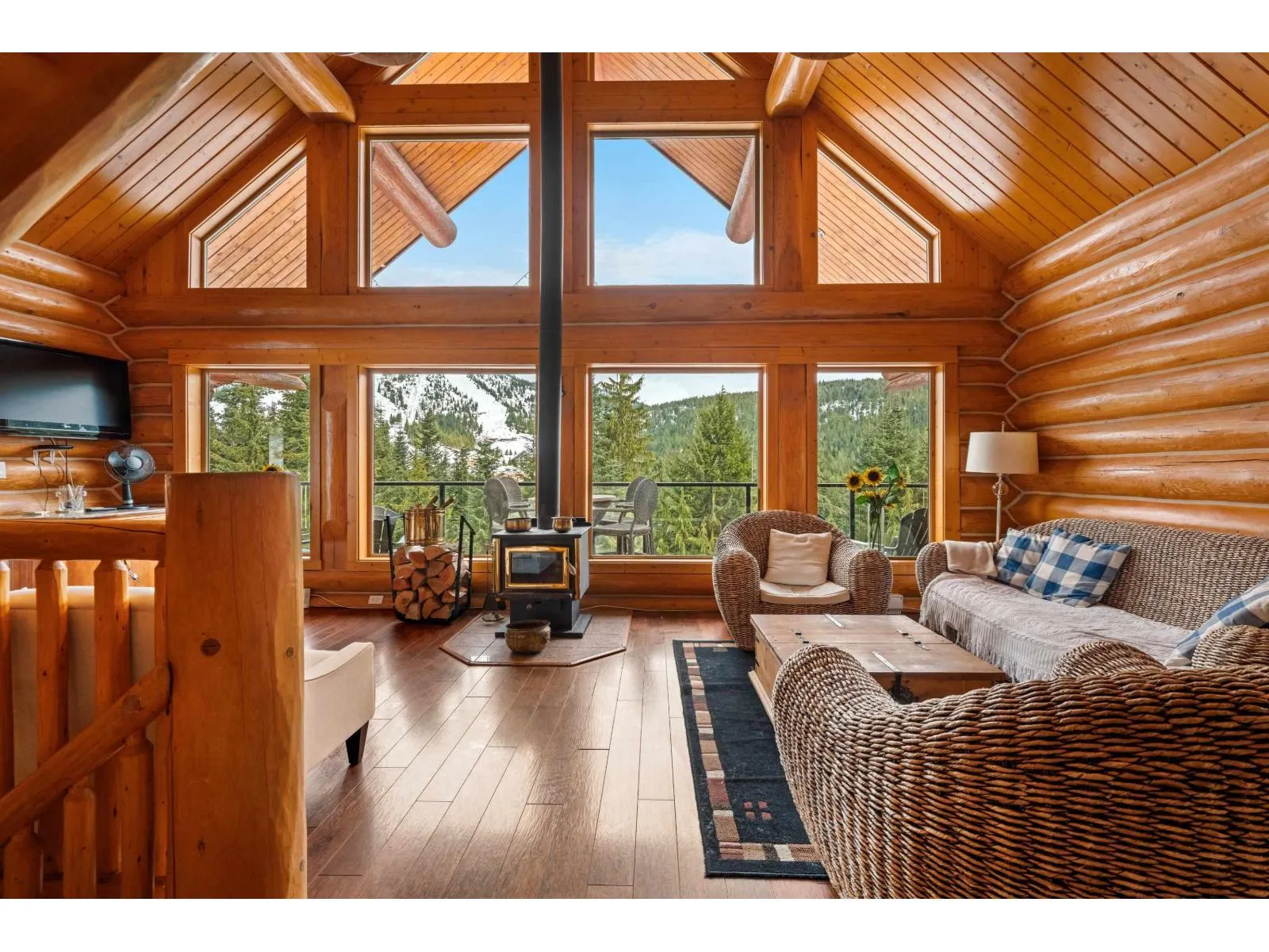 Custom log chalet nestled in Sasquatch Mountain boasts stunning craftsmanship and rustic charm. Successful Airbnb history, this charming abode promises a memorable retreat all year round. This 3 level chalet offers an open floor plan on the main level with vaulted ceilings, large windows looking at the ski hill & cozy wood burning stove, 3 bdrms on the upper floor with the ability to sleep up to 9 people comfortably. Two wrap-around decks that offer unobstructed views of the ski hill and surrounding landscape. Large rec room & wet bar downstairs are perfect for entertaining. Adding to the allure of the property is a brand-new hot tub overlooking the ski hill. Ample storage that includes heated crawl & snowmobiles. Backup power generator & option for gas line. Nicest views on the mountain! (id:27476)