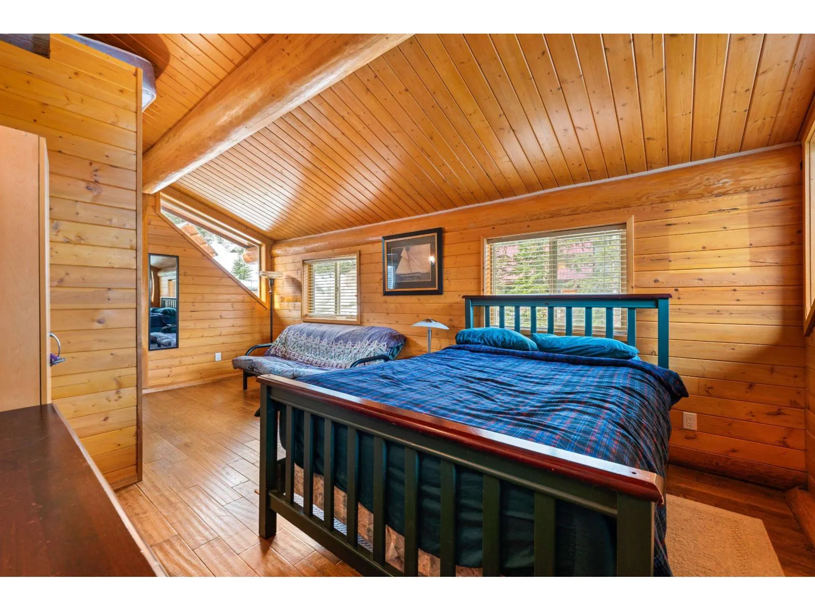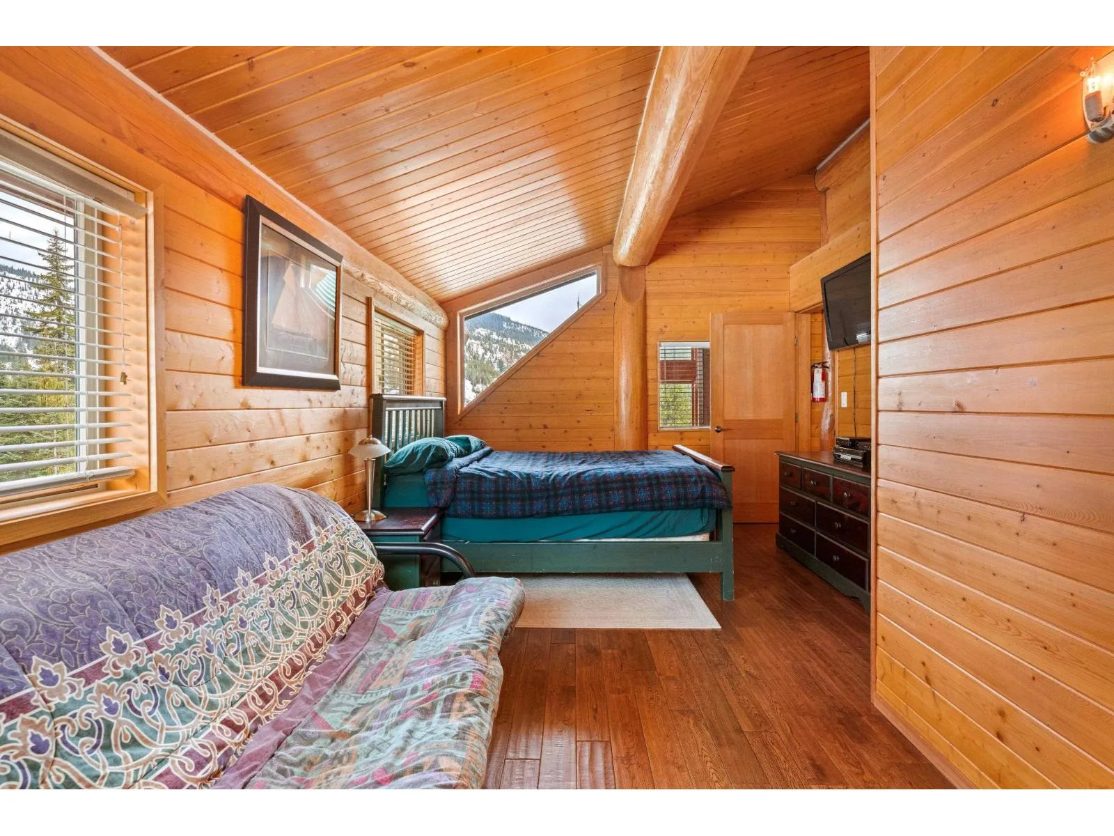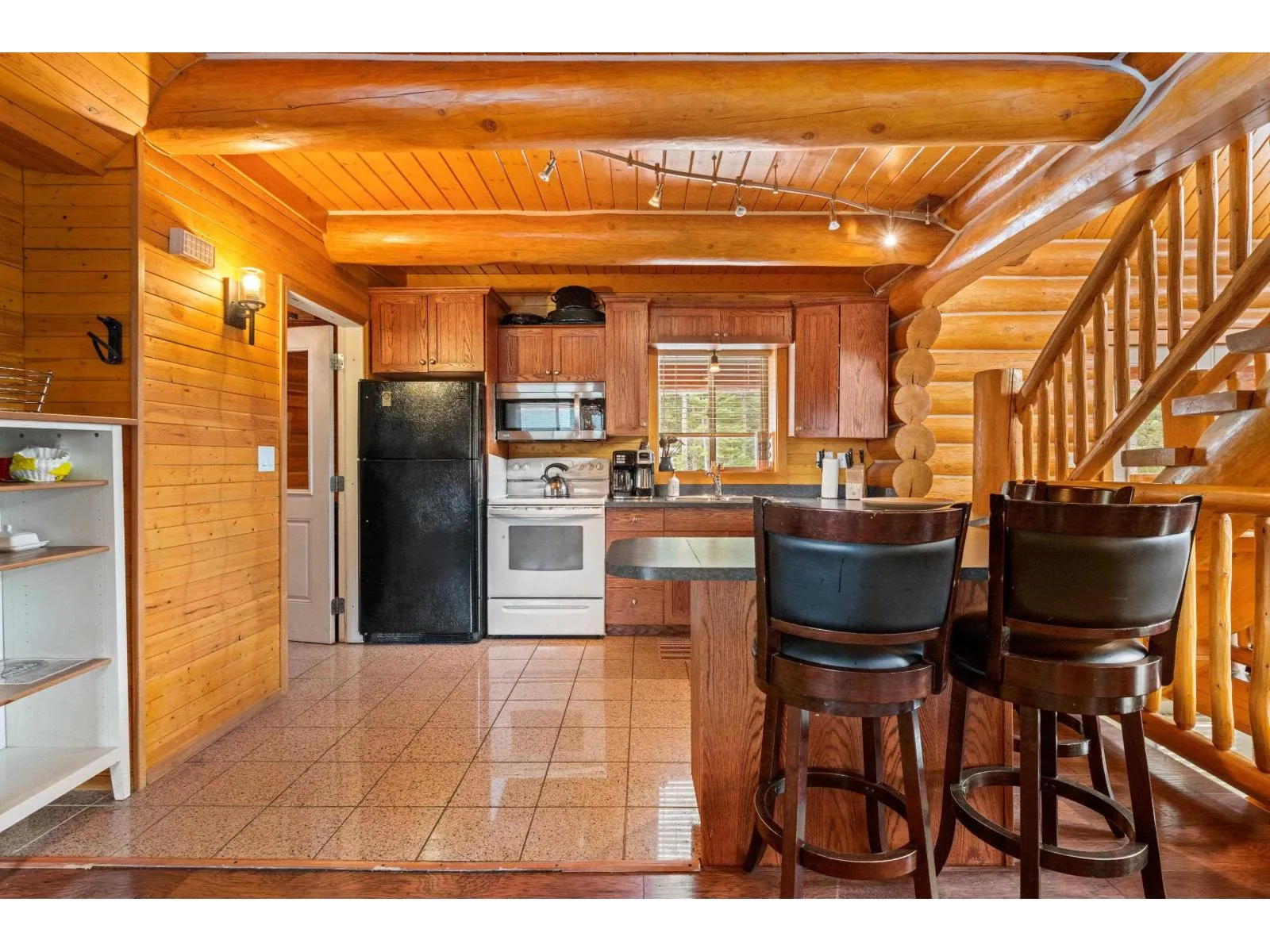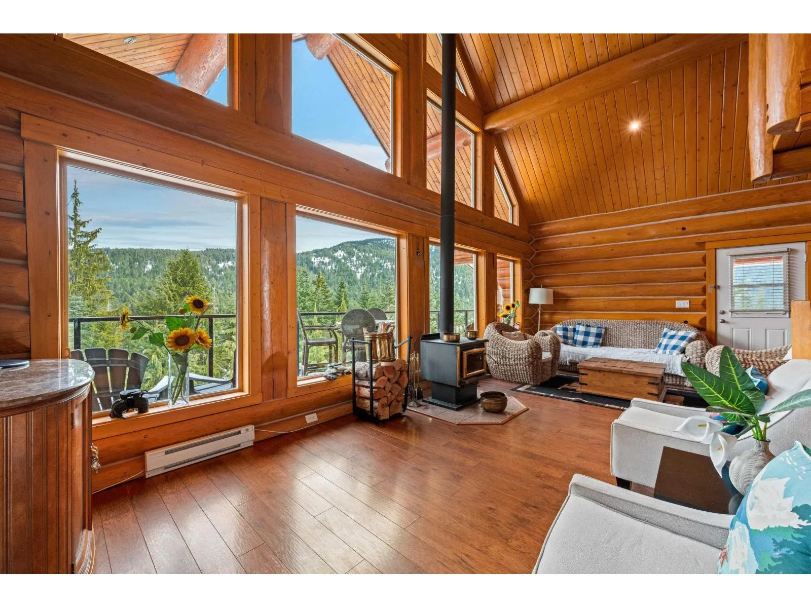 Custom log chalet nestled in Sasquatch Mountain boasts stunning craftsmanship and rustic charm. Successful Airbnb history, this charming abode promises a memorable retreat all year round. This 3 level chalet offers an open floor plan on the main level with vaulted ceilings, large windows looking at the ski hill & cozy wood burning stove, 3 bdrms on the upper floor with the ability to sleep up to 9 people comfortably. Two wrap-around decks that offer unobstructed views of the ski hill and surrounding landscape. Large rec room & wet bar downstairs are perfect for entertaining. Adding to the allure of the property is a brand-new hot tub overlooking the ski hill. Ample storage that includes heated crawl & snowmobiles. Backup power generator & option for gas line. Nicest views on the mountain! (id:27476)