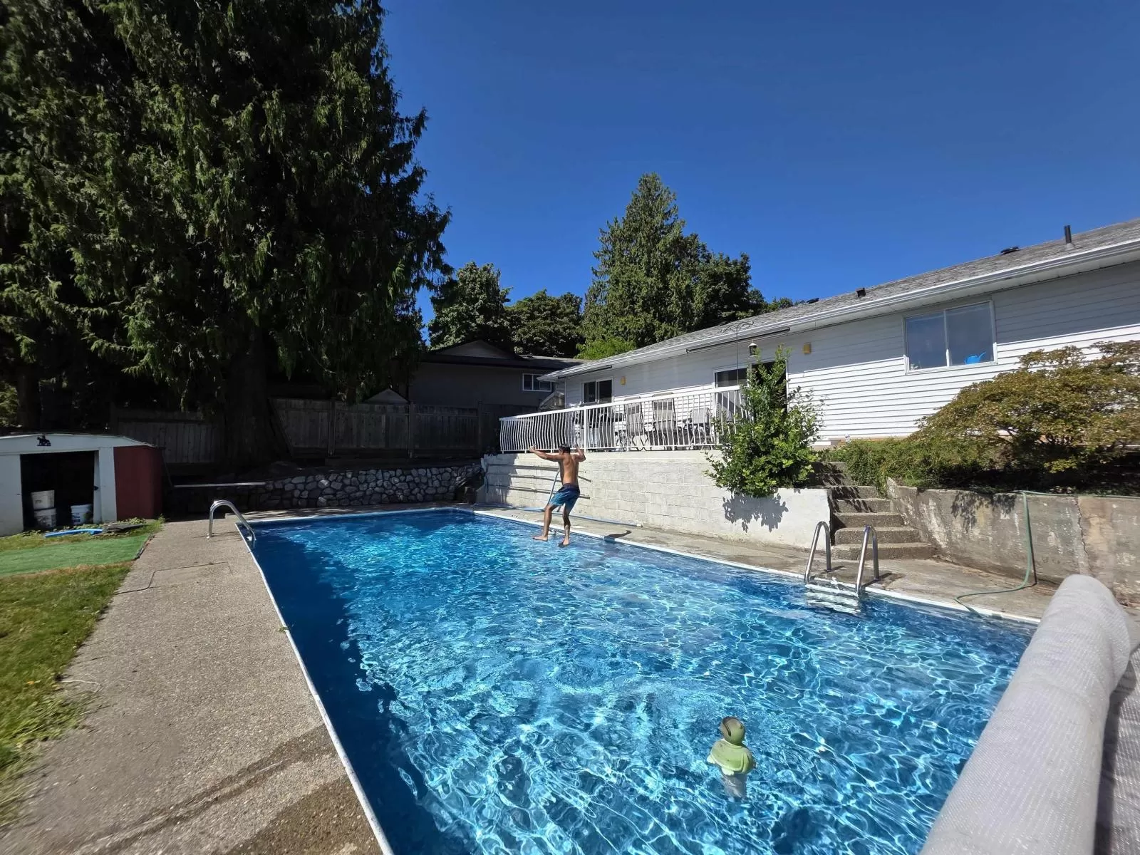 Welcome to 8249 Copper Place, a deluxe 3-bedroom RANCHER nestled in one of Mission's most desirable neighborhoods. This charming home boasts a south-facing backyard, offering both privacy and stunning VIEWS, perfect for enjoying the large, sunny outdoor space. The highlight of the property is the impressive 16x38 INGROUND SWIMMING POOL, ideal for relaxation and entertaining. Inside, you'll find two full bathrooms, a cozy gas fireplace in the living room, and a functional laundry area conveniently located off the kitchen. Recent upgrades, including a NEW ROOF in 2020, New Trane Furnace aprox 2015, NEW Hot Water April 2023. Situated on a quiet no-thru street, this is a fantastic opportunity to live in a tranquil and sought-after location! (id:27476)