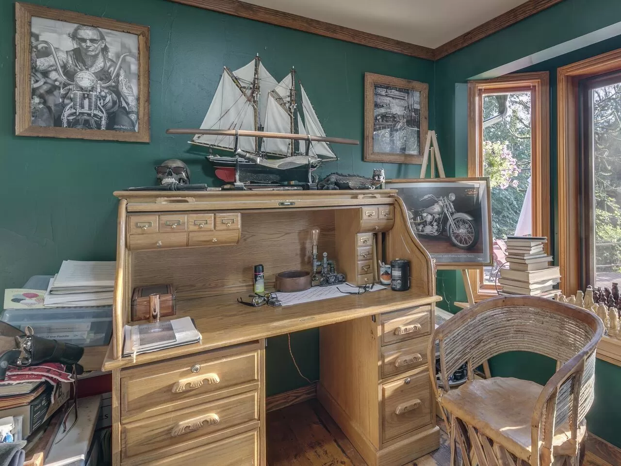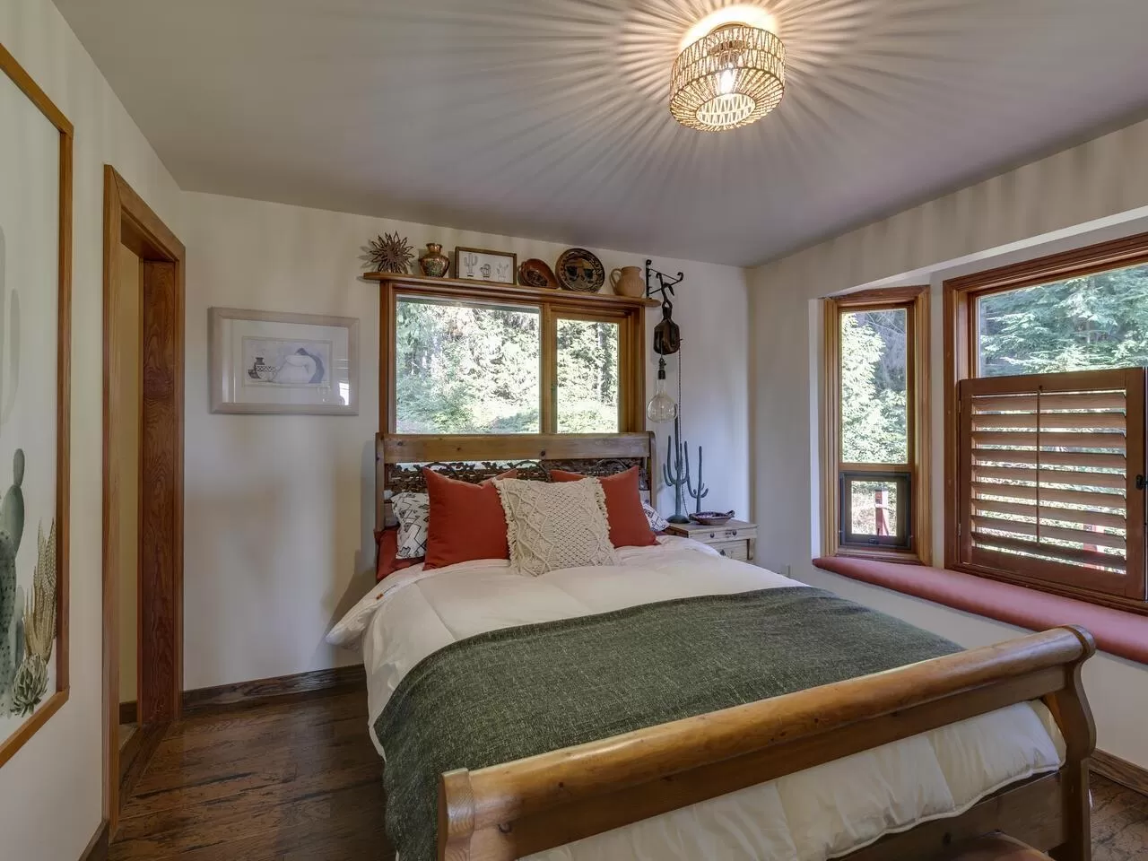 Private acreage with VIEWS! This 4-bedroom, 2.5-bathroom home offers a perfect blend of rustic charm and modern comfort, featuring a dramatic A-frame design and floor-to-ceiling windows that fill the living spaces with natural light and frame serene forest views. Warm wood ceilings, exposed beams and hardwood floors create an inviting atmosphere, complemented by both a grand great room and a cozy family room with a wood stove. The kitchen blends farmhouse character with modern updates, featuring custom cabinetry, stone backsplash and S/S appliances, while the bathrooms showcase timeless tile and stylish finishes. Outside, a large wrap-around deck is ideal for peaceful mornings or sunsets, and the property includes a 25x39 shop, adding incredible functionality to this stunning retreat! (id:27476)