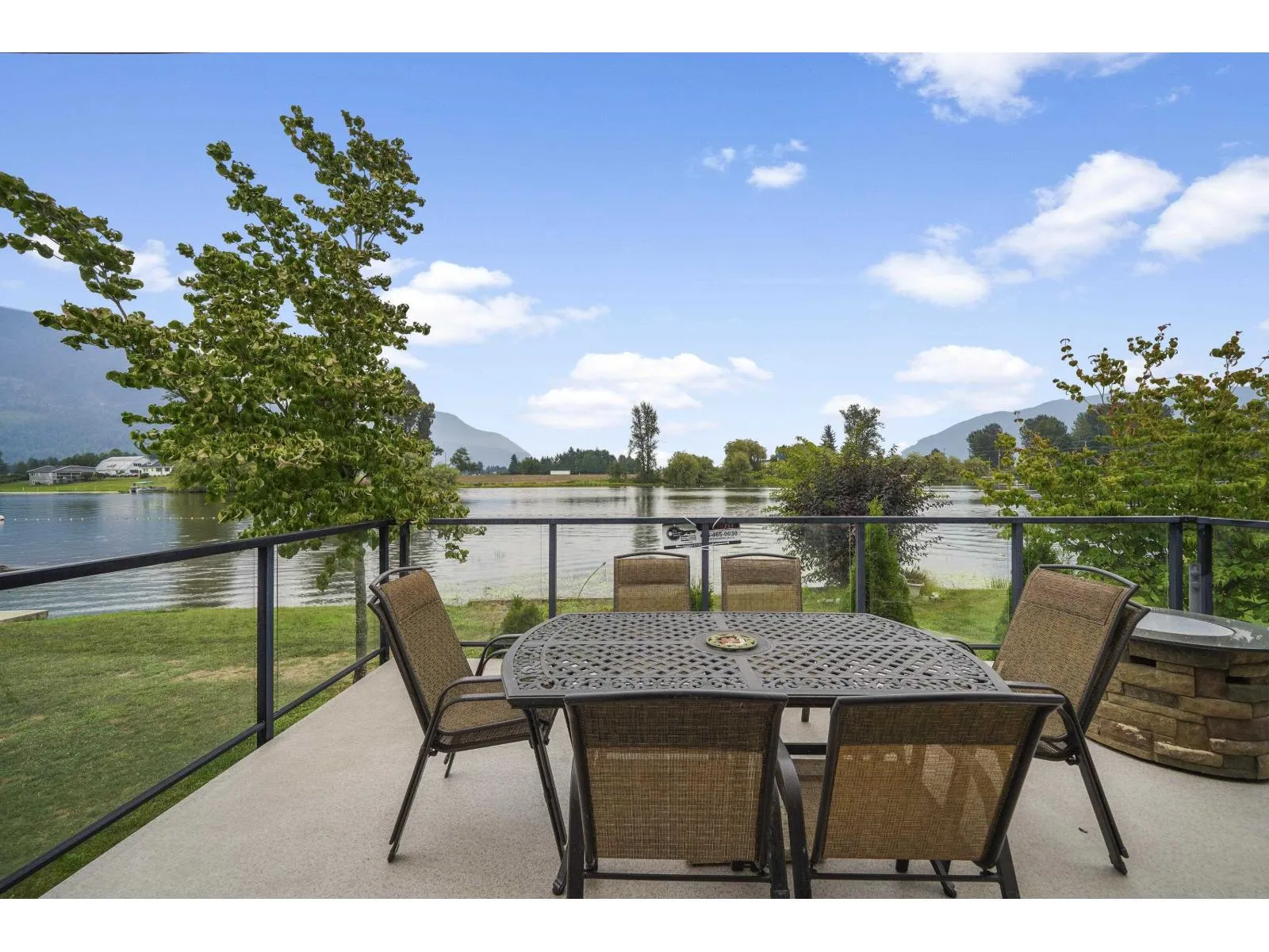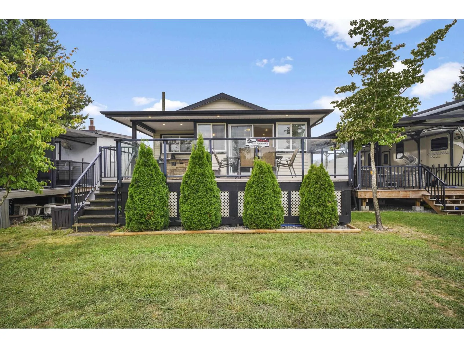 TRUE LAKEFRONT ESCAPE!!! Turnkey & fully furnished. Swim, boat, water ski, fish, paddleboard, or relax from this beautifully renovated cottage SITTING DIRECTLY ON THE SHORE OF HATZIC LAKE w/ PANORAMIC VIEWS of both water & mountains! RENOS include: New roof, new hot water tank, new custom cabinets/storage, fully renovated bathroom & kitchen, lighting, flooring, quartz counters, s/s appliances, new windows w/screens & blinds, exterior doors, massive partially covered deck overlooking lake, concrete foundation, new electric, new plumbing, electric fireplace! BONUSES: pickleball court, 2 boat launches, boat storage/parking, beach (swimming) area, playground, bike track, basketball court, Club House, golf carts allowed & Wifi. Includes HUGE concrete pad for RV with full 30AMP hookup & septic! (id:27476)