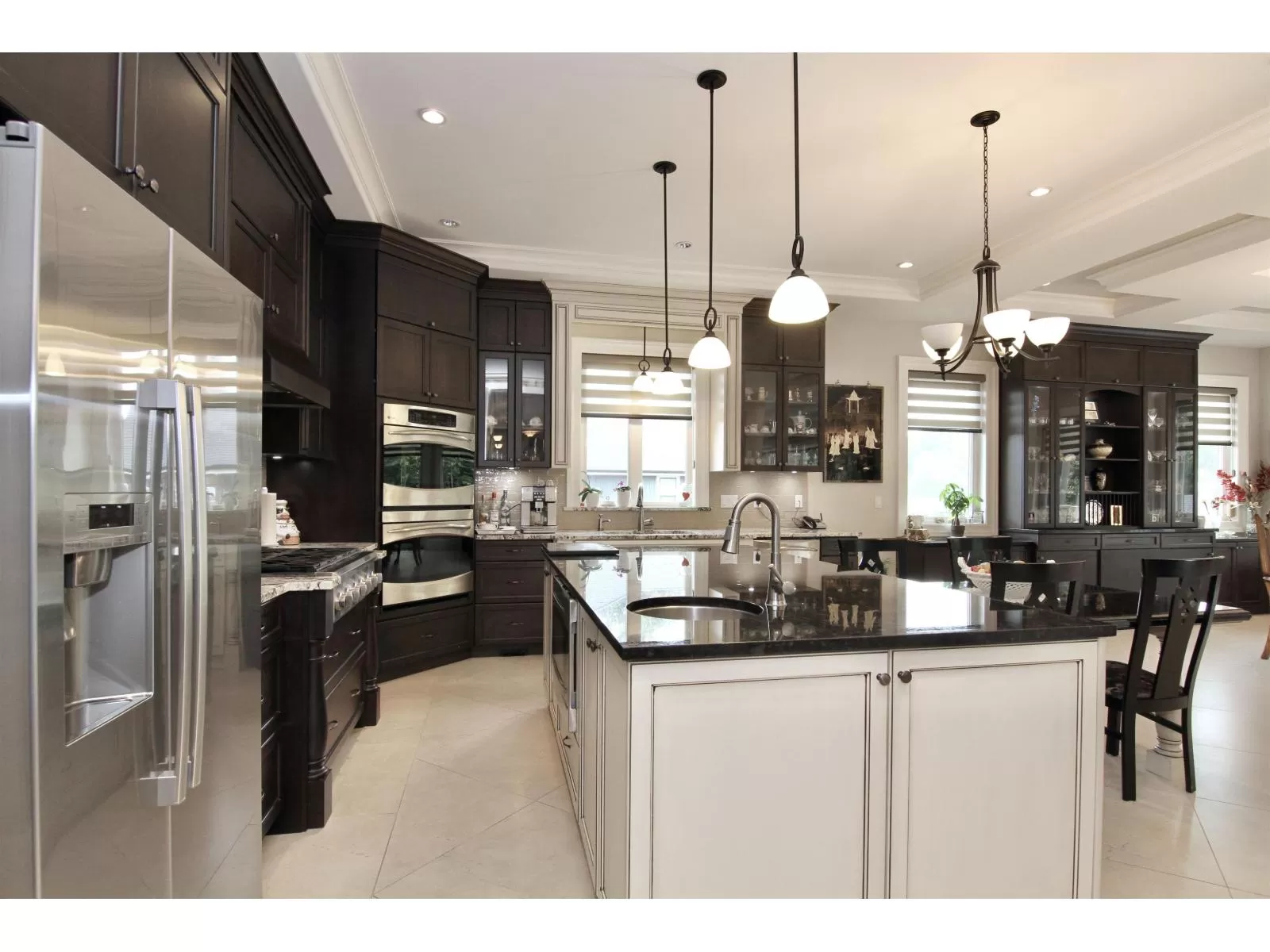 Welcome to this remarkable 5-bdrm, 6-bth 4 kitchen 5,586 sqft estate (w/ a 2 Bdrm SUITE) where luxury design & exceptional craftsmanship come together! Step inside to find soaring ceilings, Italian tile, & an open-concept layout that's both inviting & impressive. The gourmet kitchen is equipped w/ top-of-the-line appliances, a Monogram 6-burner gas range, GE Profile double wall ovens, built-in microwave, & a sleek SS fridge. A stunning two-way gas fireplace adds warmth & ambiance, seamlessly connecting the main living spaces. The primary suite is a true sanctuary, offering a spa-inspired 6-piece ensuite. Massive 16-ft sliding doors lead to an expansive patio, ideal for entertaining or relaxing while overlooking nearly 40,000 sqft of beautiful grounds. Watch video & book your showing today! (id:27476)