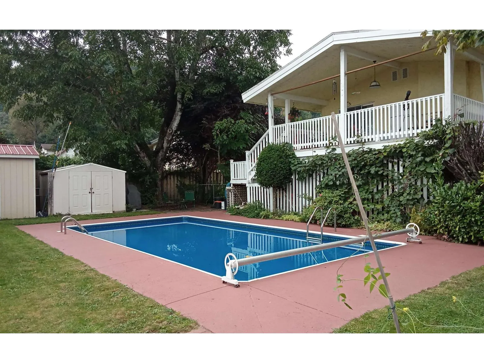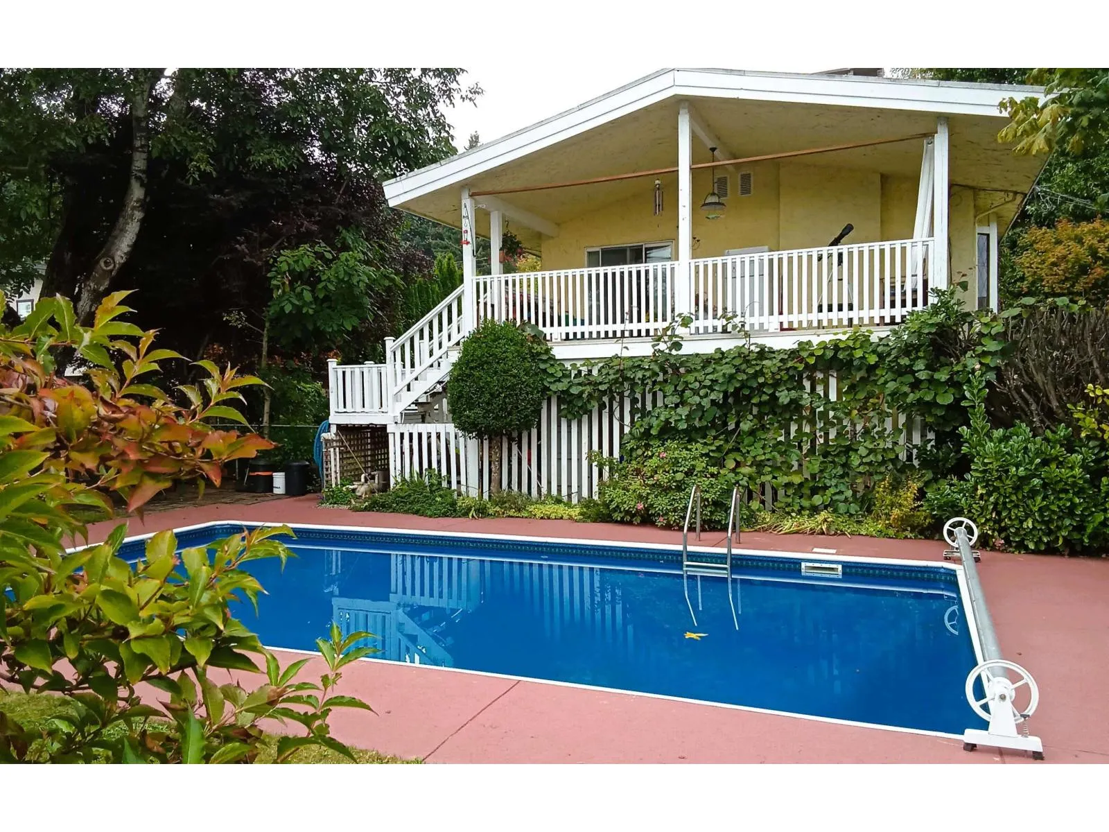 Solid "BRICK AND MORTAR" 5 bdrm, 2.5 bath home with 2-bdrm suite, RV parking, gardens, fruit trees and a gorgeous 16' x 32' in-ground pool all on a level fenced 10,400 sq ft lot in desirable Hatzic Bench! Walking distance to schools, parks & convenient store, this well-maintained home features 3 bedrooms up, a large master with ensuite, updated bathrooms, a sunken living room with floor-to-ceiling brick fireplace, bay windows and a light-filled country kitchen leading to a 10 x 30 covered deck with mountain views! Downstairs you'll find a fully contained 2-bdrm suite with separate ground-level entrance - perfect for extended family or extra income. Updates include a new pool liner (2025), pool pump, new electrical panel & sump pump, wood shed and more! Great family home and neighborhood! (id:27476)