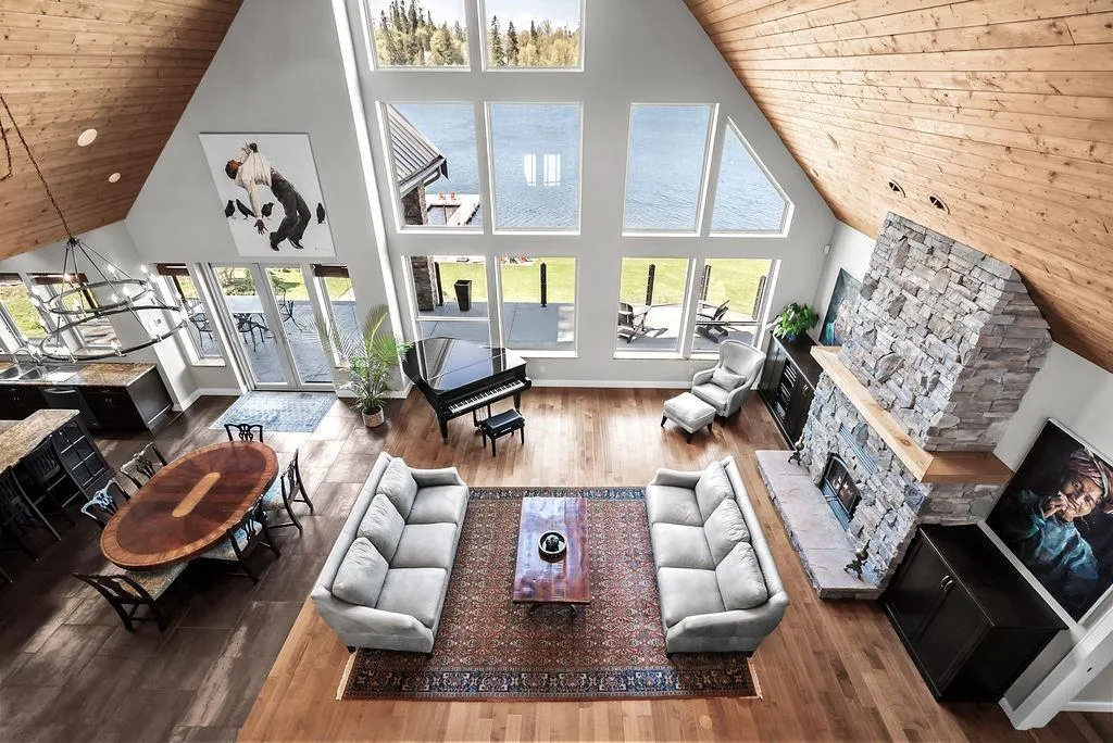Welcome to this one-of-a-kind lakefront oasis on the tranquil shores of Silvermere Lake. This magnificent 6,885 sq ft custom-built estate has 5 bedrooms & 4.5 baths and is nestled on .63 acres of pristine, private waterfront. Featuring over 200 feet of sandy beach, a floating dock, private boat launch, and floatplane access. This is resort-style living at its finest! Designed with absolute attention to detail and built with no expense spared, this stunning home contains entertainment rooms, guest rooms, workshop, metal roof, stamped concrete decks with top-tier craftsmanship throughout. Step inside to an expansive open-concept layout with soaring 26' ceilings, a designer chef's kitchen, and an entertainment-sized great room perfect for hosting. (id:27476)