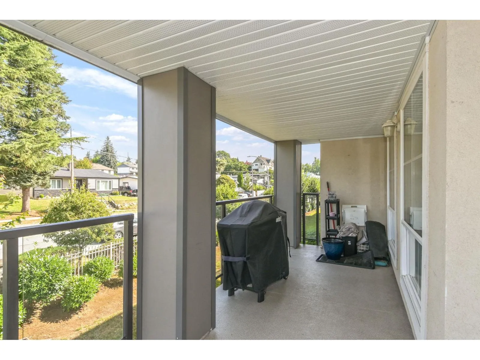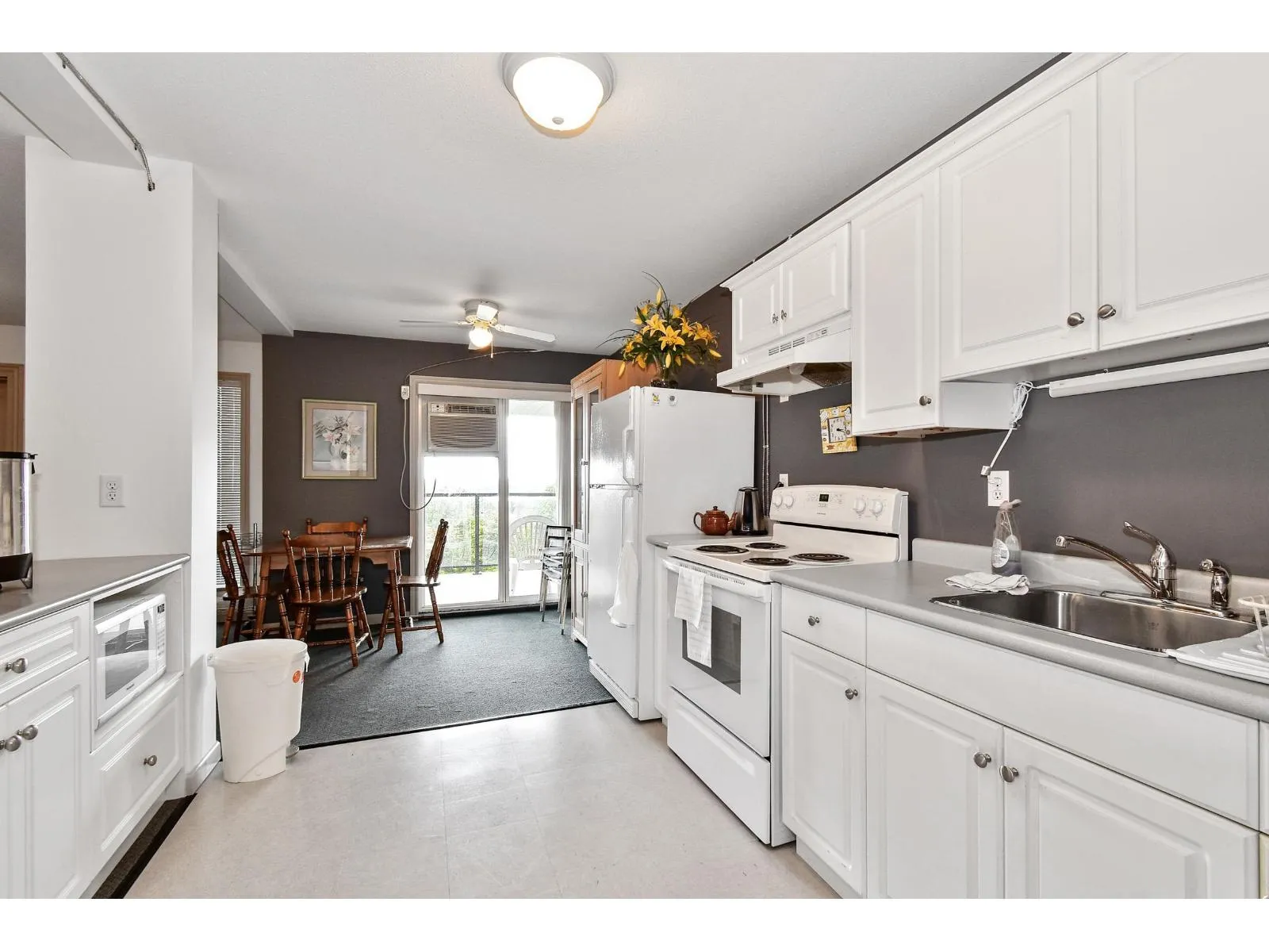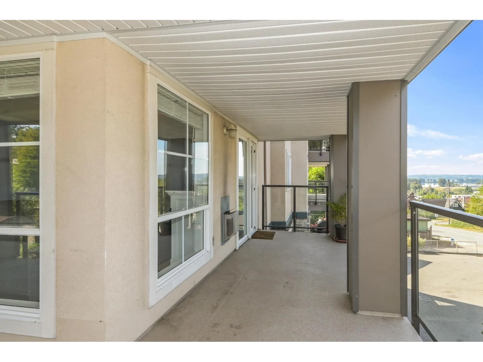 Bright, spacious 3-bedroom corner apartment at Kathleen Court offers a Fraser River view, wrap-around balcony, and a quiet, well-maintained building. Features fresh paint, new laminate floors, stainless steel appliances, new countertops, brand new fridge, new LED ceiling light in kitchen, newer washer/dryer, plus a brand new large kitchen with white cabinet doors and new hardware. The primary bedroom includes a walk-in closet and ensuite. Includes 2 side-by-side parking stalls, large storage locker, gas fireplace, and amenities room with kitchen and meeting space. Also features a workshop for crafts/projects. Walk to West Coast Express, Mission Central Elementary, and Mission Recreation Centre. Heat & hot water included. Pets with restrictions. Move-in ready. Quick possession possible. (id:27476)
