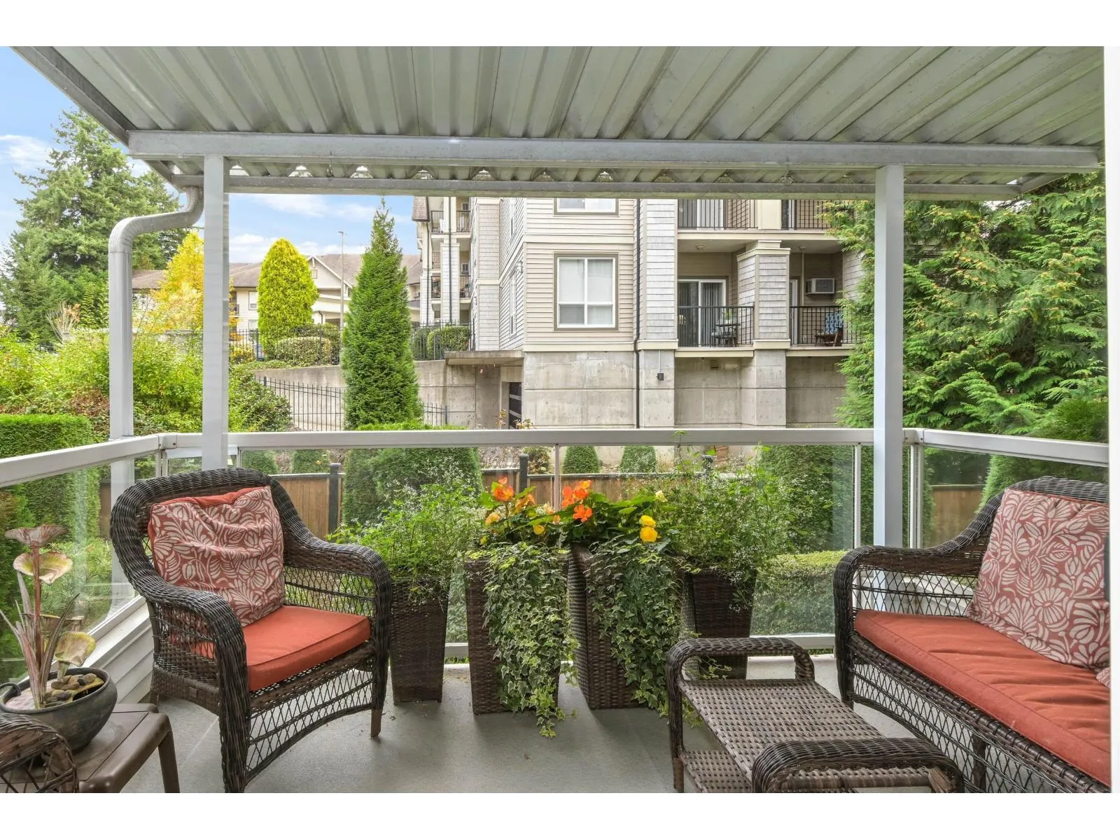 Welcome to this inviting & large 1-bedroom, 1-bath home in a highly desirable building, positioned in a convenient location near amenities. Recently refreshed with stylish kitchen cupboards, abundant extra cabinetry, quartz countertops, motorized designer blackout blinds, 5 recently purchased appliances, deluxe laminate flooring in kitchen & bathroom and fresh paint in neutral tones. Relax by the warm gas fireplace, utilize the large in-suite laundry room, and step out onto the covered east-facing deck for tranquil mornings, shielded from bustling roads. Situated on the first floor (elevated above ground level) in a meticulously managed and well-maintained adult community tailored for those 55 and older. Secure underground parking. Pets welcome: up to 2 dogs or 2 cats, each under 25 lbs. (id:27476)