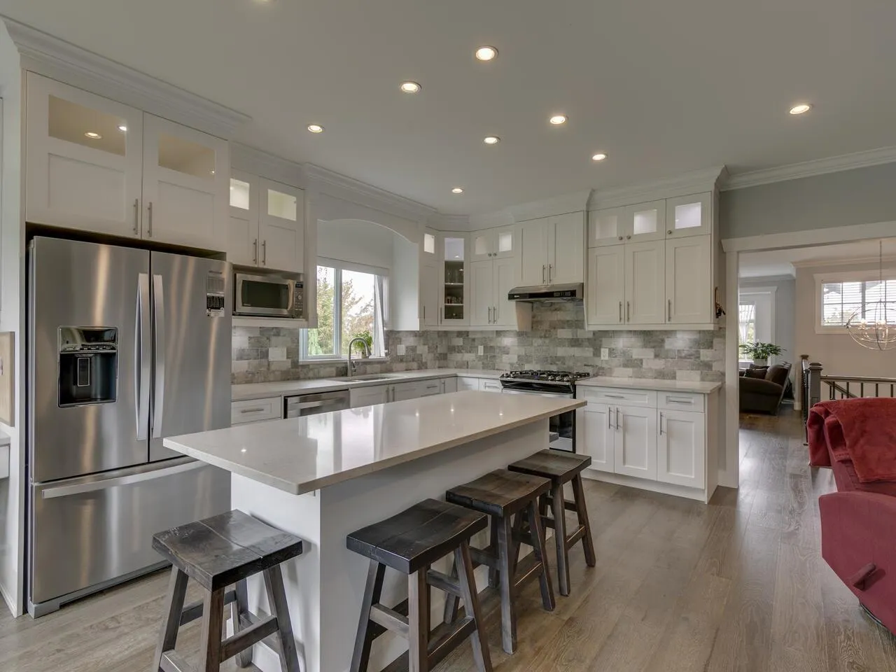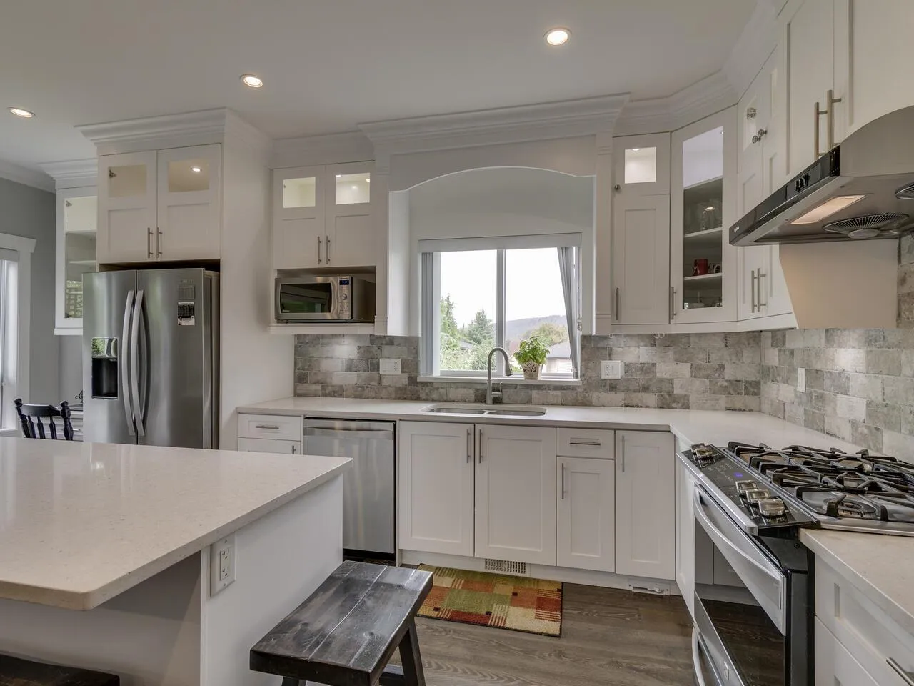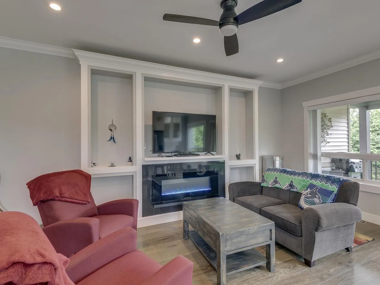 Spacious family home with mortgage helper or in-law suite on a quiet cul-de-sac. Main floor offers 9' ceilings, separate living and dining rooms with gas fireplace and built-in hutch. Bright kitchen with upper cabinet lighting, gas range hookup, and adjoining family room with electric fireplace. Covered deck off the kitchen is perfect for year-round use. Three bedrooms up, including a generous primary suite with walk-in closet and 5-piece ensuite. Basement features a large rec room with wet bar, full bathroom, and extra bedroom for main floor use. Plus a self-contained 2-bedroom suite-ideal for extended family or rental income. Large, private lot with mature hedging, fire pit area, and backyard retreat. (id:27476)