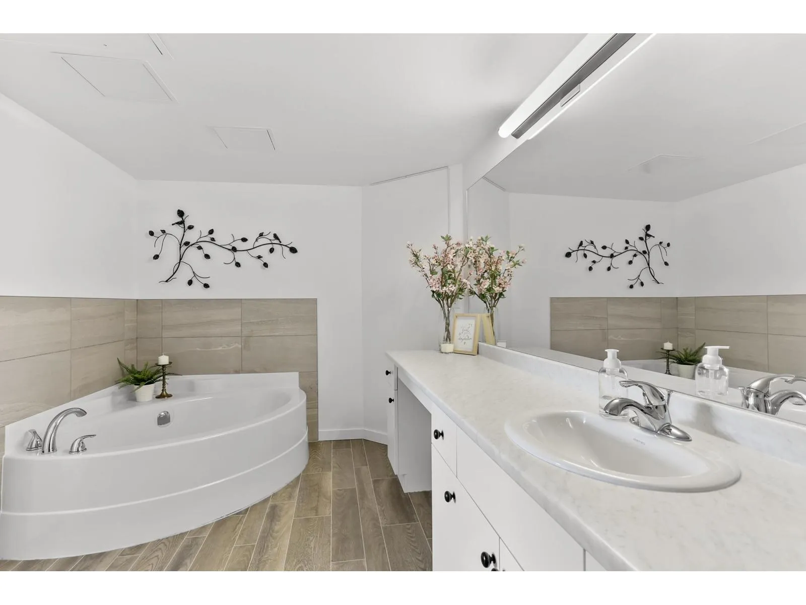 You're looking at your new home! This bright 2 bedrooom, 1.5 bathrooom condo offers 1,005 sq.ft. of spacious living. This home is essentially 1 year old - rebuilt down to the studs and todays standards. Brand new, with mountain views -just move in and enjoy! Features include a massive ensuite with luxurious soaker tub, modern kitchen, open living/dining, in-suite laundry and a 10x10 storage locker! Walk to cafés, shops & groceries, and quick access to West Coast Express for commuters. Pet-friendly - dogs welcome! Affordable, new and shiny, and ready for you! (id:27476)