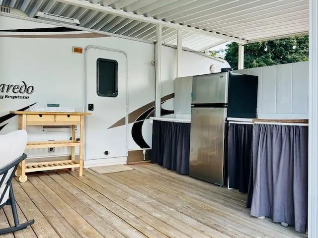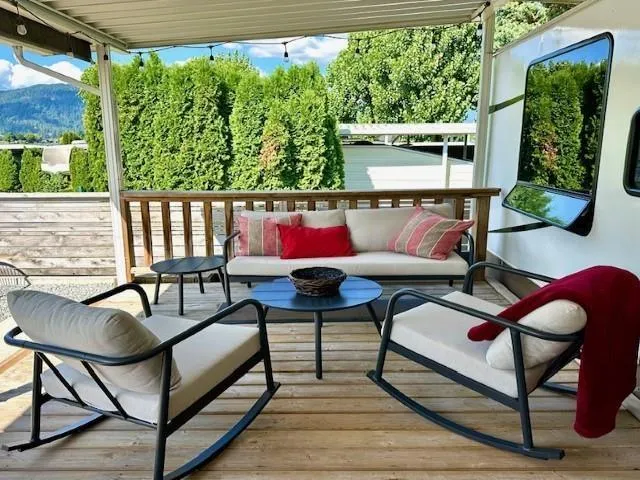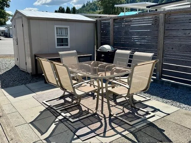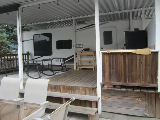 LOOKING FOR A VACATION PROPERTY? Very desirable SWAN'S POINT RESORT on Hatzic Lake. This 2006 Laredo trailer excellent condition comes with everything; maintained well, like new, covered with aluminum awning. Lovely bought vinyl built shed for all those lake toys and furniture. Outside kitchen area for convenience. Deck with great views and fully Newer fenced and newer retaining wall, makes this a very private location. Located on a corner lot which is across from public washrooms and clubhouse, playground... a great spot. Parking, great for 3 1/2 vehicles. This gated community is very well kept, lovely beaches, docks, clubhouse, tennis court and private boat launch. Just over an hour from Vancouver. Whole park has new septic and electrical upgrades. Must be seen, a 10 plus! (id:27476)