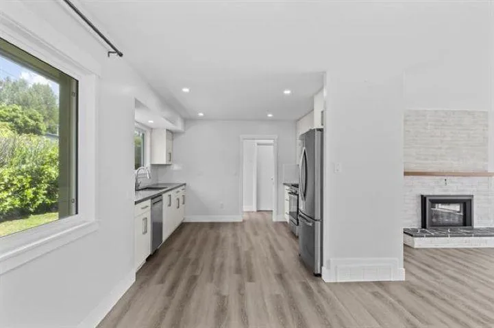 Lovely Heritage Park Rancher with basement! Main floor has been tastefully updated featuring lavish white flat panel kitchen cabinetry with quartz countertops, stainless steel appliances, undercabinet lighting and tiled backsplash! (Appliances still under warranty until Nov 2026) Flat finish ceiling, pot lights, durable vinyl plank flooring, new baseboards, doors and casings! Spacious dining room and living room with new gas fireplace, 3 bedrooms and new bathroom! Sweeping view from the southerly sundeck, big unfinished basement, lane access to the 1 car garage! Just 1/2 block to enjoy all the sights and sounds of Heritage Park, rare opportunity to acquire a view rancher in this location, call today! (id:27476)