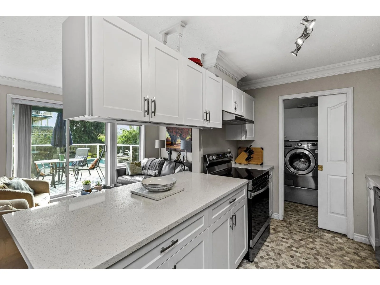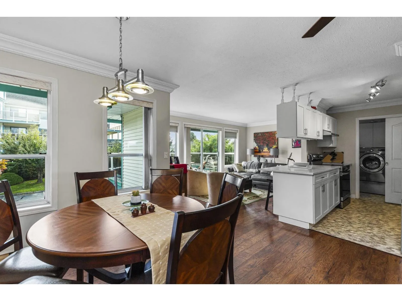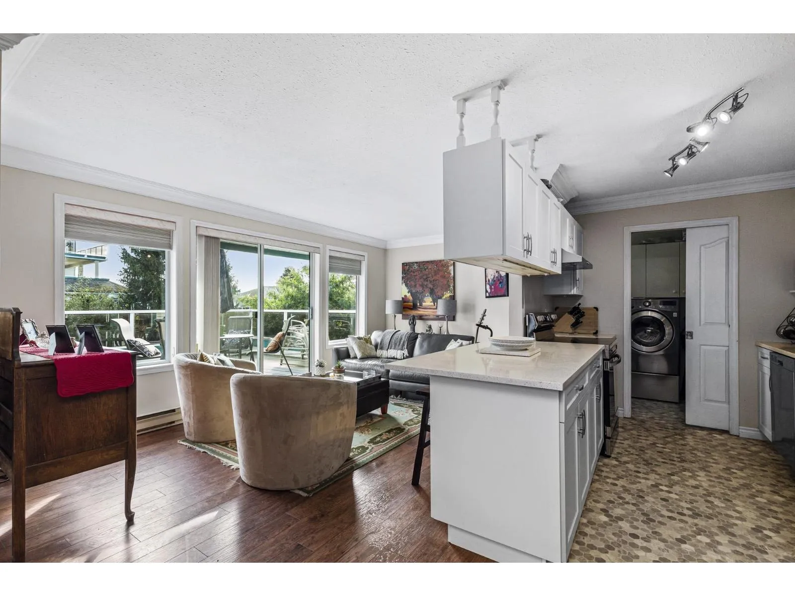 Beautiful upper level townhome in Edwards Estates. Fantastic floor plan 1.384 sqft with large family kitchen area leading out to huge east facing sundeck. Great entertaining area, also has west facing sundeck with beautiful garden view! Enclosed garage. 2 bedroom, 2 bath. Gated adult oriented community. Gas Fireplace in large living room. Has guest suite for your visitors and large gathering room and games room. Very comfortable living space. (id:27476)