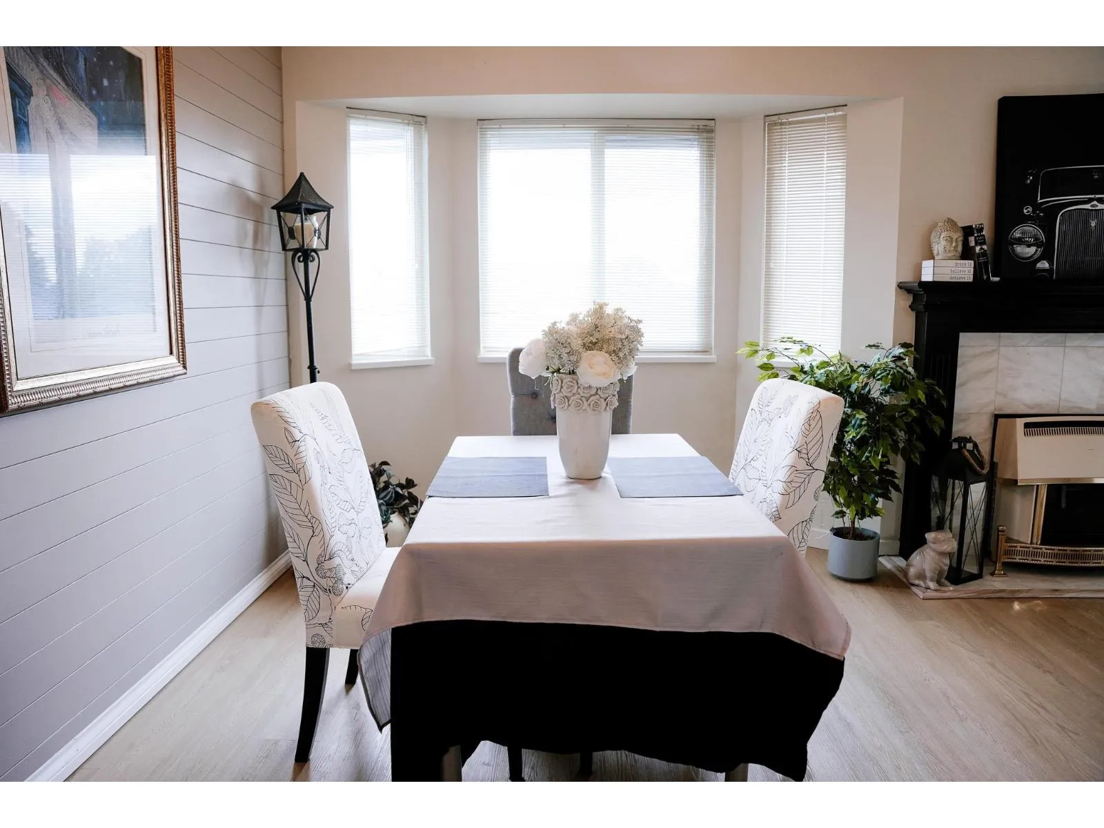 Completely renovated kitchen with new appliances! This lovely, bright end-unit townhouse features 3 bedrooms, 2 bathrooms, newer paint and flooring, and is tucked away in a quiet cul-de-sac in central Mission. Schools, transit, and the rec centre are nearby, with shopping just minutes away. Enjoy a spacious living/dining area with a cozy gas fireplace, bay-windowed primary bedroom, and covered balcony with Mount Baker views. Downstairs offers 2 bedrooms, a 3-piece bath, large laundry room, and single garage plus extra parking. Woodrose Estates is pet-friendly with no age or rental restrictions. (id:27476)