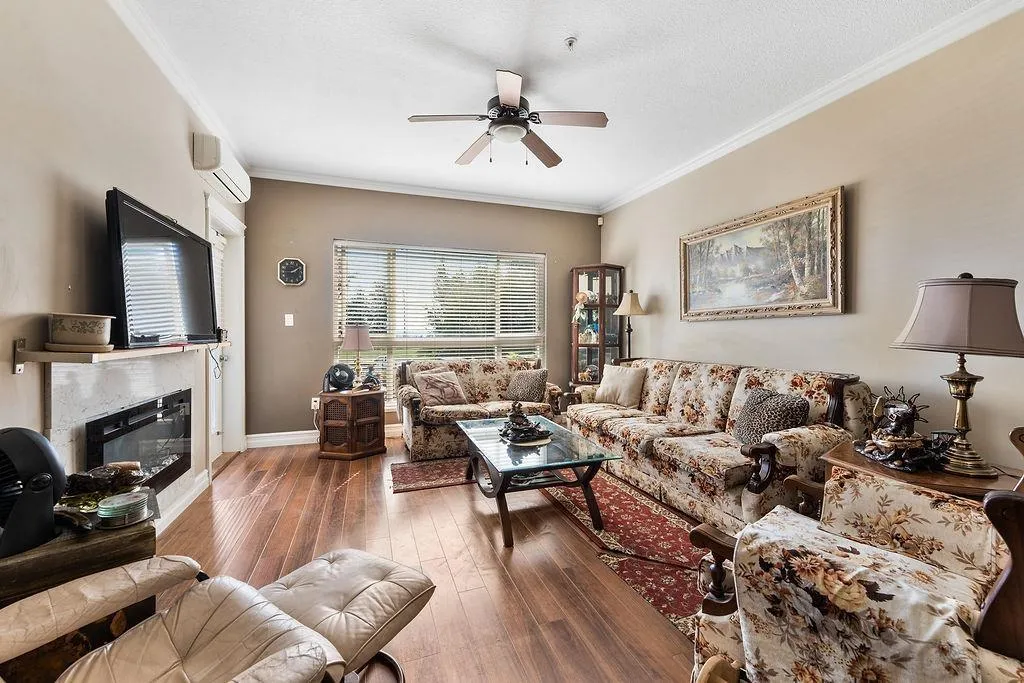 2 bedroom, 2 bathroom ground-floor home in the highly desirable gated Mews complex. This bright and spacious unit offers stunning southern views of Mt. Baker and the surrounding mountains, with beautifully manicured gardens right outside your private patio. Features include 9 ft. ceilings, granite kitchen counters, walk-in closets, air conditioning, and secure underground parking. Perfectly positioned at the end of a quiet cul-de-sac, it overlooks Mission's iconic Heritage Park with walking trails and river outlooks, while still being just minutes to downtown, schools, amenities, and the West Coast Express. Fantastic building with fitness centre, amenity room, parking & storage. (id:27476)