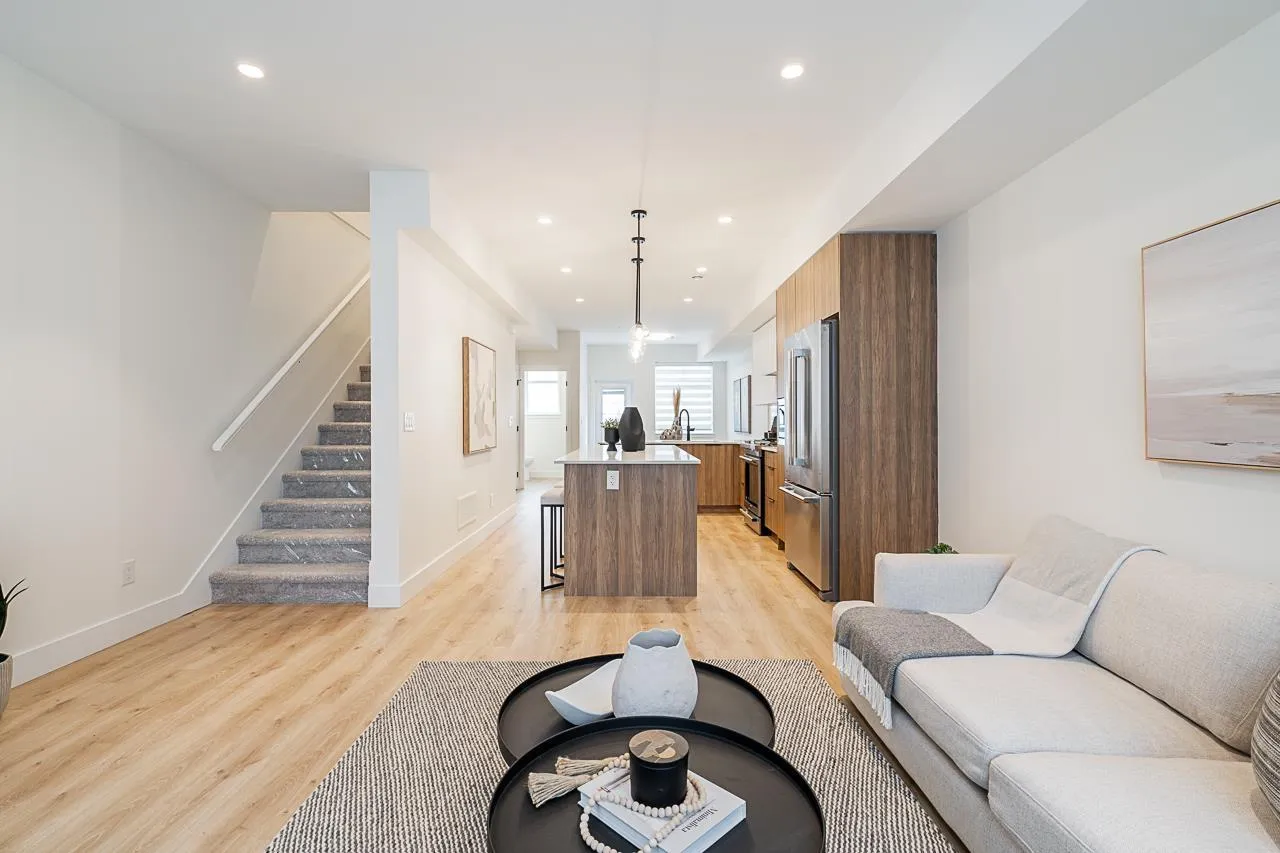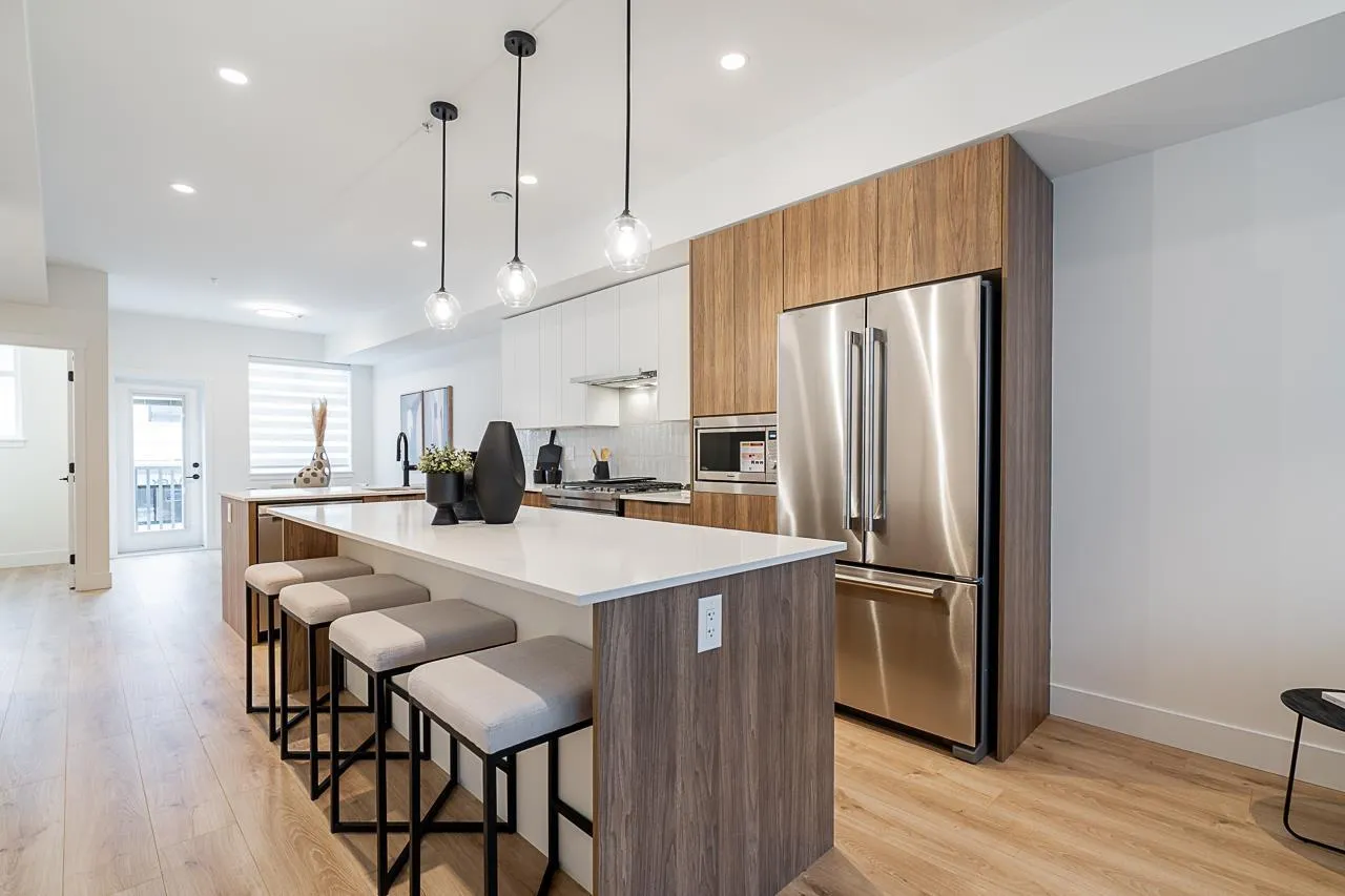 Step into refined living with this exquisite townhome featuring 3 bedrooms, 2.5 bathrooms, meticulously crafted for modern comfort. The kitchen boasts lavish countertops, expansive islands, and sleek modern cabinets. Enjoy seamless flow between the dining and living areas, perfect for family gatherings. With abundant natural light, charming wooden laminate flooring, and lofty ceilings, the main level feels spacious and inviting. Retreat to the generously sized bedrooms for serene relaxation. Nestled in a vibrant neighborhood with easy access to amenities, schools, and parks. Don't miss out on this exceptional opportunity! Schedule your viewing today. Open House Sat (Nov 8) 1-3 PM! @ Show Home #31 - 8430 Nottman Street, Mission, BC. (id:27476)