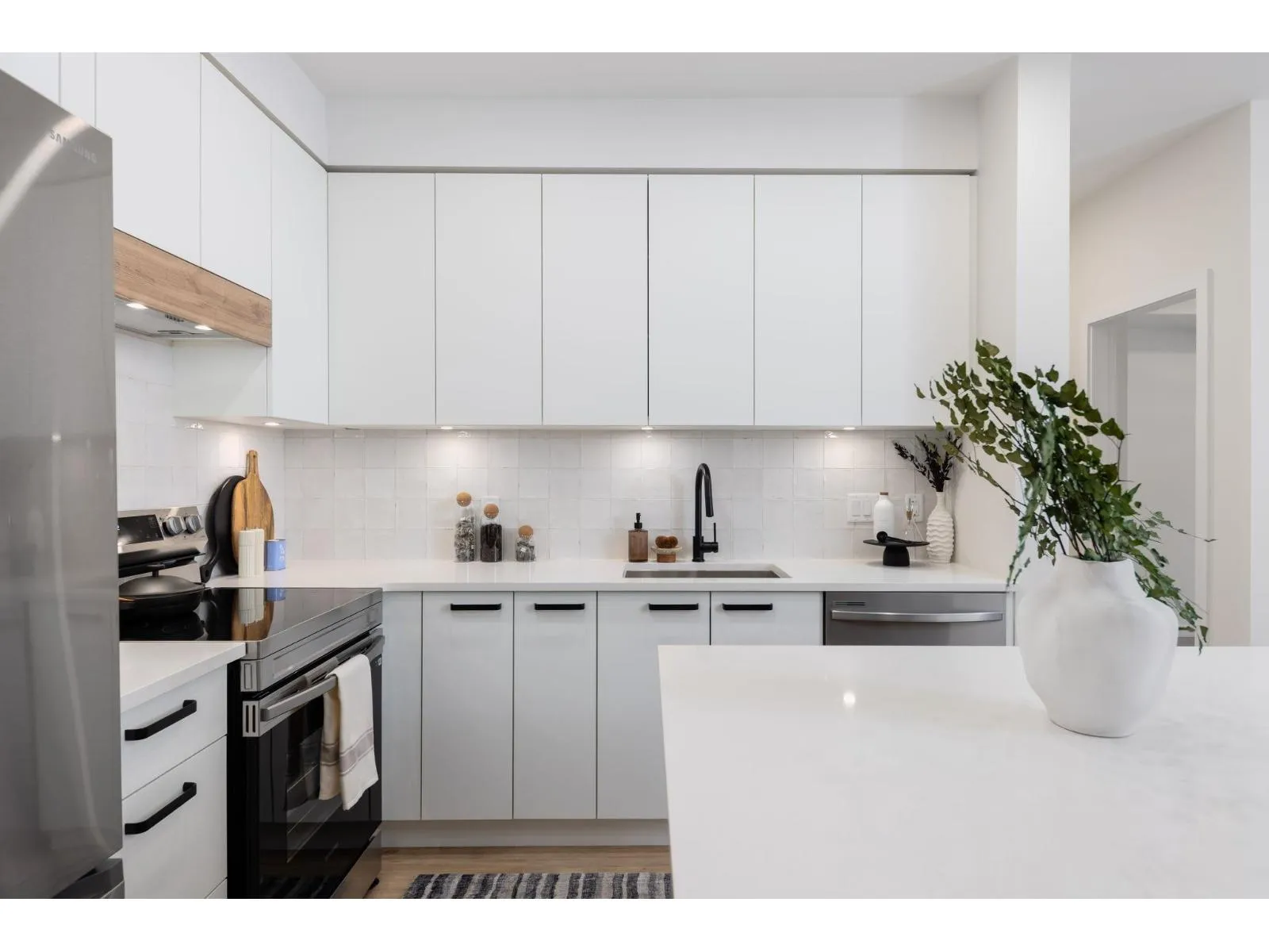South-facing, top-floor 2 bed, 2 bath home at Vista! This bright and modern 857 sq. ft. unit offers an open-concept layout with high ceilings, large windows, and a private balcony. The sleek kitchen features quartz countertops and stainless steel appliances. Primary bedroom includes a walk-through closet and ensuite. Enjoy in-suite laundry, secure parking, and a great location close to parks, trails, schools, and shopping. Experience contemporary living in a growing community! At Vista, your home extends beyond your front door with exceptional amenities including lounge & games area, fully equipped gym, kids zone, rooftop deck and more. Located near all levels of school, dining, shopping, and more. AC, Storage locker and 2 Parking. (id:27476)