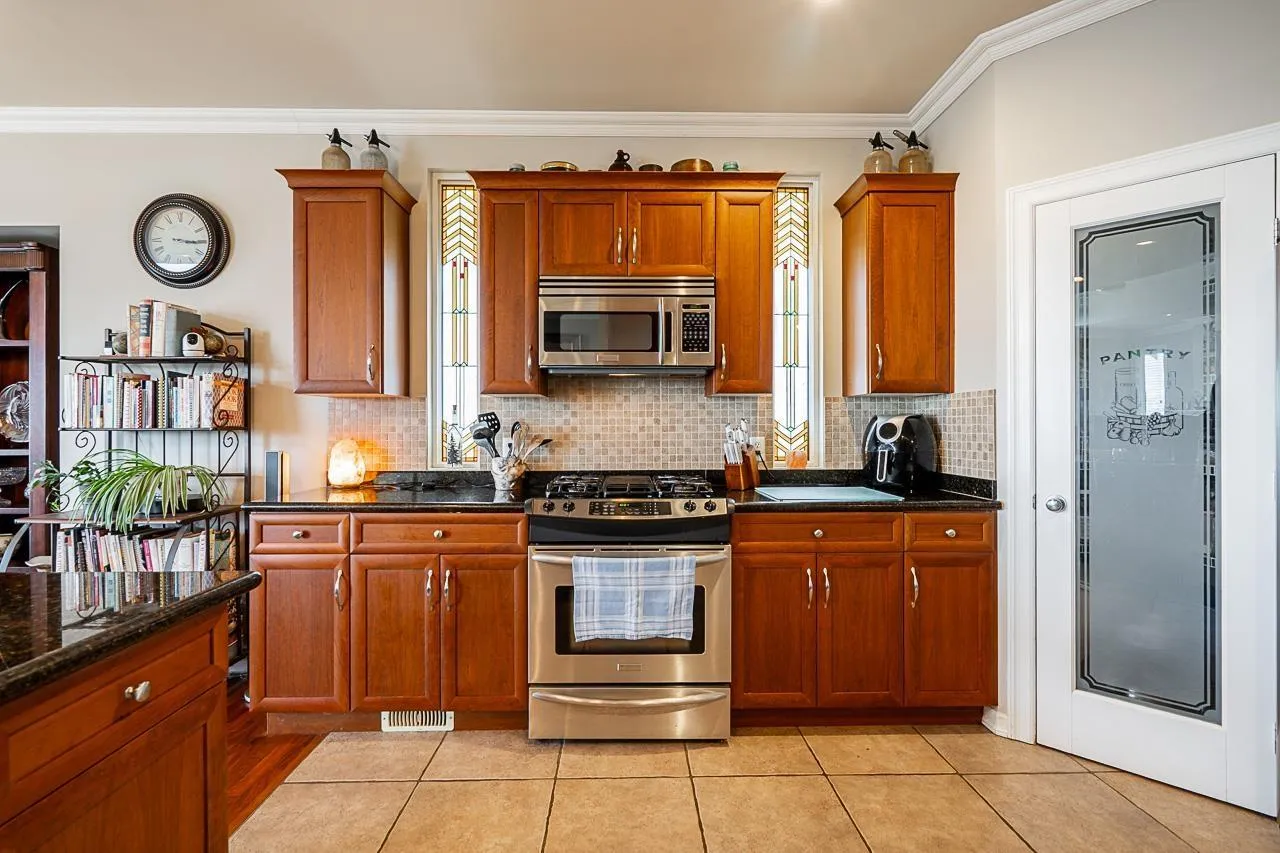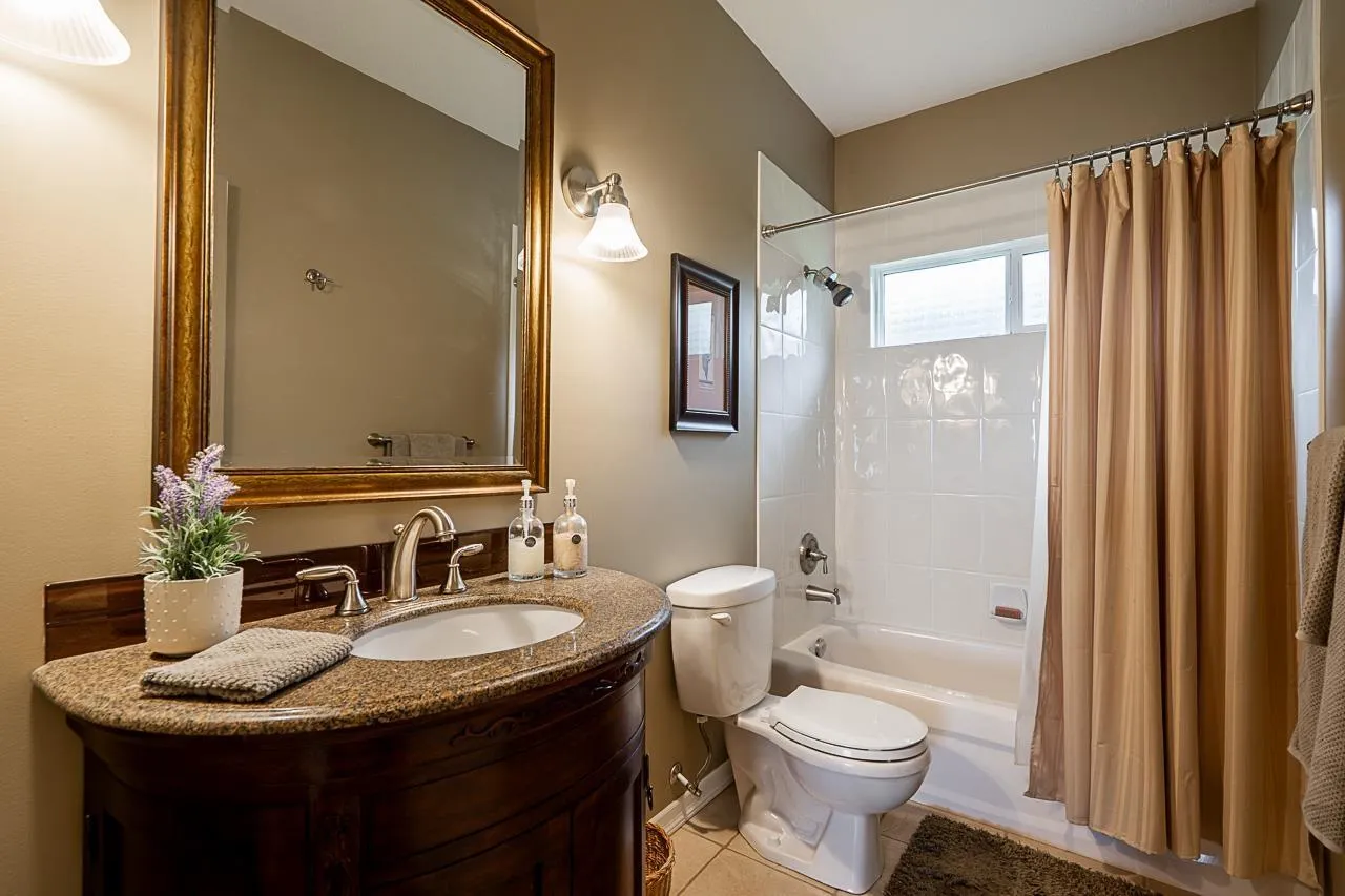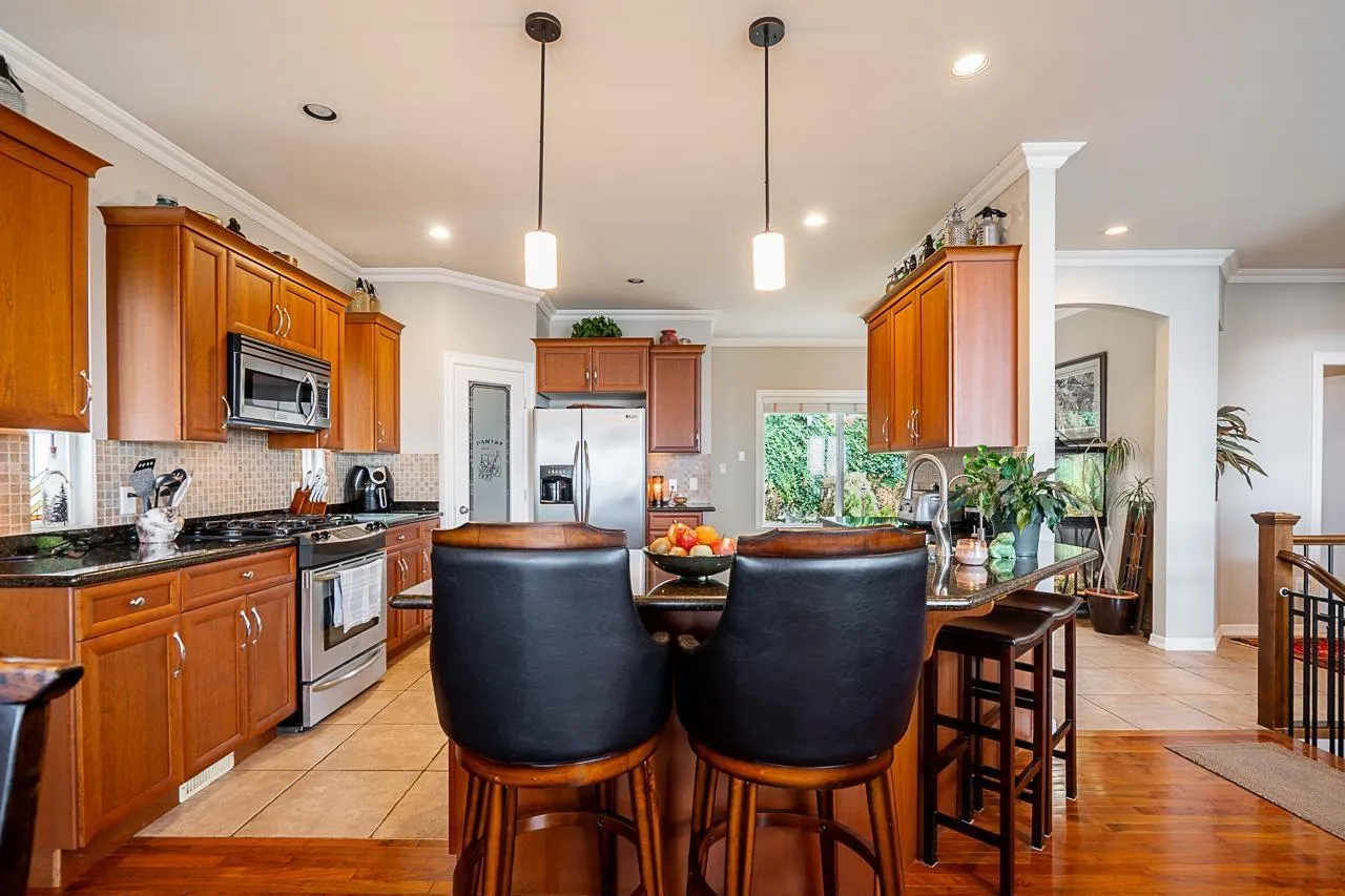 This 4-bed plus den, 3-bath home radiates island vibes, perched high above Grewal Cres. with sweeping views that make every day feel like a retreat. The open-concept layout, vaulted ceilings, and sun-filled spaces create a breezy, treehouse-like atmosphere. The main level features hardwood and heated tile in the kitchen, while the dining area opens to a large deck with 180° panoramic views, perfect for relaxing and watching the world go by. Upstairs, you'll find two bedrooms, including a hotel-inspired primary with a spa-like ensuite and heated floors. Downstairs offers a versatile den that could double as an extra bedroom, plus a bright one-bed self-contained suite. The tropical charm continues outdoors with lush landscaping and an upper deck designed for soaking in more of those views!!! (id:27476)