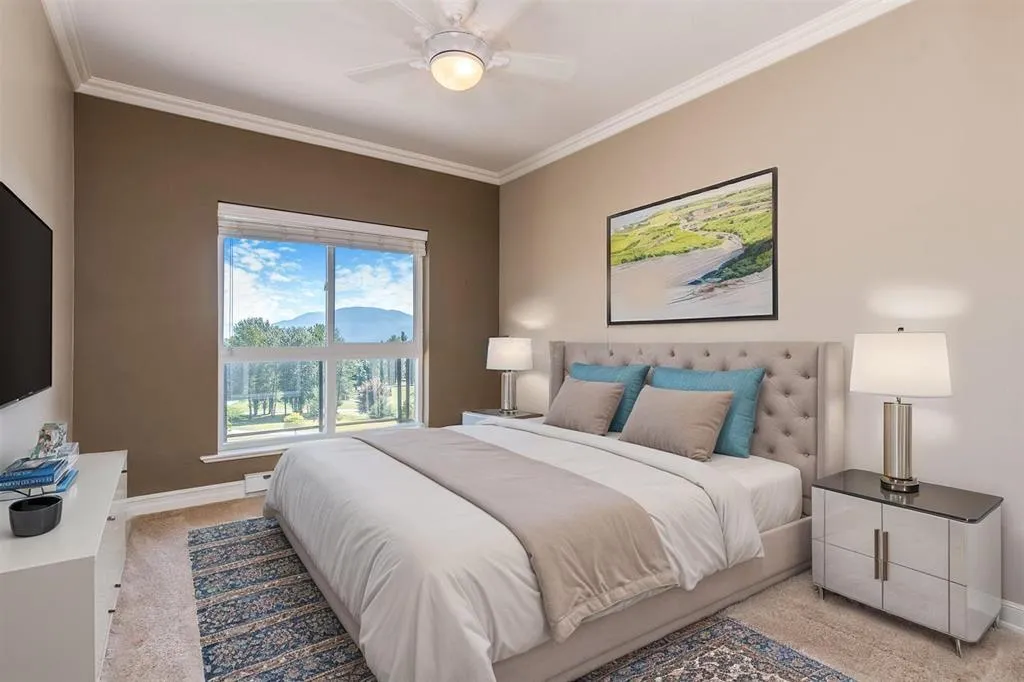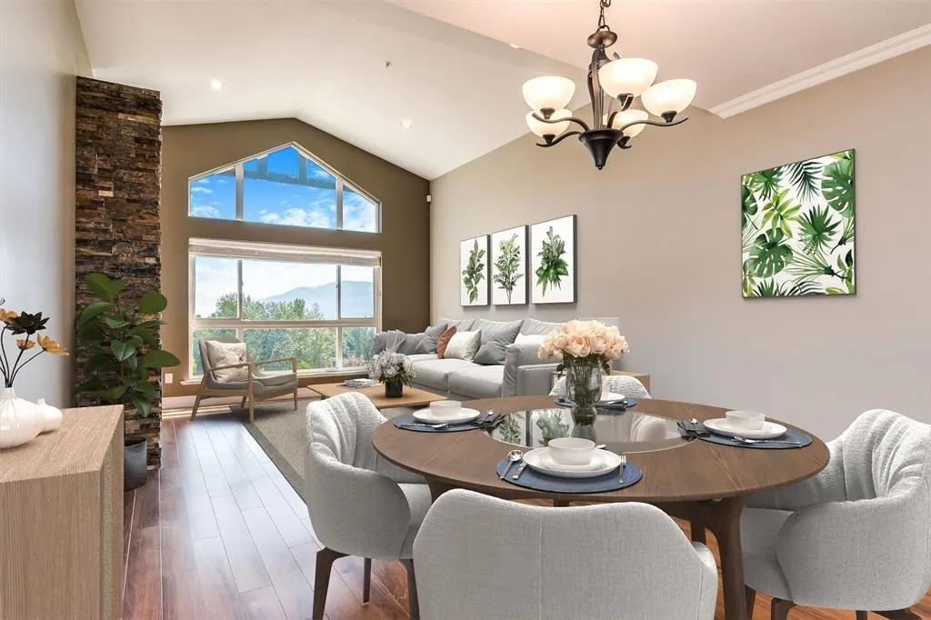 Welcome to luxury living in this gated penthouse suite-The Mews-in the heart of mission! Featuring vaulted ceilings and picture frame windows, this home is filled with natural light and offers a bright, spacious layout with ceiling stone fireplace. Gourmet kitchen boasts granite countertops, s/s appliances, and elegant dark maple cabinetry. The king size primary bedroom includes a walk in closet and spa like ensuite. A generous second bedroom, 2 parking spaces, storage and access to an exercise room and games lounge.THE VIEW!! Enjoy unobstructed breathtaking views of Mt. Baker, Fraser River, Heritage flats, Grotto- over 15 acres of pristine landscape with hiking, biking, trails. Immaculately maintained and truly one of a kind! A pleasure to show! OPEN HOUSE SAT NOVEMBER 15, 12PM-1:30PM (id:27476)