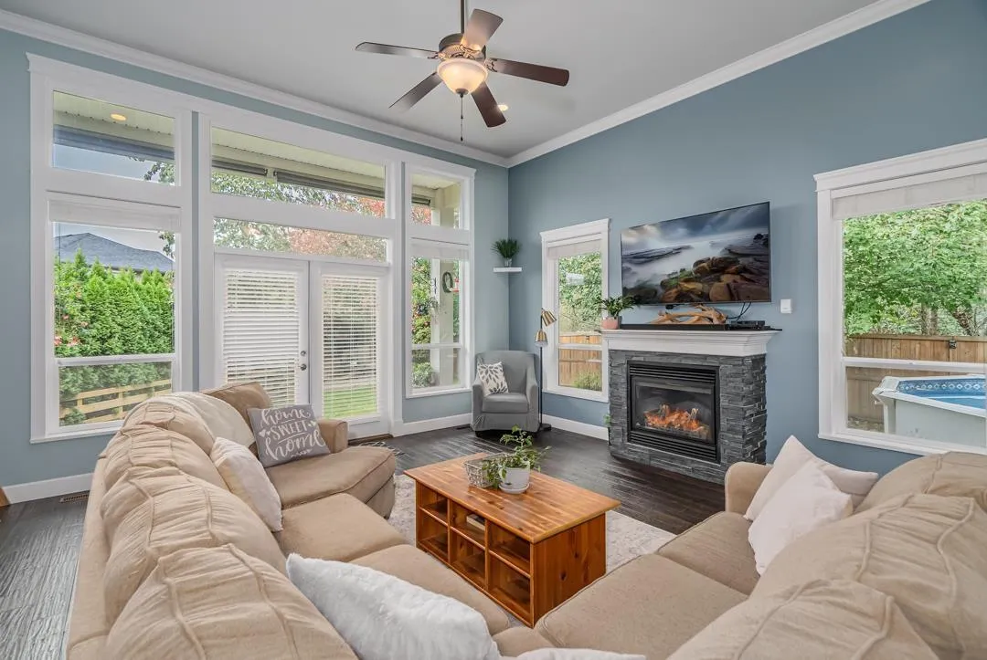 STUNNING TWO-STOREY HOME on a private, fully fenced 12,700 sq ft lot (0.29 acre). Features a bright open-concept main floor with soaring 13ft ceilings, living room with gas fireplace dining area is off to the side, a large white shaker kitchen, full bathroom, laundry room with a sink, main-level bedroom or den. Upstairs offers four spacious bedrooms and two full baths. The flat backyard is perfect for entertaining, complete with an above ground pool. Ample parking, including RV space. Located near schools and recreational facilities in a prime neighbourhood. A perfect blend of comfort, space, and convenience! You won't be disappointed, this home has been well maintained. (id:27476)