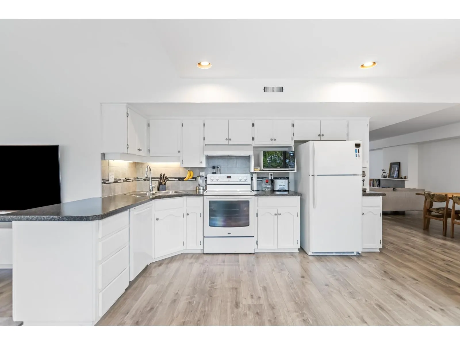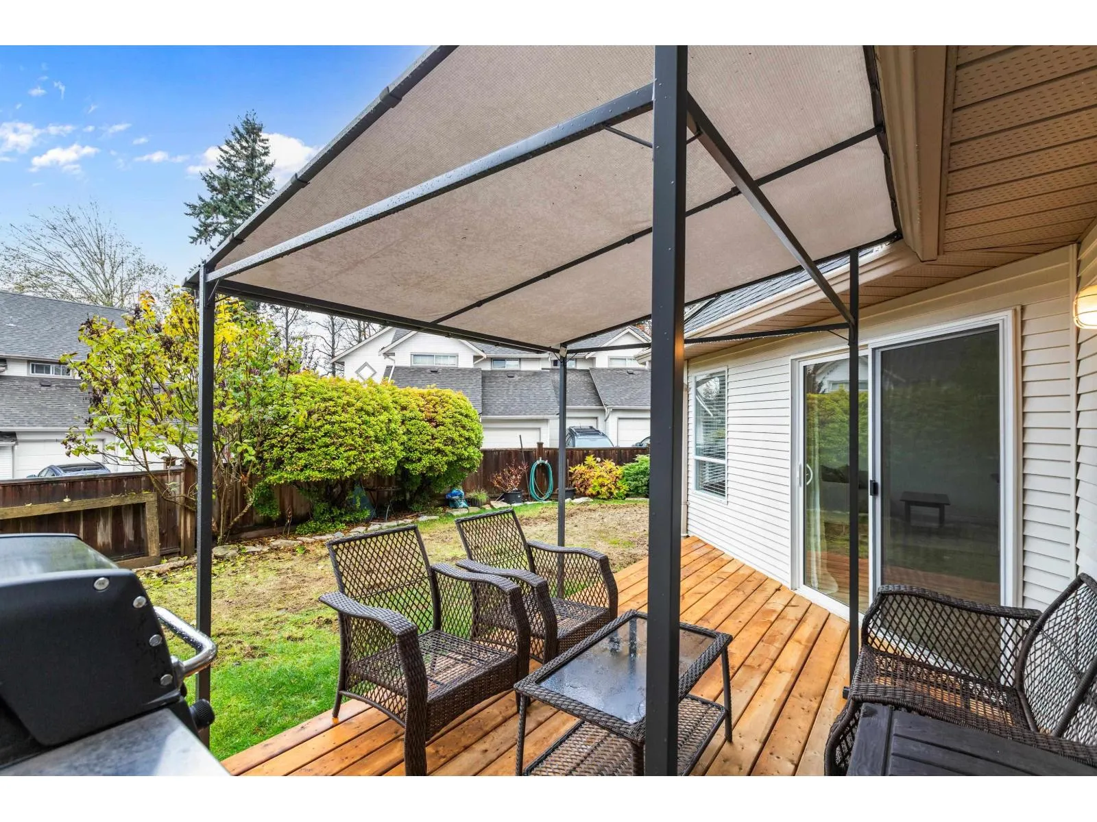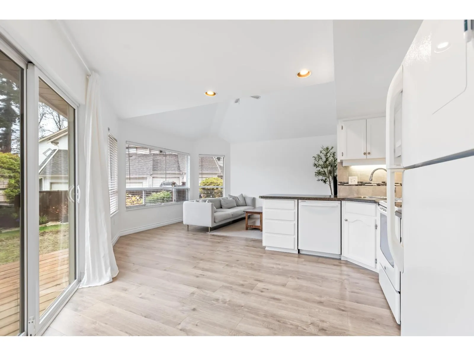 END UNIT! This bright and spacious 3-bedroom, 3-bath townhome offers 1,624 sq ft in one of Mission's most sought-after complexes. The main floor features a large living/dining area with a cozy gas fireplace, fresh paint, and updated flooring throughout. The kitchen opens to a vaulted family room that fills with natural light. Step out to your private, fully fenced backyard with a large deck -perfect for entertaining or relaxing. Upstairs includes 3 generous bedrooms, laundry, and a 3-piece ensuite off the primary. Bonus: a versatile flex room off the garage ideal for a gym, office, or media room. Parking for 1 in the single garage plus an apron that fits 1-2 vehicles (size-dependent). Walking distance to all levels of school, and minutes to all amenities. Don't miss out on this one! (id:27476)