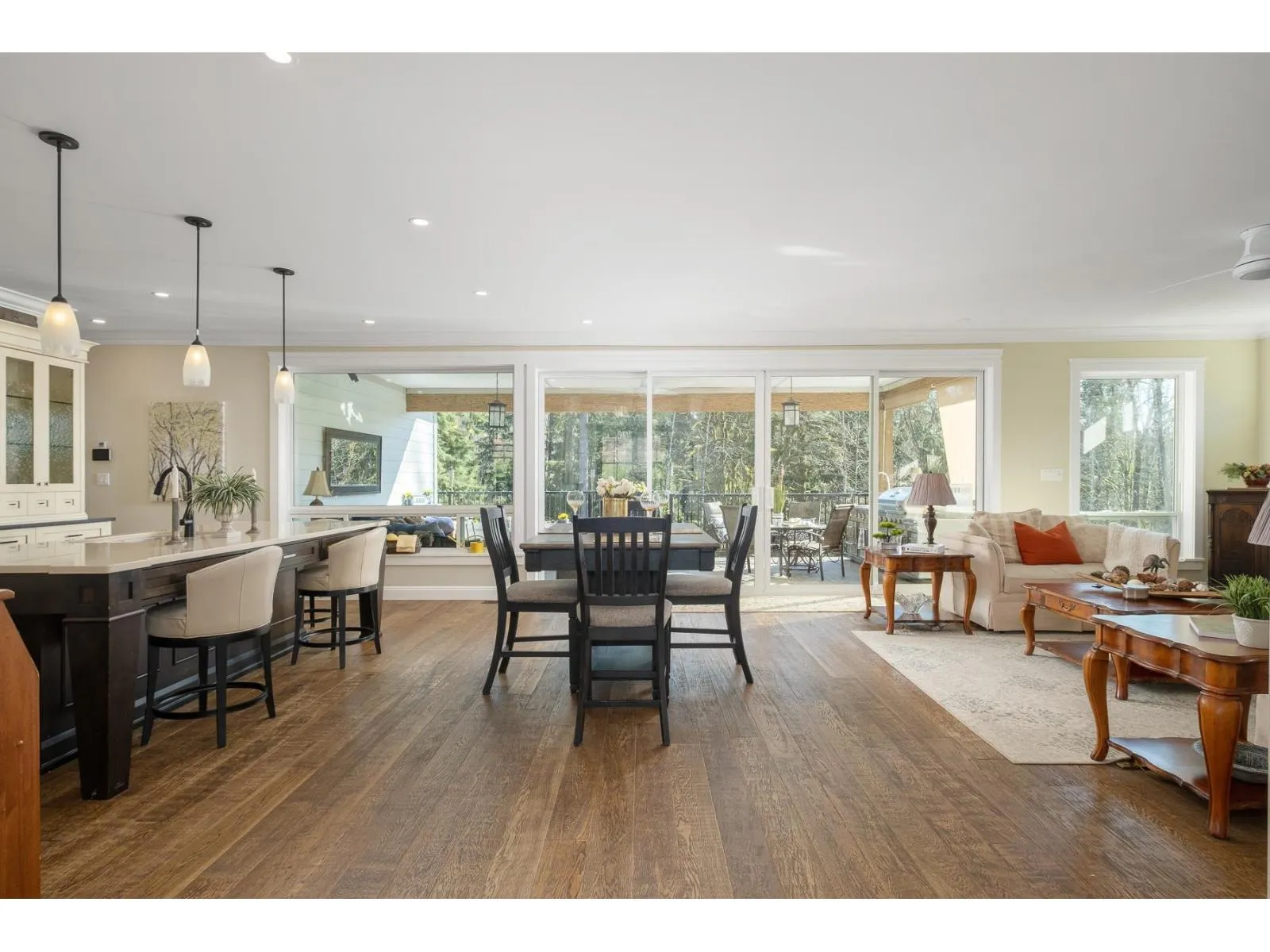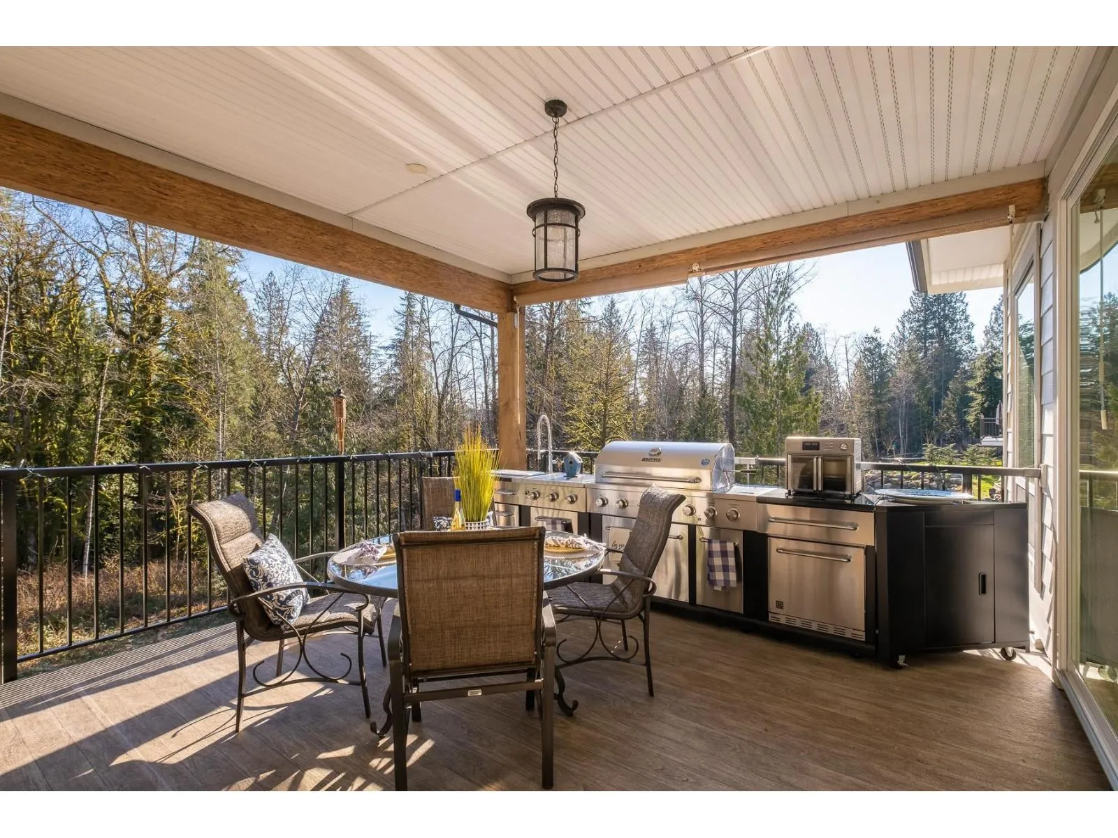 PRIVATE. CUSTOM. MULTI-GEN. Glacier Estates presents a rancher with full walkout basement on a landscaped and fully private 1-acre lot designed for families who value space, comfort, and effortless indoor-outdoor living. Offering 4 bedrooms, 5 bathrooms, 2 kitchens, 4,946 sq.ft. plus a 918 sq.ft. heated 3-bay garage. The chef's kitchen features commercial-grade appliances, a full butler's pantry, and opens to a 16x14 covered deck with a complete outdoor kitchen, creating the perfect setting for year-round hosting. The primary suite is on the main with a spa-inspired ensuite and a massive W.I.C. Outdoor upgrades include a winding water-feature stream, irrigated garden beds, mature landscaping, and a separate suite driveway leading to the bright 1-bed suite with its own entrance, laundry, and deck ideal for extended family or a business. Ample parking for RVs and vehicles. Gated, backing greenbelt, trail to lake, and quick connections to Maple Ridge and Mission. WATCH THE PREVIEW VIDEO OF THE AMAZING LOCATION. (id:27476)