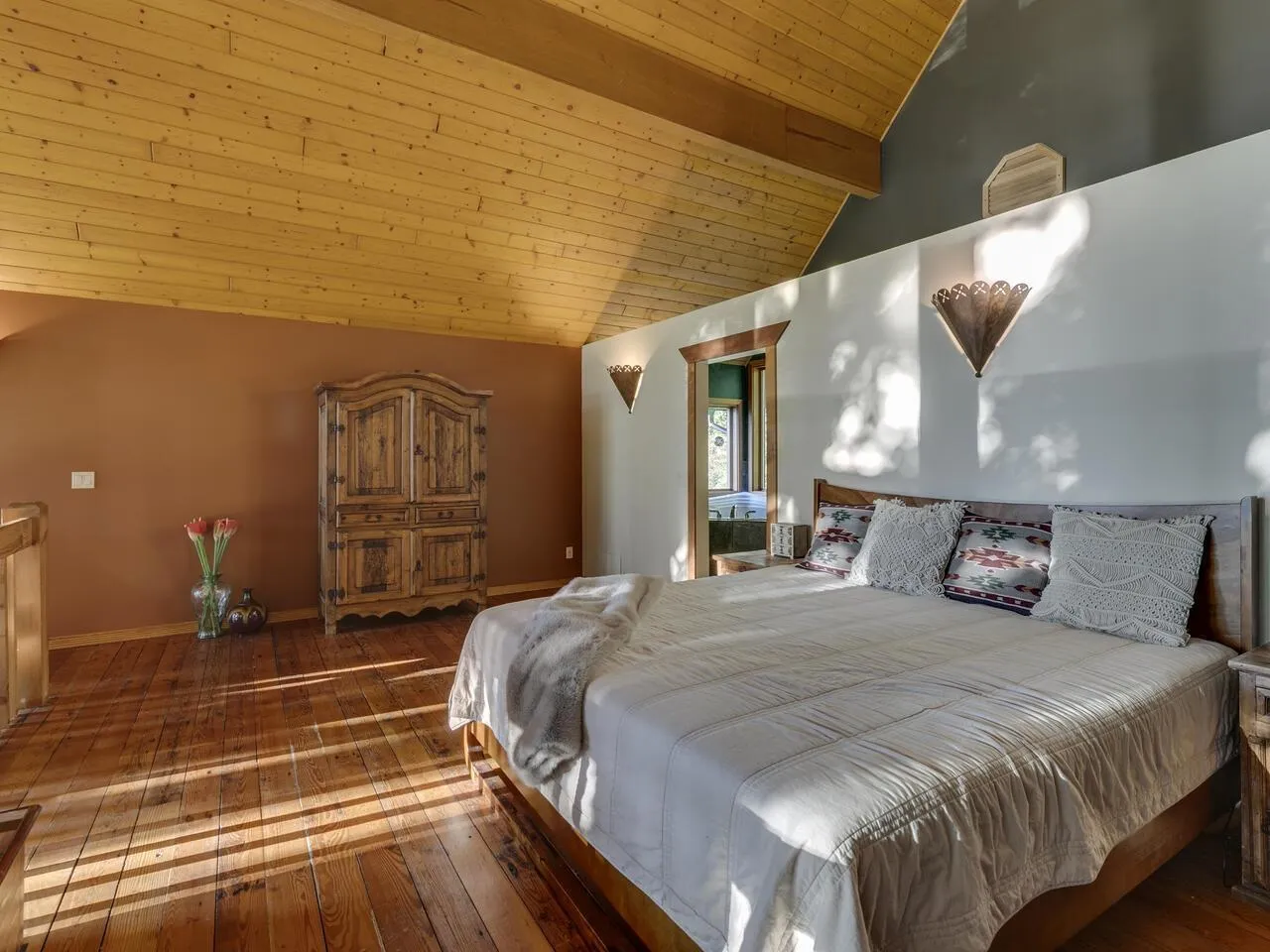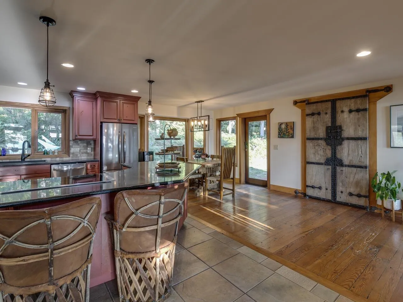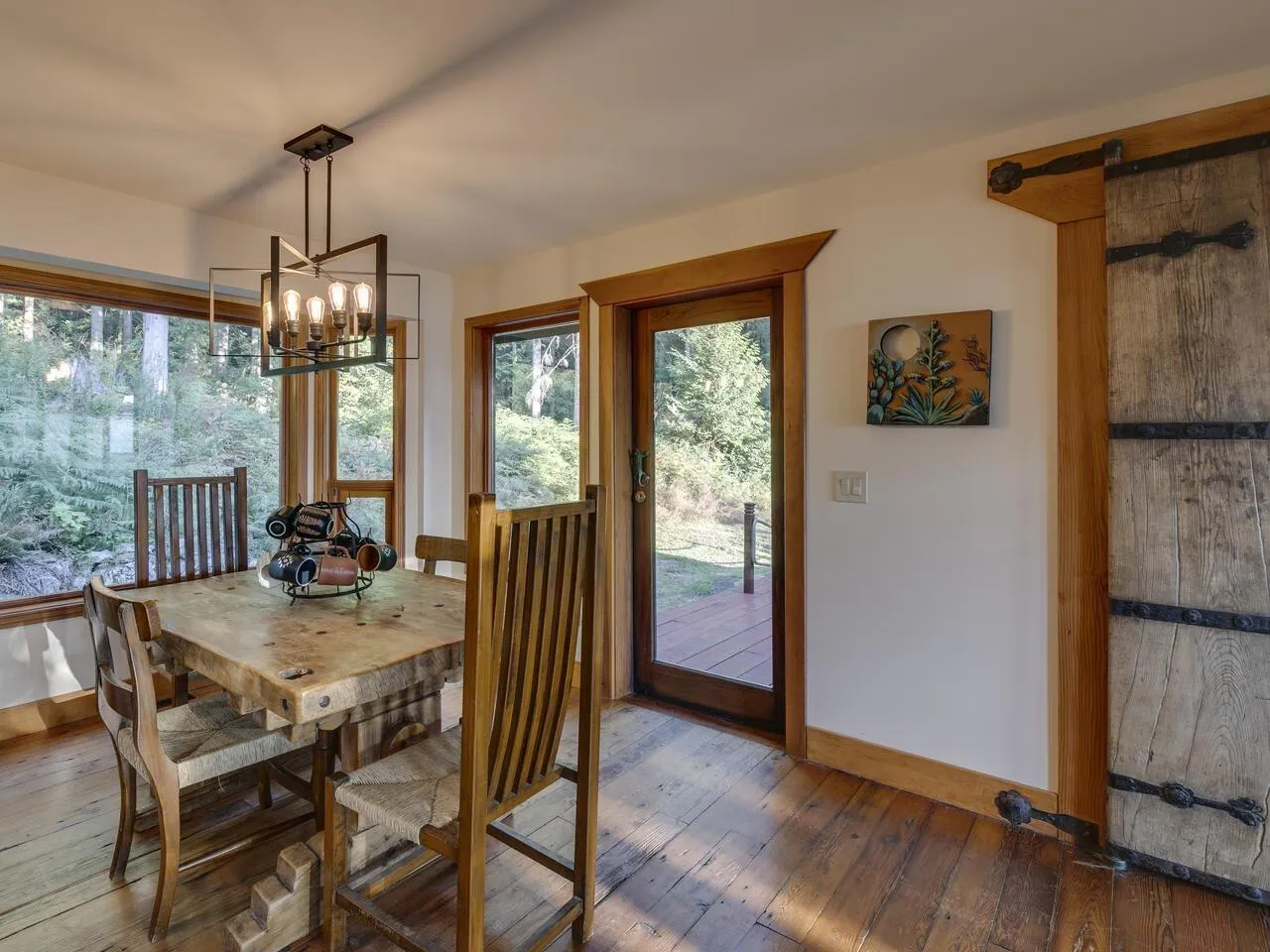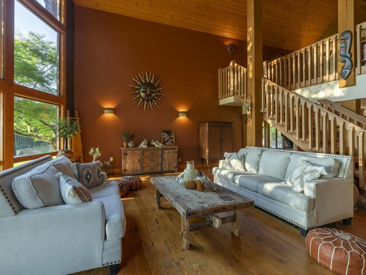 Private acreage with VIEWS! This 4-bedroom, 2.5-bathroom home offers a perfect blend of rustic charm and modern comfort, featuring a dramatic A-frame design and floor-to-ceiling windows that fill the living spaces with natural light and frame serene forest views. Warm wood ceilings, exposed beams and hardwood floors create an inviting atmosphere, complemented by both a grand great room and a cozy family room with a wood stove. The kitchen blends farmhouse character with modern updates, featuring custom cabinetry, stone backsplash and S/S appliances, while the bathrooms showcase timeless tile and stylish finishes. Outside, a large wrap-around deck is ideal for peaceful mornings or sunsets, and the property includes a 25x39 shop, adding incredible functionality to this stunning retreat! (id:27476)