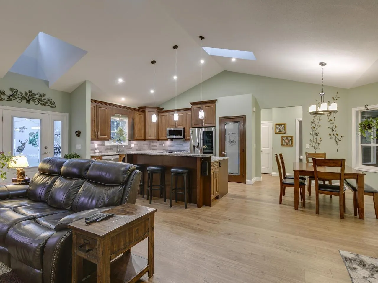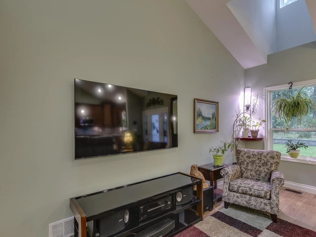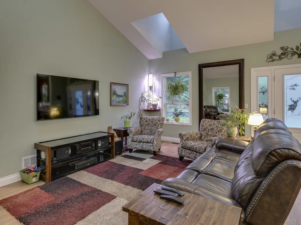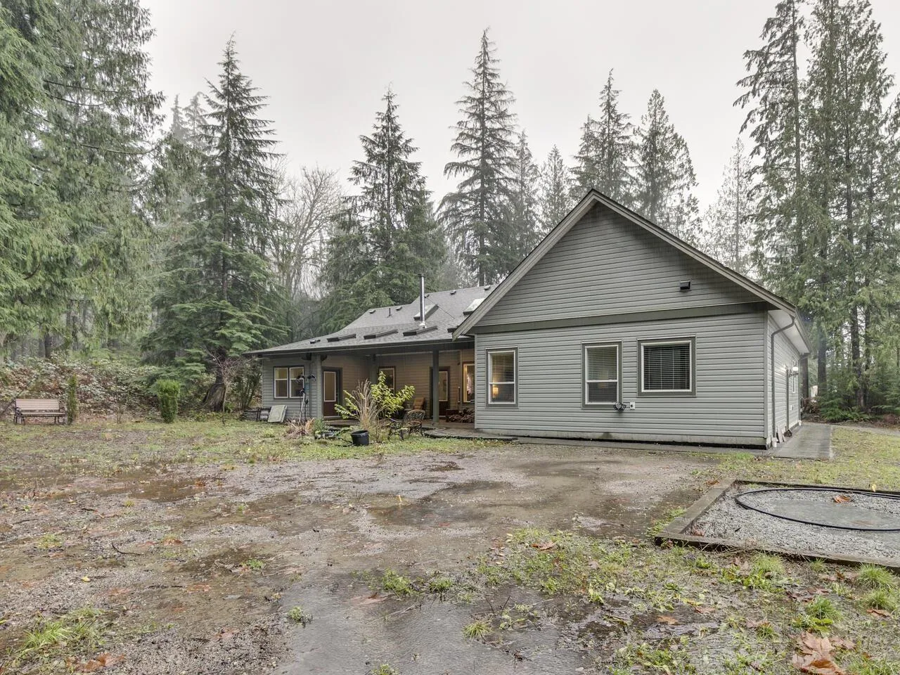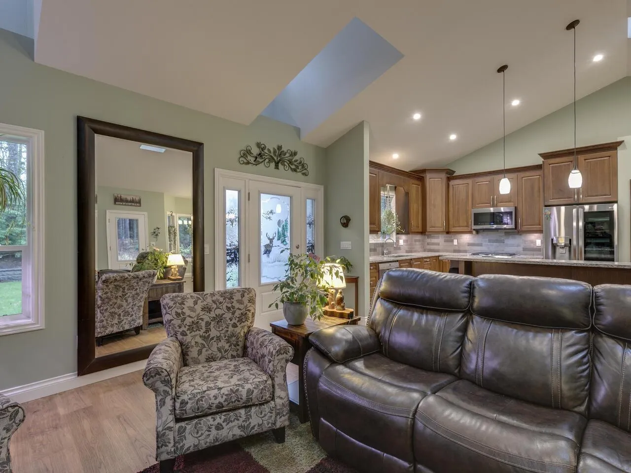 Welcome to this stunning 1600+ sq ft rancher built in 2019, situated on 4.99 private acres surrounded by mature trees and nature. This thoughtfully designed home features 3 bedrooms and 2.5 bathrooms, vaulted ceilings, skylights, and an inviting open-concept layout filled with an abundance of natural light from oversized windows throughout. Cozy up by the wood-burning fireplace or enjoy seamless indoor-outdoor living with a covered back deck, ideal for year-round enjoyment. The spacious double garage plus a separate shop provide excellent storage and workspace options. Located near Cascade Falls, with hiking trails right outside your door, this property offers the perfect blend of privacy, recreation, and modern comfort. A rare opportunity to own a peaceful acreage! (id:27476)