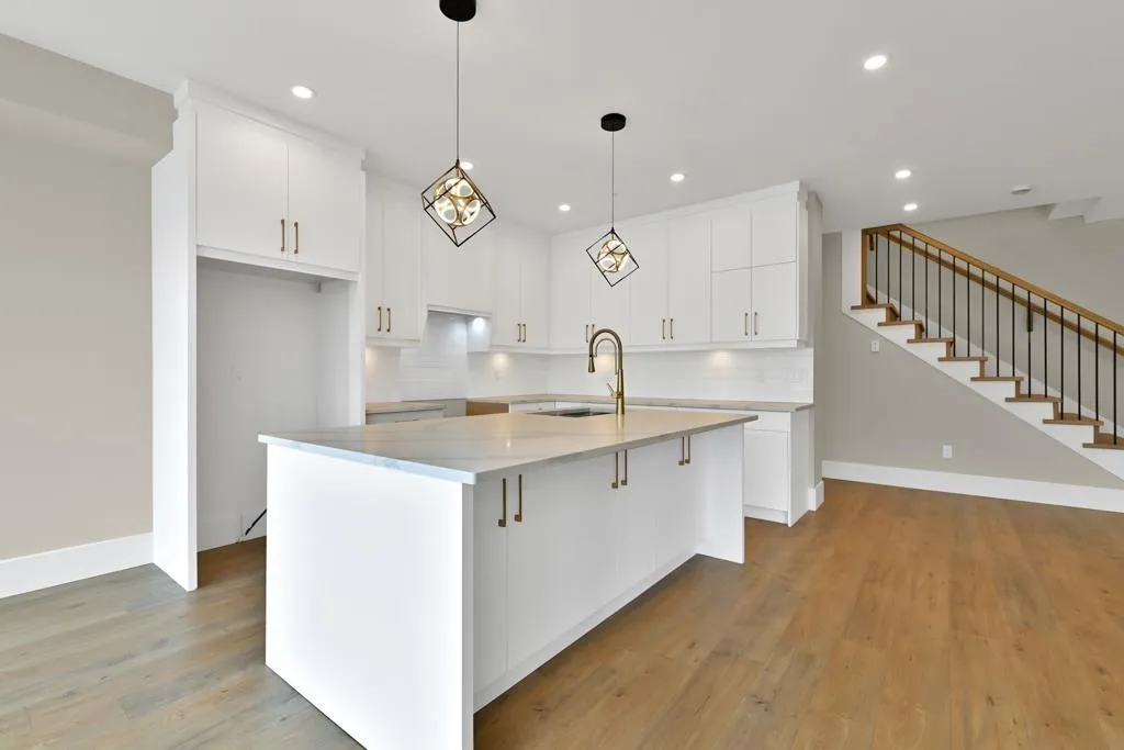 Beautiful brand new modern 1/2 duplex!!! This Gorgeous 6 bed and 4 bath with an open concept floor plan features family area with gas fireplace, dine-in and kitchen with modern touch along with an island and plenty of cabinets. The Master Bedroom with an ensuite that includes walk-in closet. Double car garage and lots of parking on driveway and front lane. No restrictions or bylaws. Close to all amenities. 2 BEDROOM MORTGAGE HELPER!!! (id:27476)