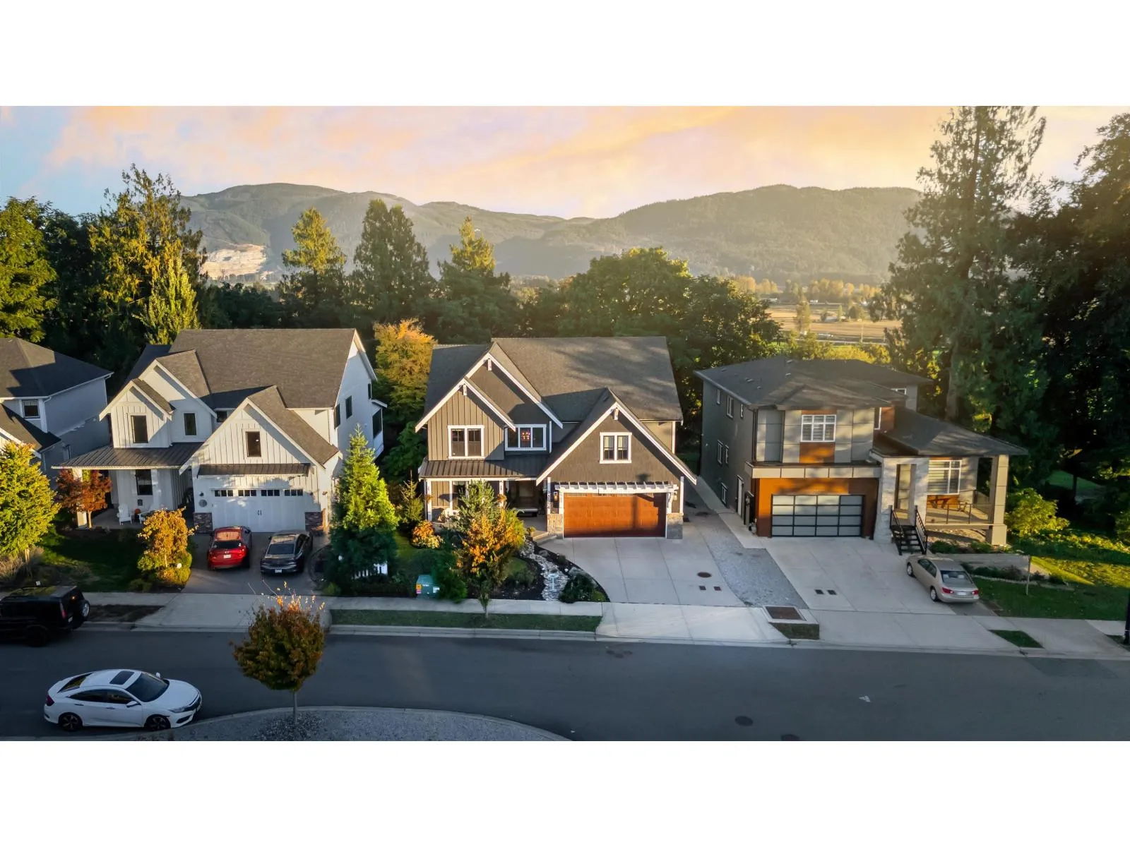 An extraordinary Copper Creek custom home on the coveted Hatzic Bench, offering breathtaking valley views and refined craftsmanship. Built in 2017 on a serene dead-end street, this 4,286 SF masterpiece on a 7,200 SF lot blends elegance with function. The soaring two-storey great room flows seamlessly into a chef-inspired kitchen with massive center island, premium finishes, and French doors to a covered sundeck. Main-floor bedroom with ensuite, plus private dining with butler's pantry. Upstairs, three generous bedrooms include a luxurious primary suite with vaulted ceiling, fireplace, private deck, and spa-like 5-piece ensuite. Fully finished walk-out basement completes 6 bedrooms and 5 bathrooms with family room, gym, and den. Walking distance to Hatzic schools. (id:27476)