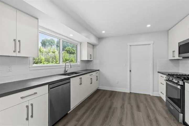 Lovely Heritage Park Rancher with basement! Main floor has been tastefully updated featuring lavish white flat panel kitchen cabinetry with quartz countertops, stainless steel appliances, undercabinet lighting and tiled backsplash! (Appliances still under warranty until Nov 2026) Flat finish ceiling, pot lights, durable vinyl plank flooring, new baseboards, doors and casings! Spacious dining room and living room with new gas fireplace, 3 bedrooms and new bathroom! Sweeping view from the southerly sundeck, big unfinished basement, lane access to the 1 car garage! Just 1/2 block to enjoy all the sights and sounds of Heritage Park, rare opportunity to acquire a view rancher in this location, call today! (id:27476)
