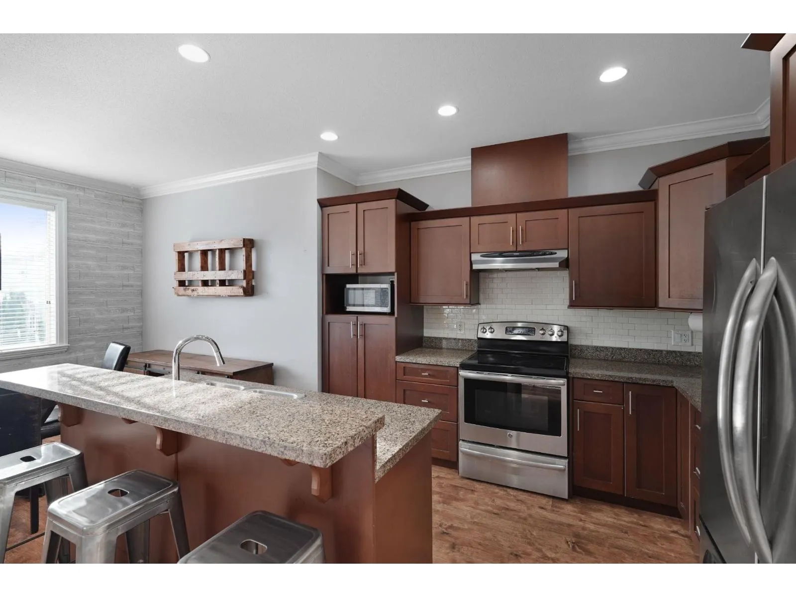 Beautifully crafted basement entry home located in a family-friendly neighbourhood. This spacious residence offers 6 bedrooms and 3 full bathrooms, featuring a bright, open-concept layout with 9' & 10' ceilings , crown moulding, maple cabinetry, granite countertops, and stainless steel appliances-perfect for entertaining. Enjoy a south-facing, fully fenced backyard providing abundant natural light and an ideal space for kids and pets. The home includes a double car garage, RV parking & additional parking. Downstairs features a registered 2 bedroom suite, offering excellent mortgage helper potential. Conveniently located close to schools, parks, shopping centres, West Coast Express - What an unbeatable location. (id:27476)