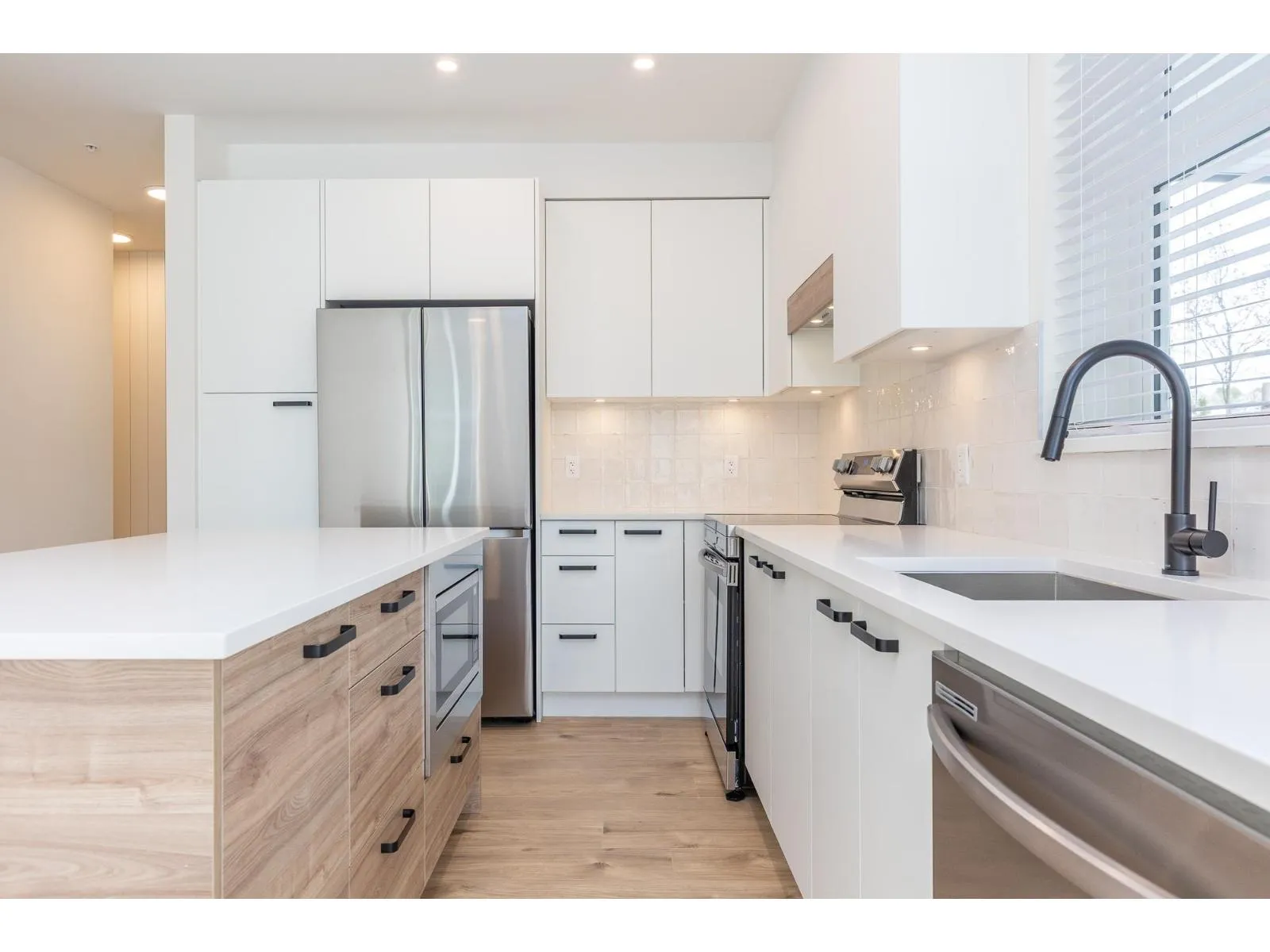 Welcome to Vista at Westminster Plateau, a stunning corner 2-bedroom, 2-bath home offering 937 sq. ft. of bright, modern living and a large balcony designed to take in the surrounding beauty. This well-laid-out Plan H is set in a vibrant new community beside the historic Westminster Abbey, with scenic views toward the Matsqui Valley and lush green landscapes. Enjoy a west-facing exposure that fills the home with natural light, complemented by upgraded laminate flooring, sleek Samsung appliances, and custom wood shelving in the primary bedroom for added style and function. Parking is included for your convenience. Residents enjoy access to premium amenities including a rooftop deck, co-working space, gym and fitness studio, kids' play zone, and a fully equipped clubhouse-perfect for enter (id:27476)
