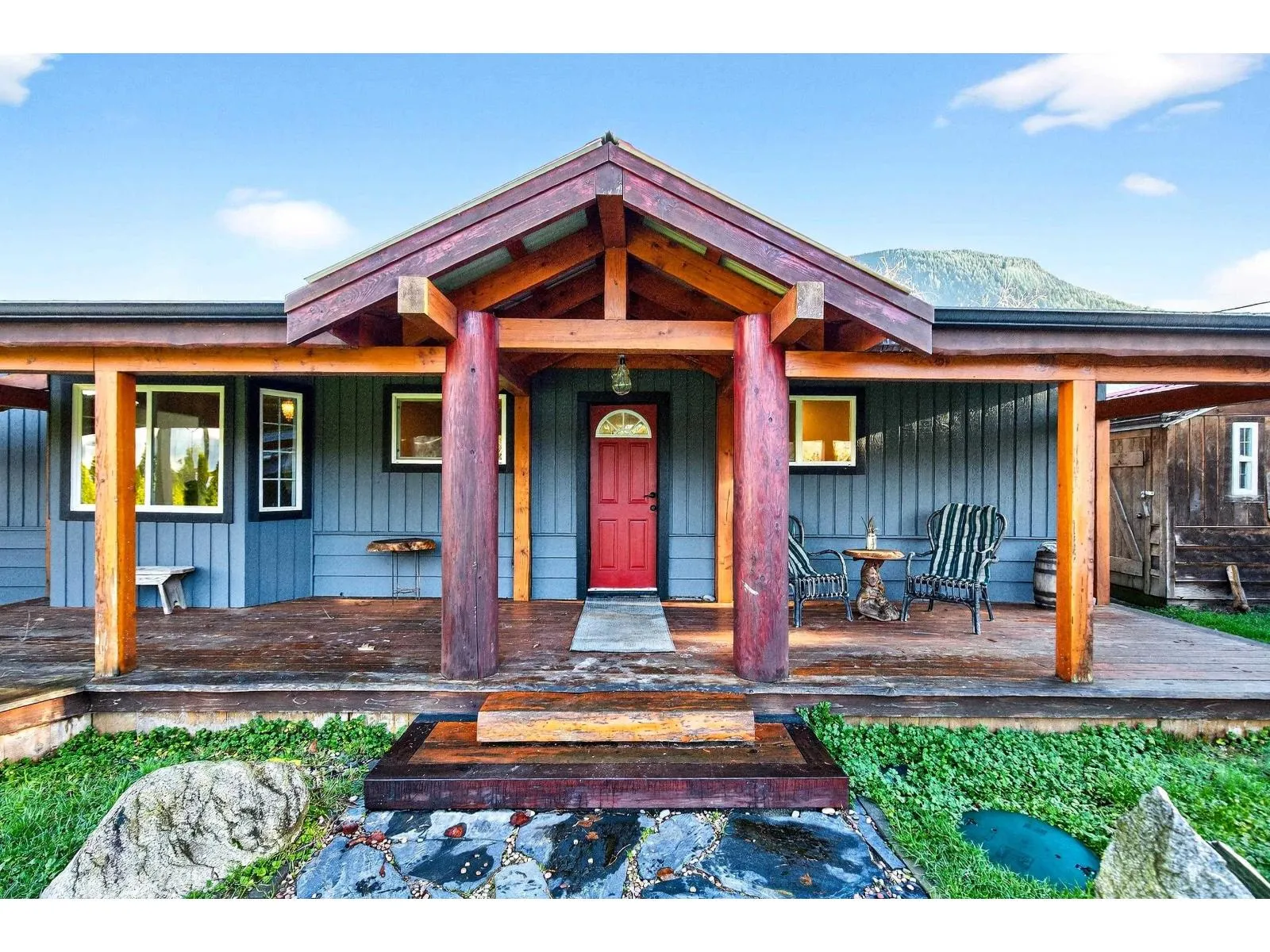 This rare quarter-acre waterfront property is truly one of a kind. An impressive covered front porch sets the tone, built with true 2Ã6 Douglas fir, exposed beams, and solid wood craftsmanship, creating a timeless lodge-inspired feel. Designed for year-round enjoyment, the porch features a solid masonry wood-burning outdoor fireplace/BBQ, ideal for entertaining. The backyard offers stunning water and mountain views with direct access to Hatzic Lake, plus a large firepit area perfect for relaxing mornings or evenings. Inside includes a spacious kitchen with oak cabinets and a bright sunroom/dining area. Enjoy fishing, kayaking, boating, and paddleboarding steps from your door. Just 10 minutes to downtown Mission and 20 minutes to Abbotsford-this is a true waterfront rarity. (id:27476)