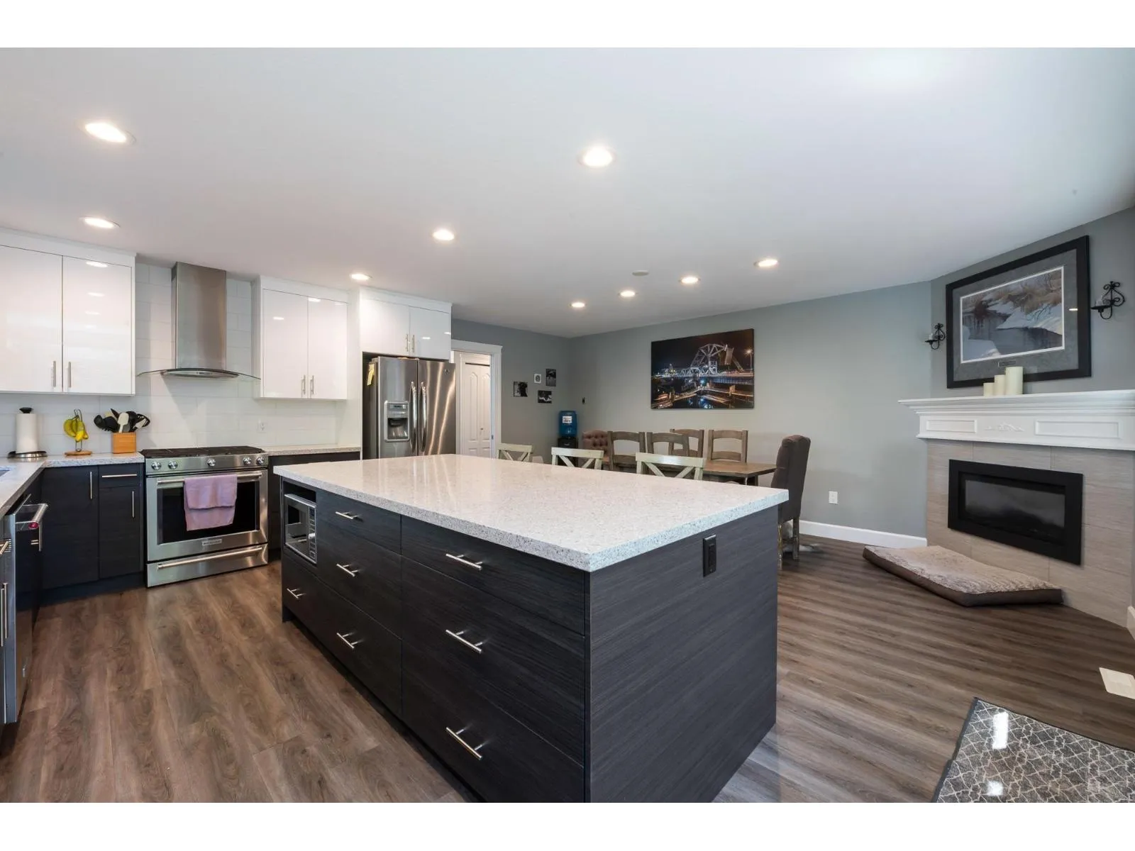 Welcome to this beautifully updated 4-bedroom, 3-bathroom basement-entry home in Mission's sought-after College Heights-just steps from schools, parks, and UFV. With over $100,000 in renovations and upgrades, this home features a bright, open layout with a fully renovated kitchen and bathrooms showcasing modern finishes and timeless functionality. The gourmet kitchen flows into the dining and living areas and opens to a custom cedar deck, ideal for everyday living and entertaining. Downstairs, the stunning spacious rec room with roughed-in plumbing offers endless possibilities; also bedroom and bathroom. Enjoy year-round comfort with hot water on demand, central AC, plus an in-ground sprinkler system and landscape lighting that enhance curb appeal. (id:27476)